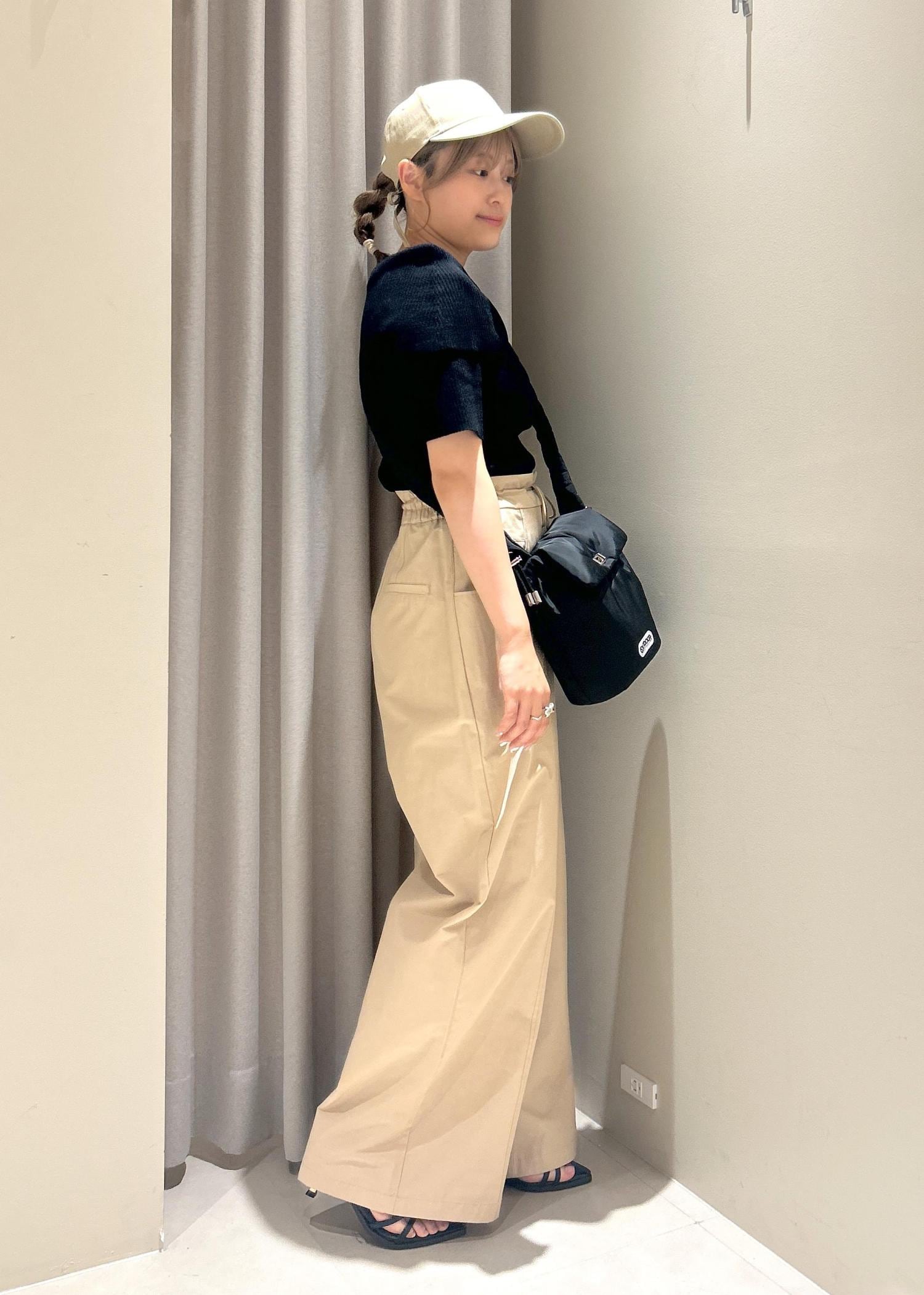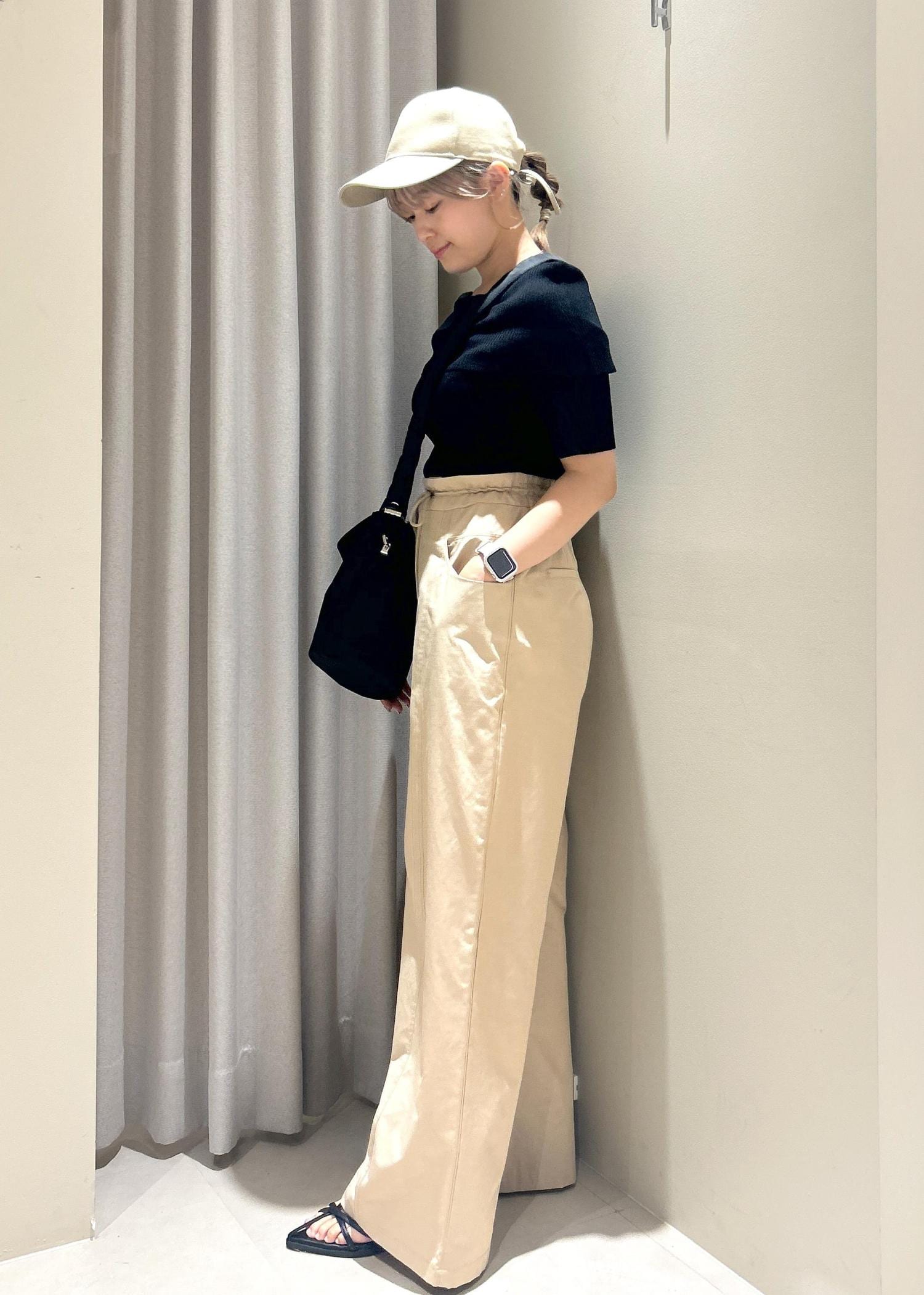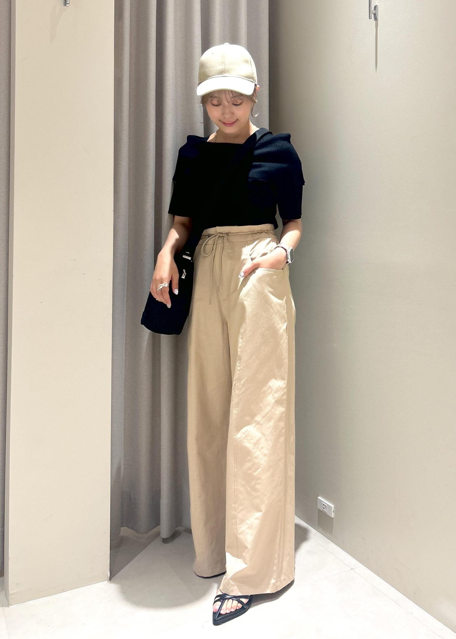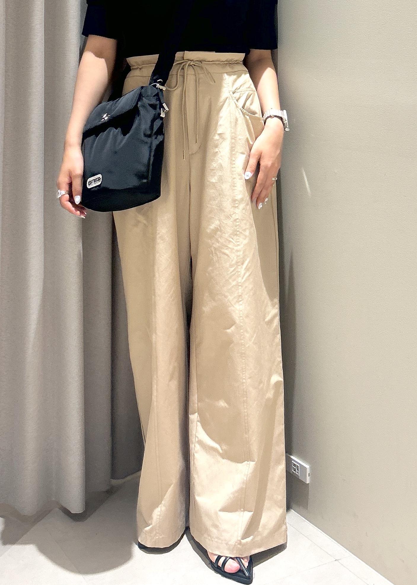 アウトレットVIS【接触冷感/洗える】ドロストワイドパンツベージュ / F¥2,636レビュー154センチ着用で、床につきそうな丈感でした!
