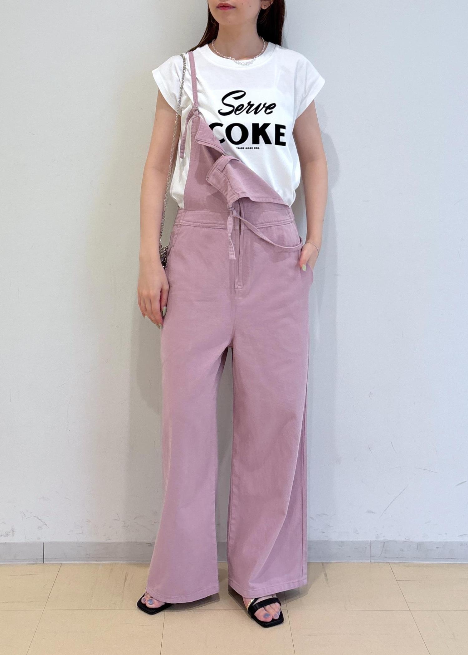 コカ・コーラスペシャルコレクションのTシャツとサロペットを使ったコーディネートです。