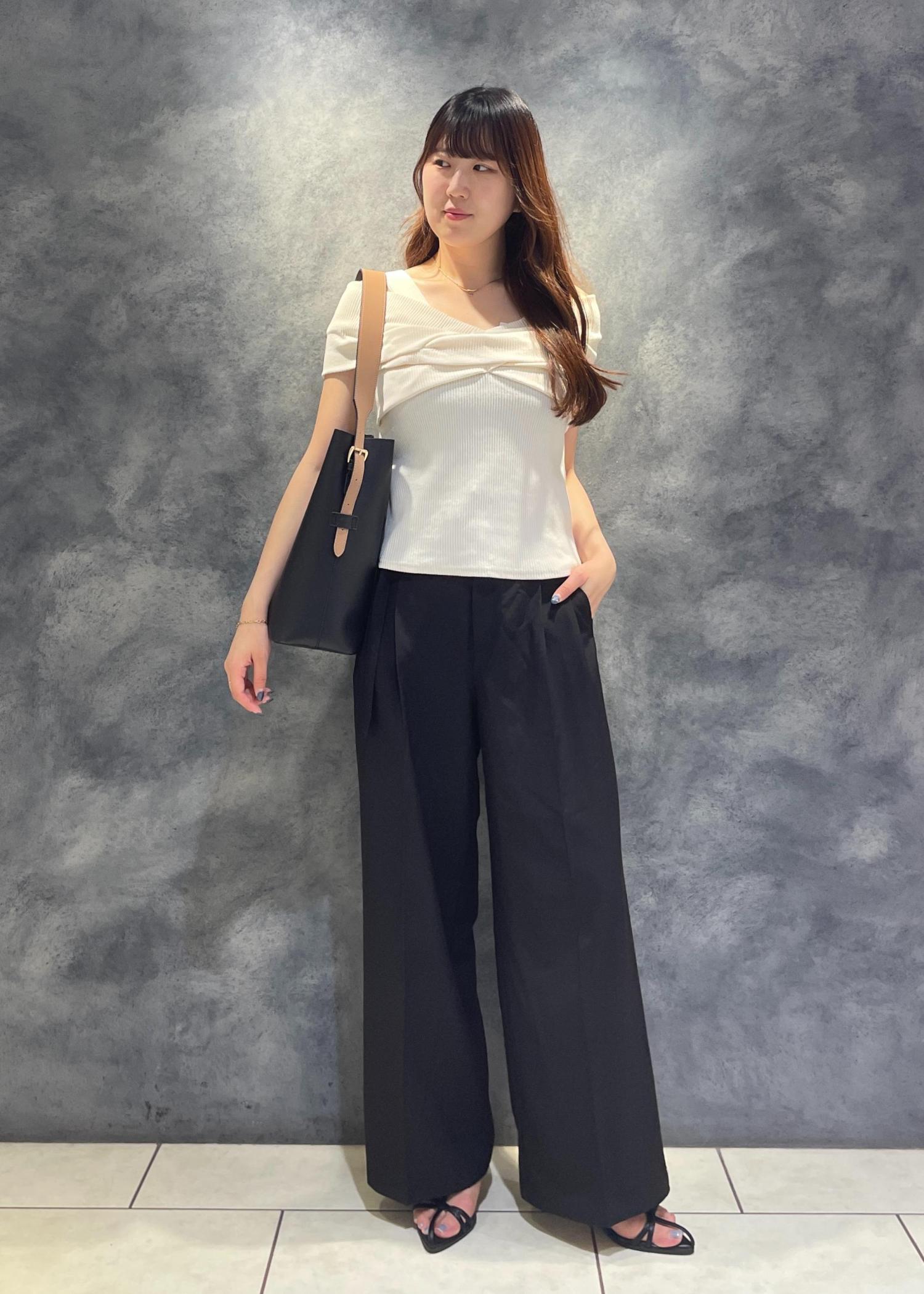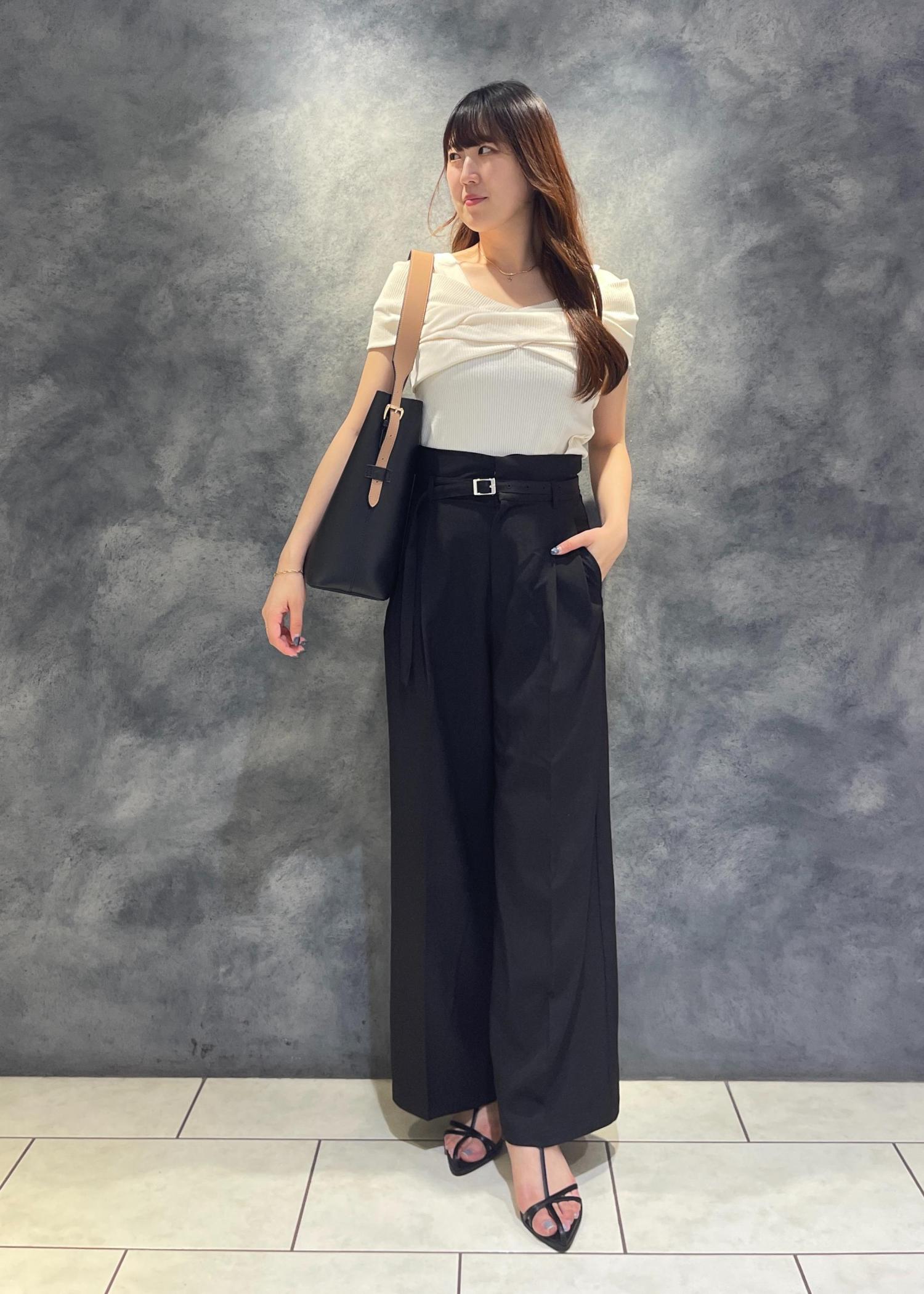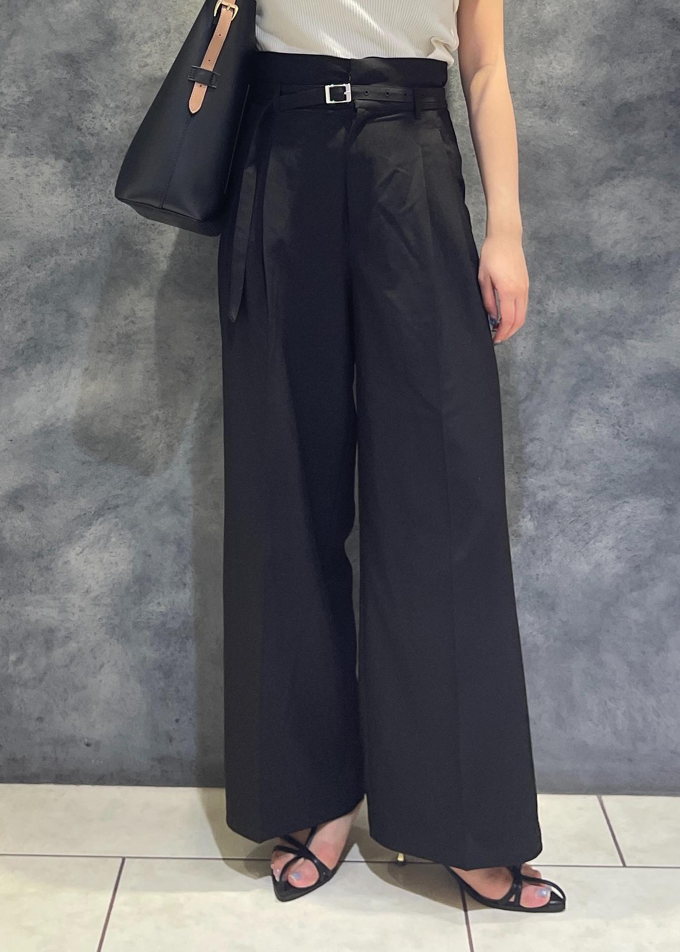 VIS【新色追加】【防シワ/接触冷感】ベルトディテールタックワイドスラックスパンツブラック / M¥6,589レビューワイドなシルエットで