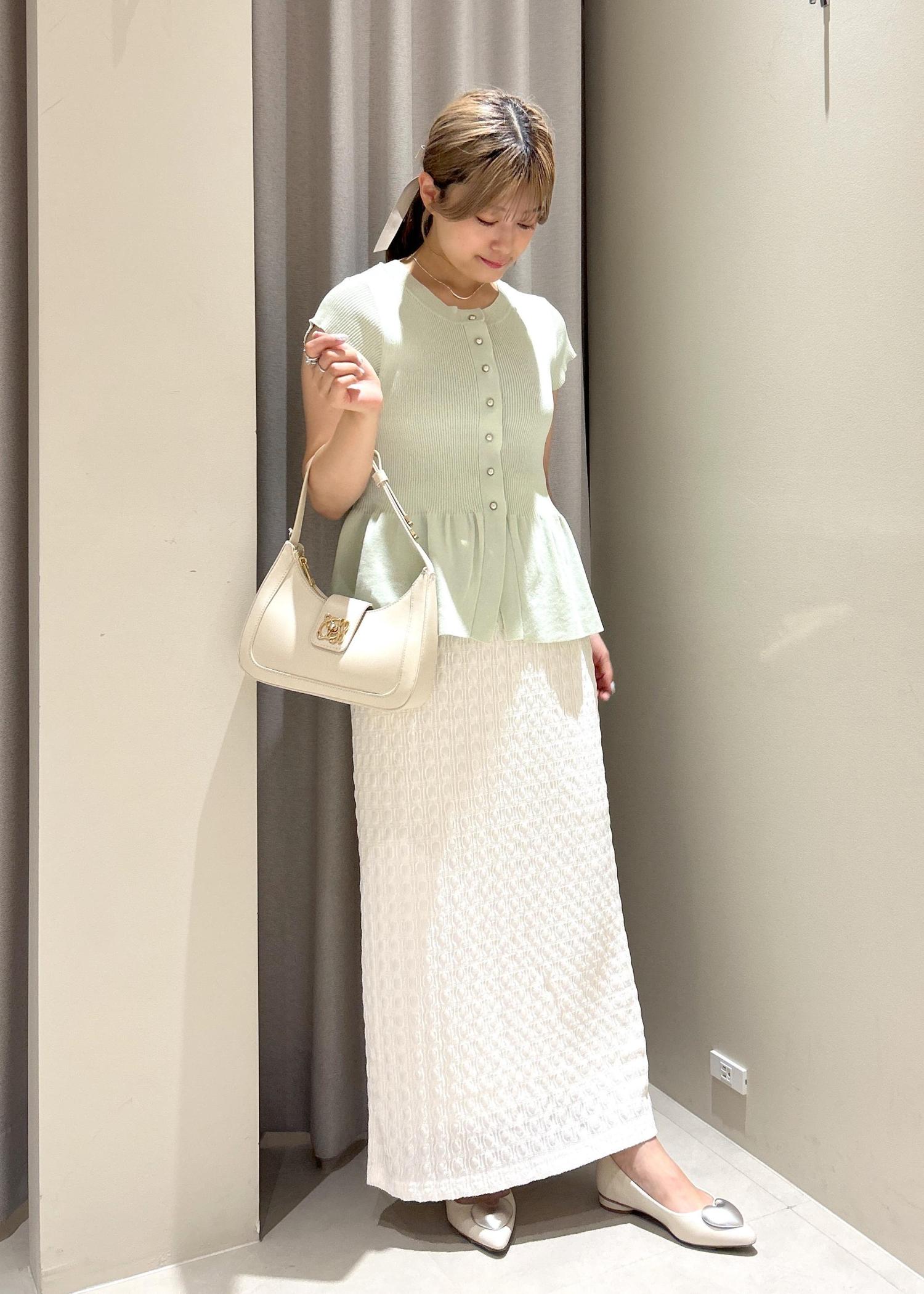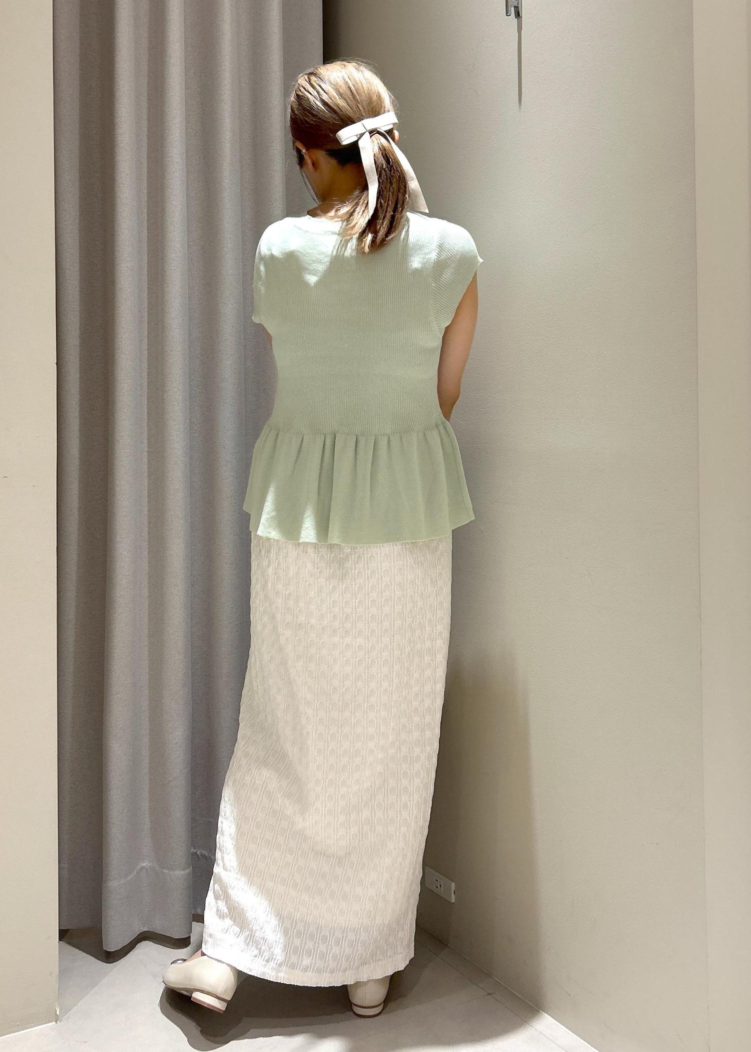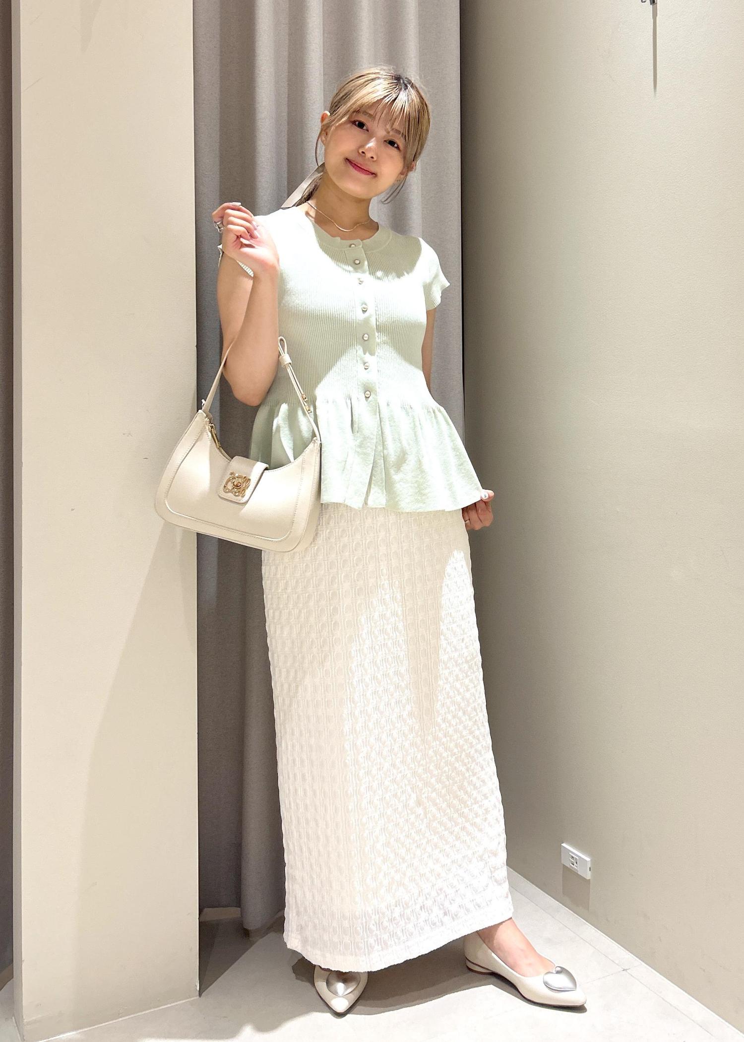 トップスはグリーン、スカートはホワイトで明るいカラーを選びました◎