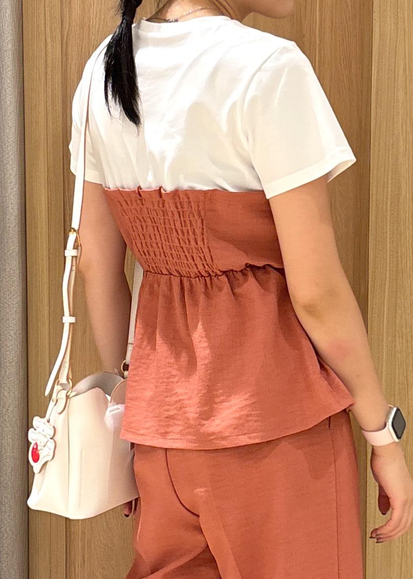 VIS【新色追加】【美easy】ねじりリボンTシャツドッキングプルオーバー【接触冷感/洗える】オレンジ系 / F¥5,489レビュー毎年人気のねじれリボンのTシャツは162cmの私でもぴったりに着用できます☺︎