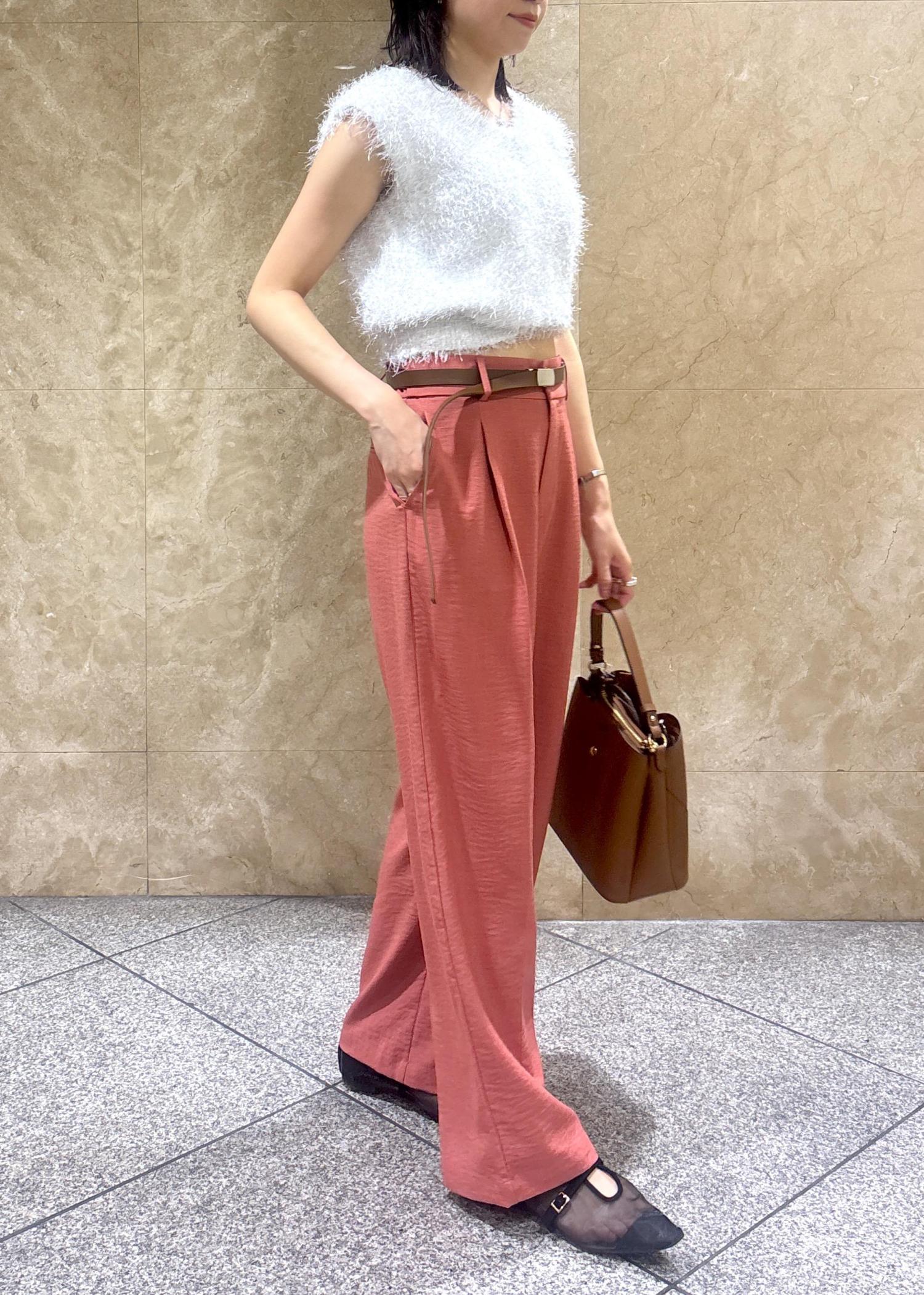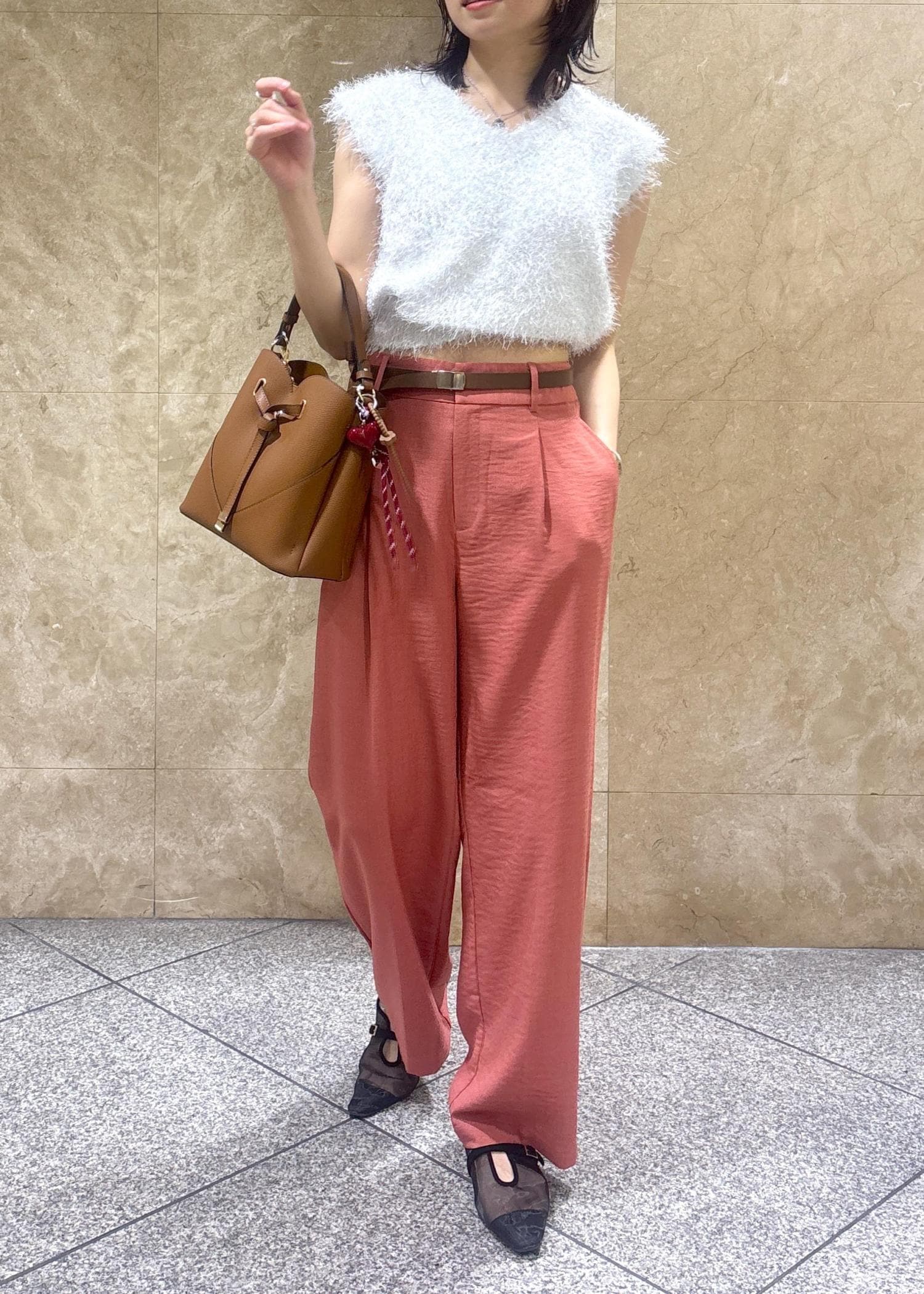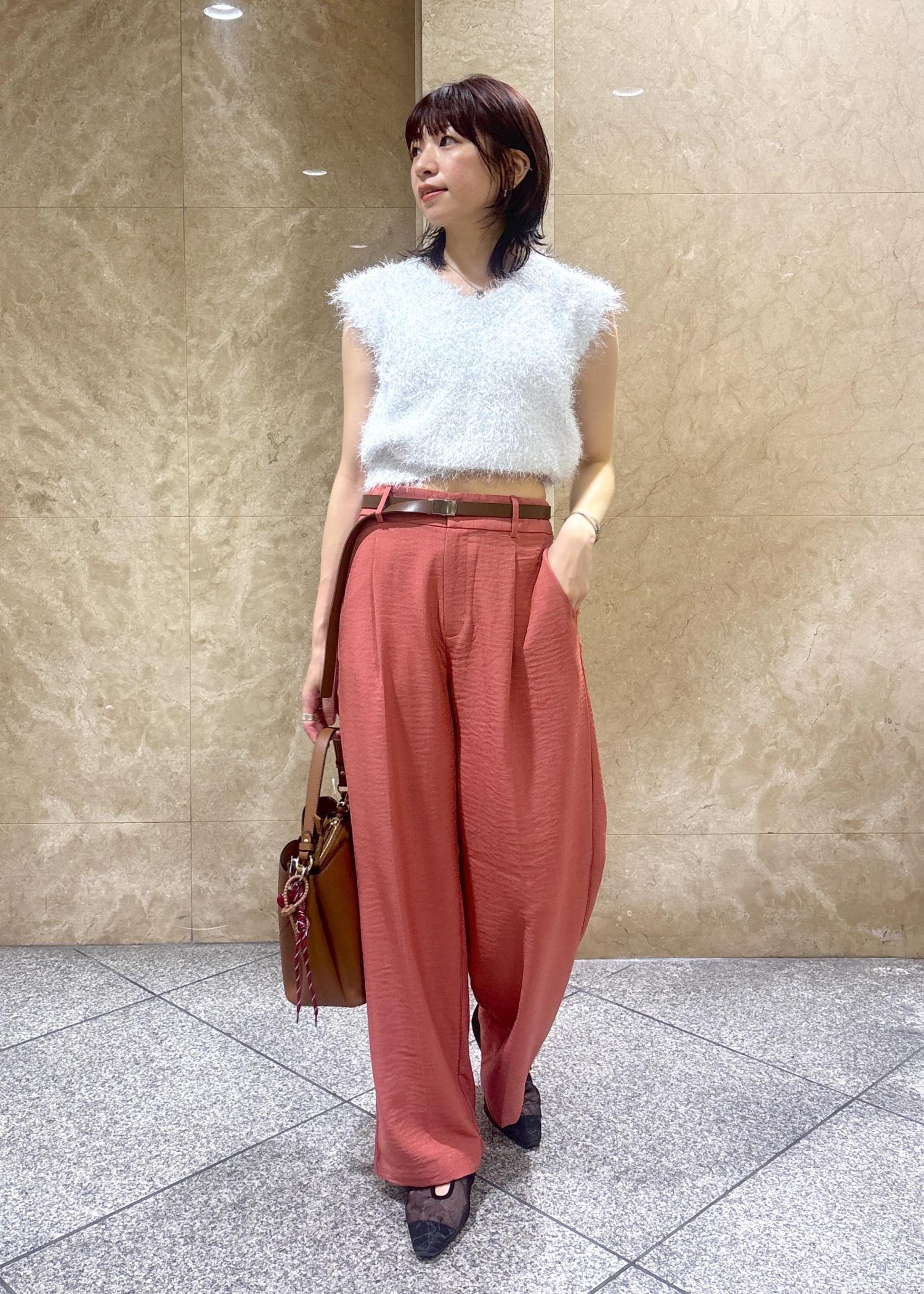 VIS【美easy】ワンタックワイドスラックスパンツ/洗えるオレンジ系 / L¥5,489レビュー着丈が長めのパンツが好きなので、サイズをいつもよりワンサイズ上げて、ウエストのボタンで調整して履いてます。