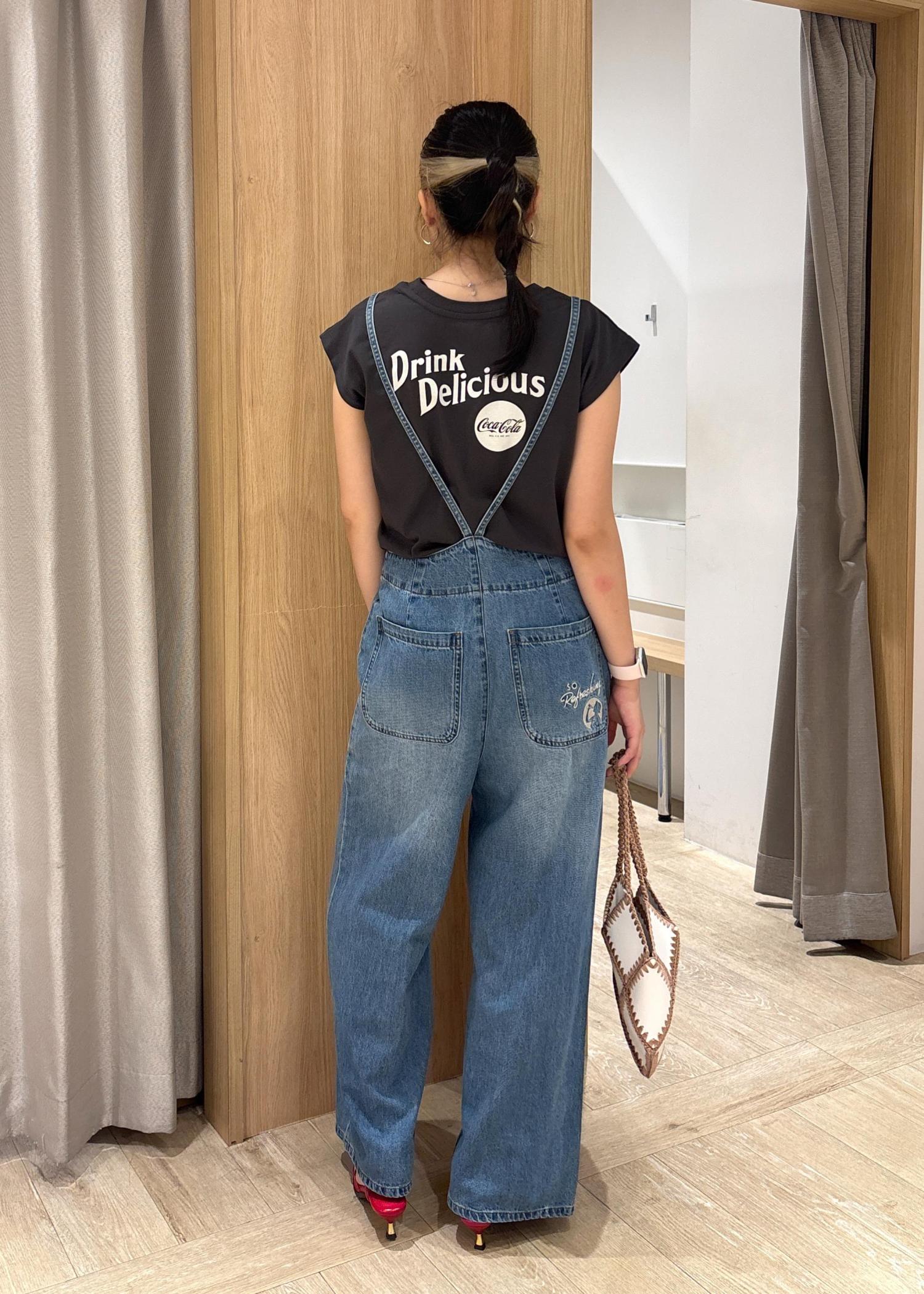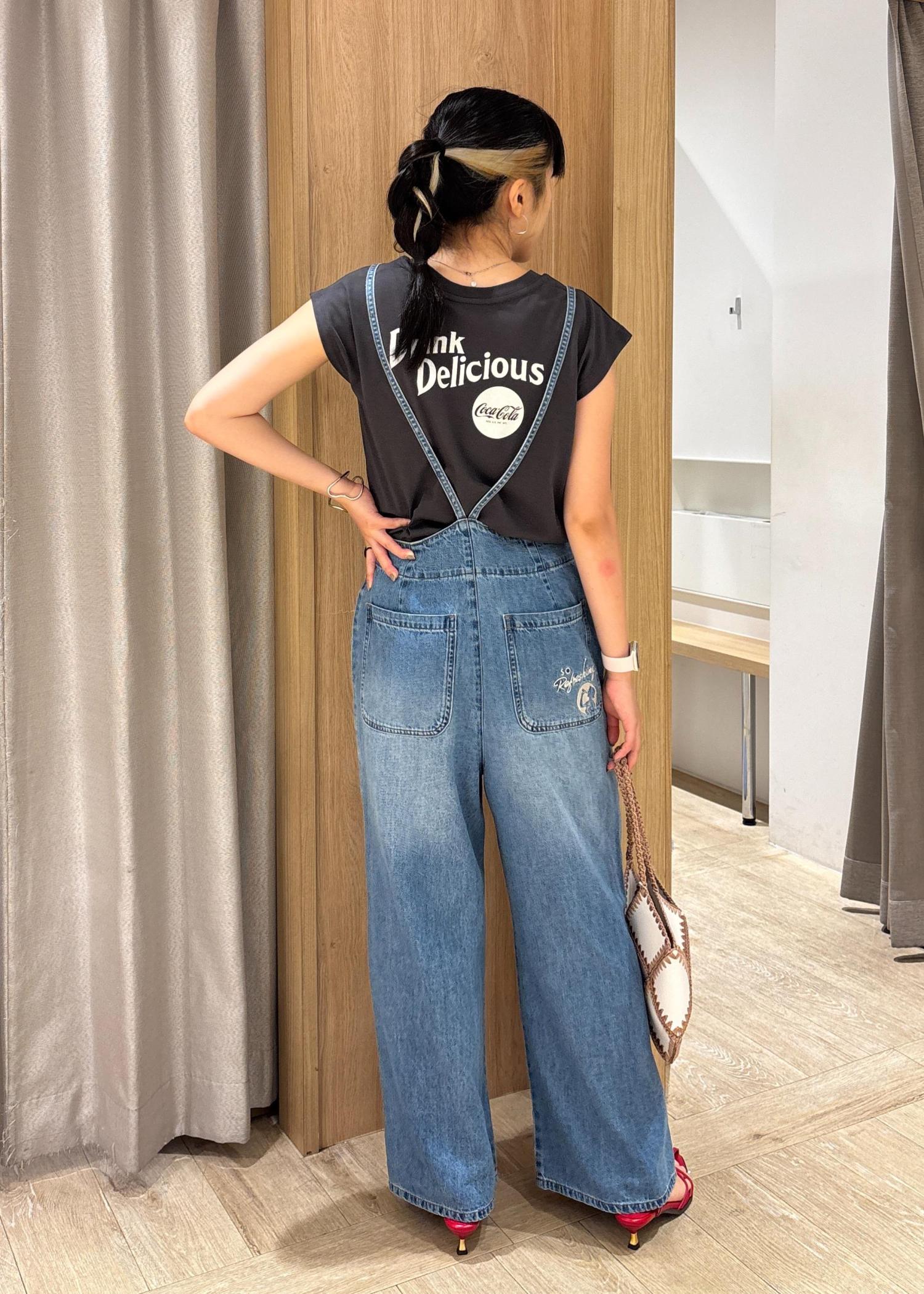 VIS【Coca-Cola】VIS別注エンブロイダリーサロペットブルー系 / F¥8,470レビューどの身長の方でも着用いただけるオーバーオールで肩紐の部分が調整できることが便利です♡