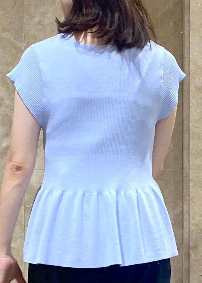 VIS【アンチピリング/洗える】美SMARTショートスリーブペプラムニットサックス / F¥5,489レビュー150cmで腰に当たる丈感でした!ペプラムになってるので腰周りを綺麗にカバーしてくれます。お袖も短すぎずで二の腕も隠れます◎サラッとしていてチクチク感もなく着用できましす!