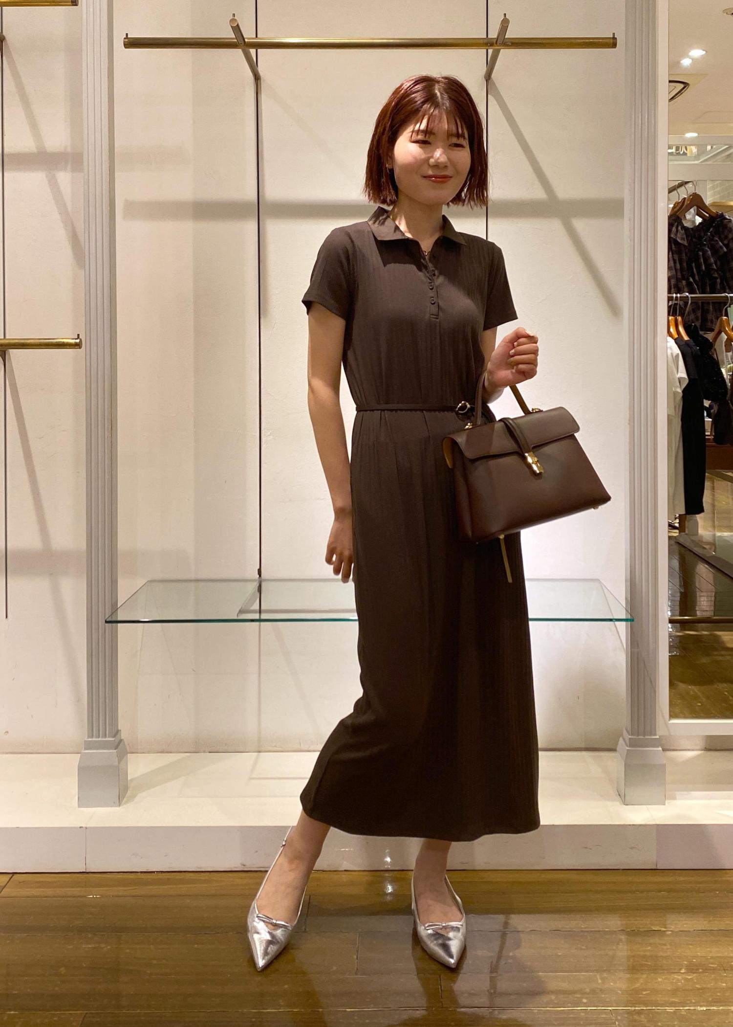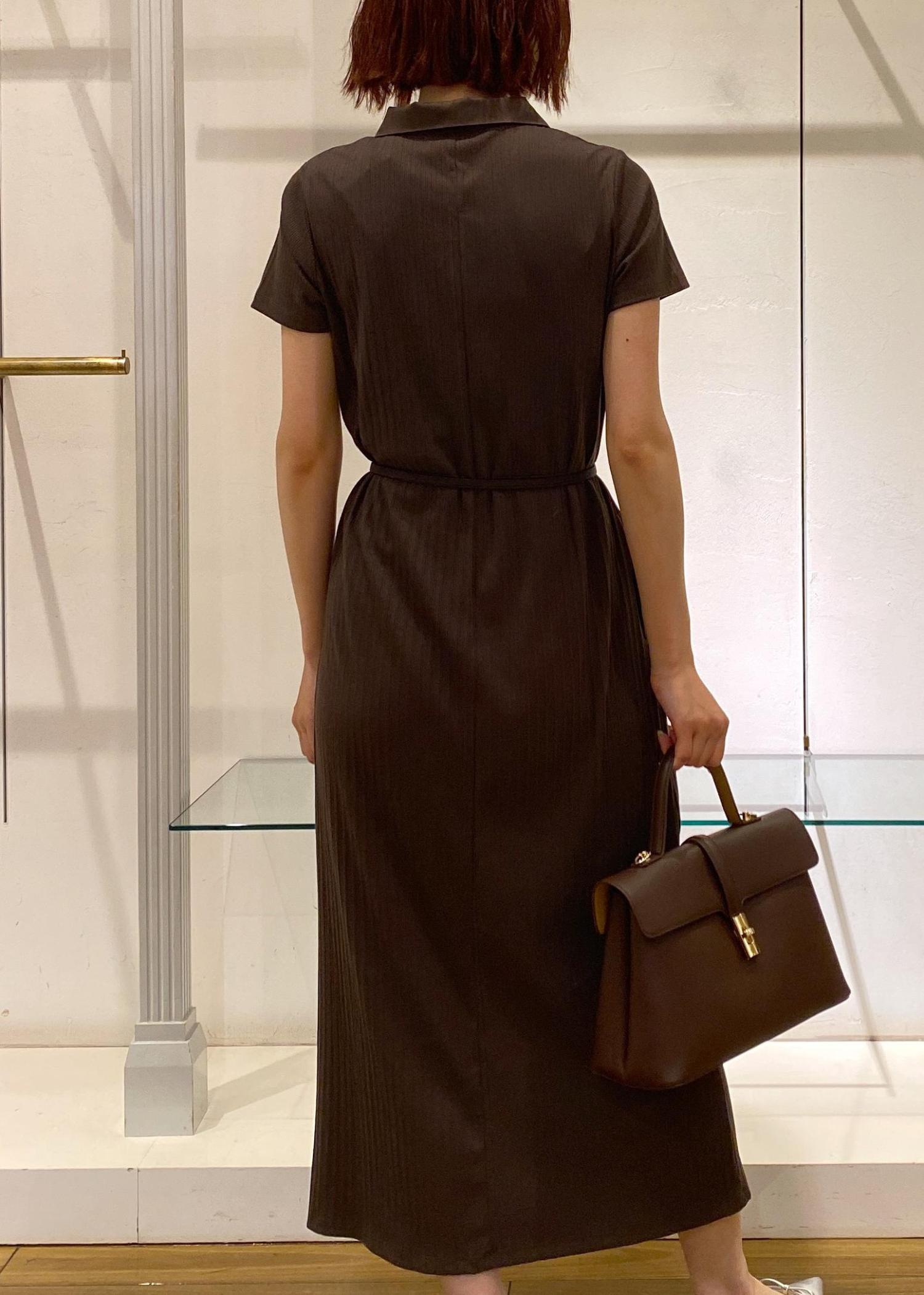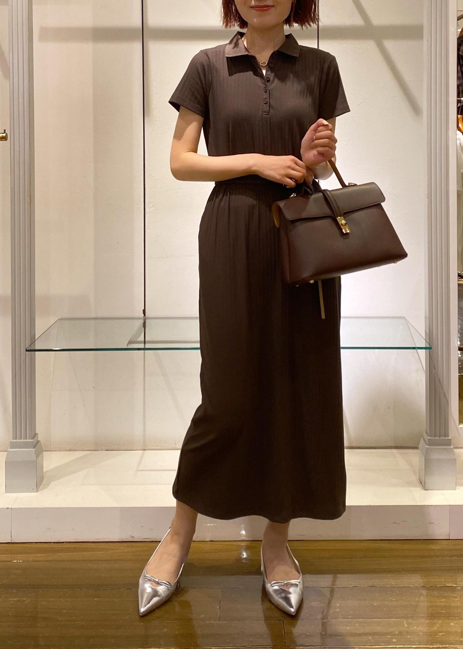 VISポロ衿ランダムリブワンピースダークブラウン / F¥4,612レビューリブ素材の襟付きワンピースです!