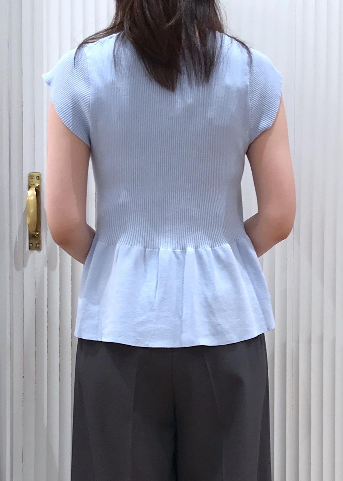 VIS【アンチピリング/洗える】美SMARTショートスリーブペプラムニットサックス / F¥5,489レビュー私の身長で腰にかかる着丈感です。