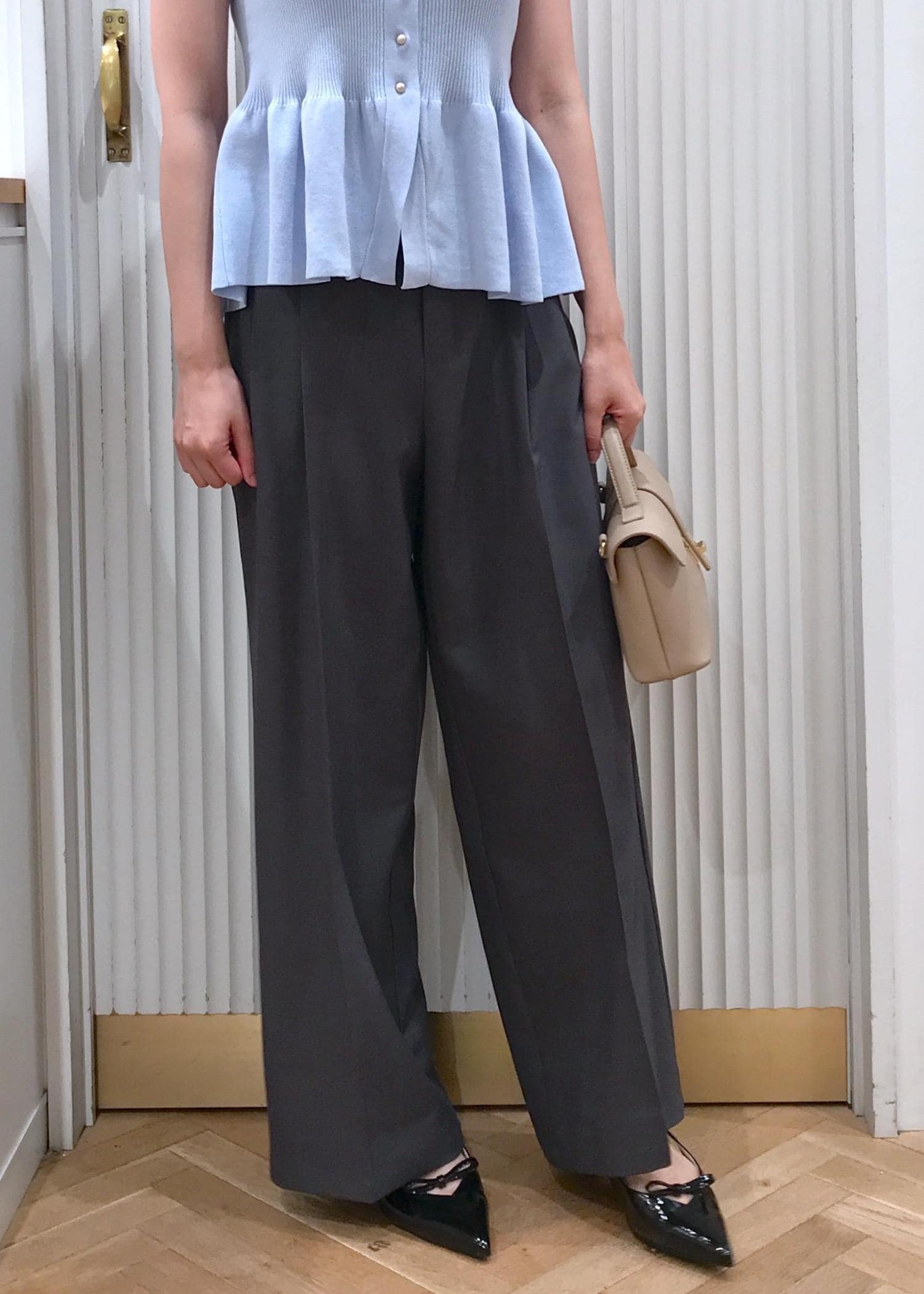 ペプラムフレンチスリーブニットコーデ