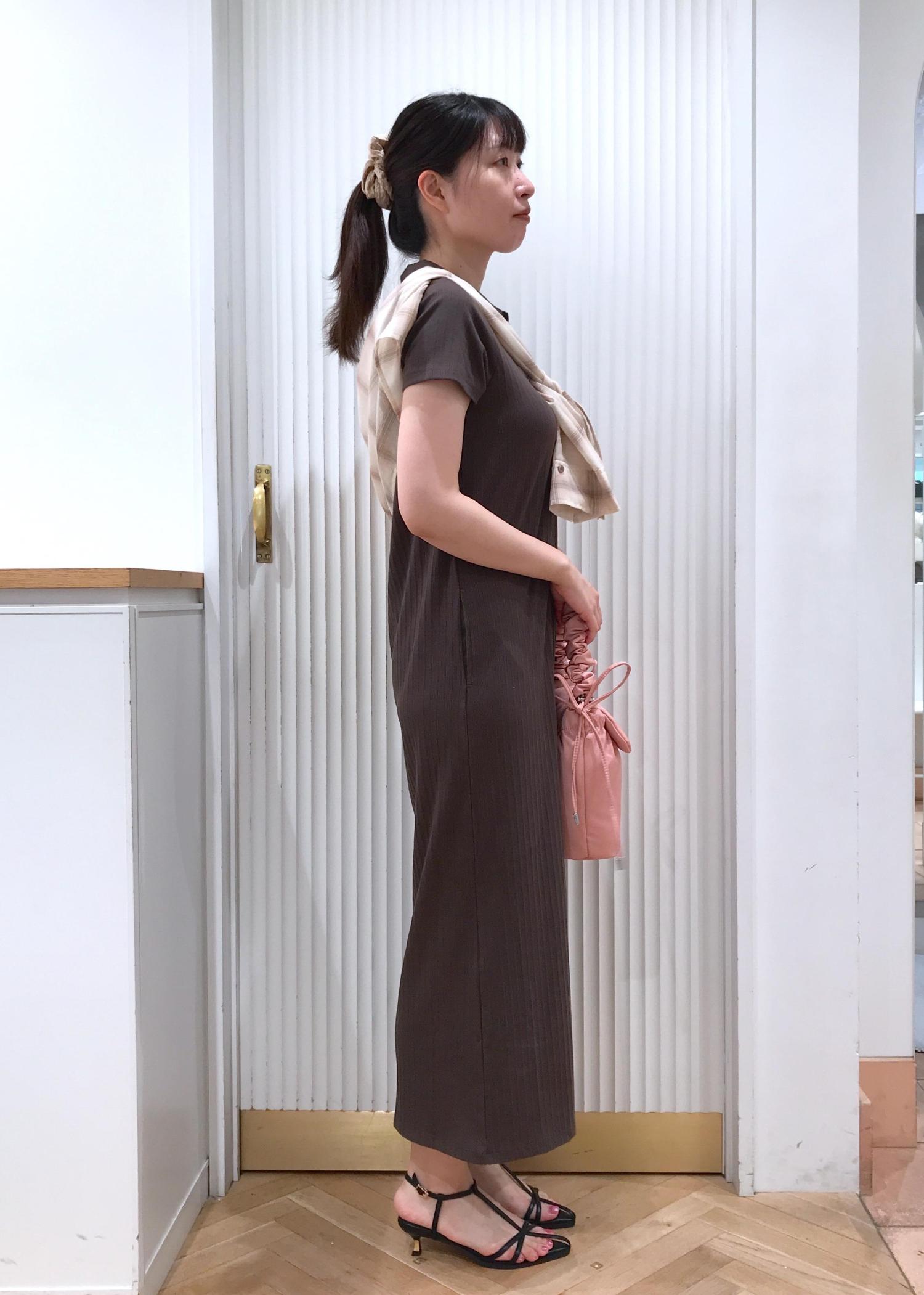 ややタイト目なシルエットのワンピースですが、体のラインを程よく拾う位でピタッと感は出ないです。