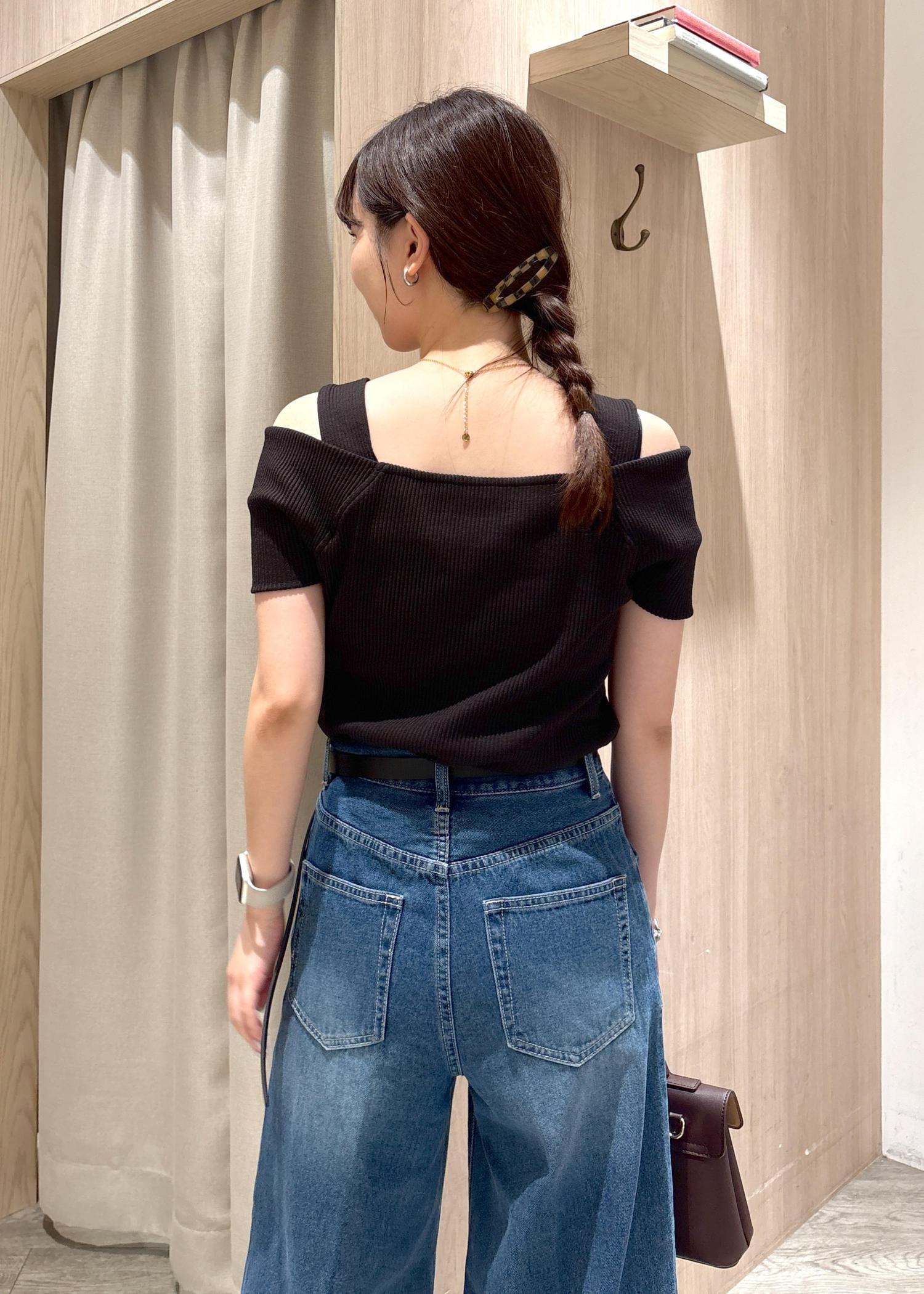 アウトレットVISねじれオフショルプルオーバーブラック /¥3,072レビューデコルテ部分がスッキリ見えるオフショルトップス。