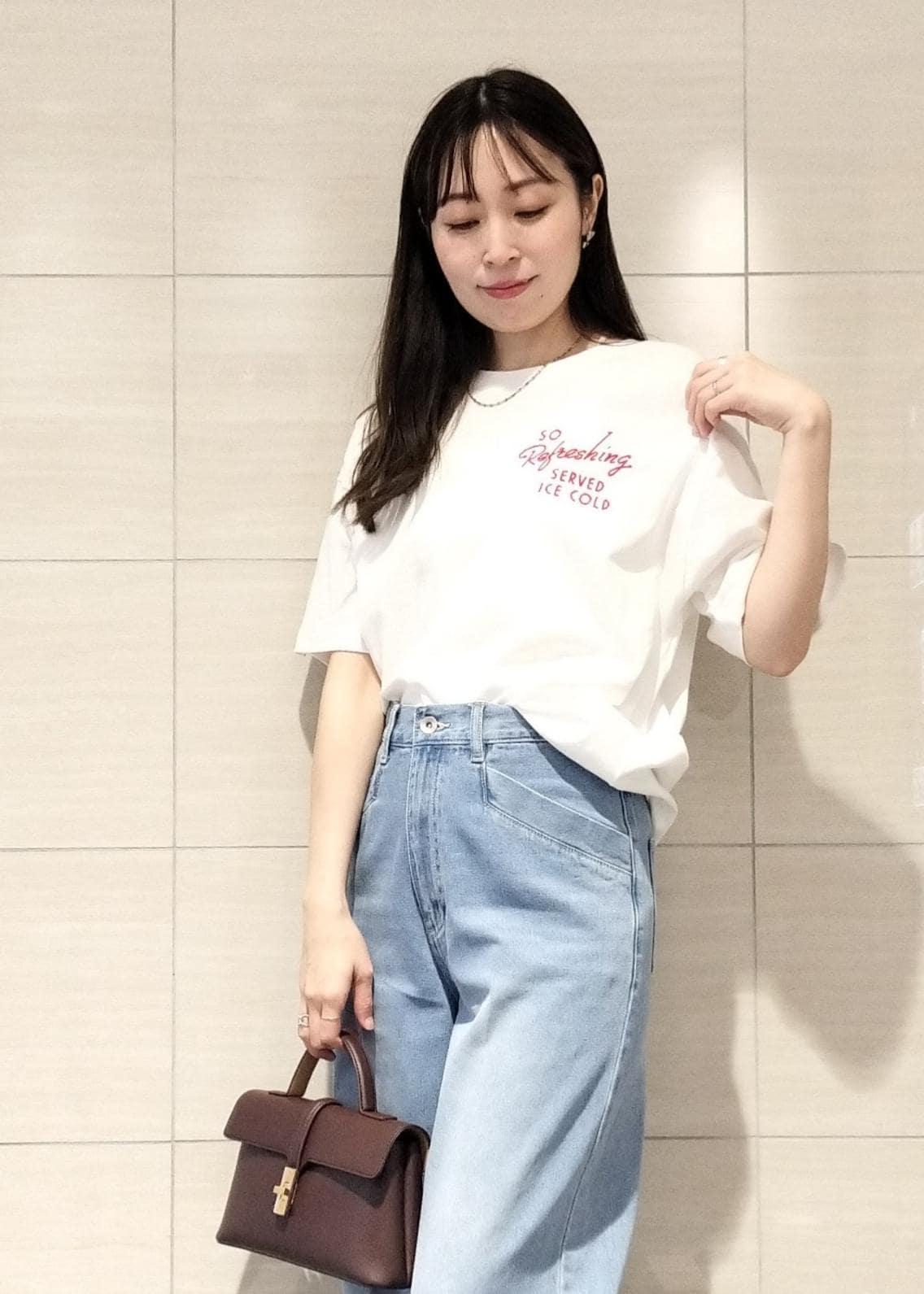 白Tシャツにデニムでシンプルなカジュアルコーデです♪定番ですが、爽やかさがでる組み合わせで夏にオススメコーデです!