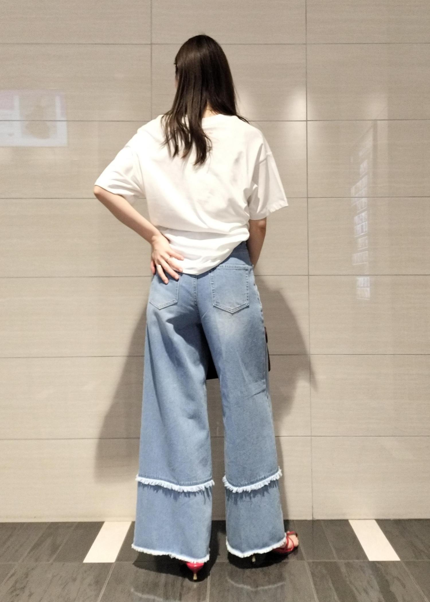 ワイドシルエットとデザイン性のあるデニムがお洒落でいつものデニムコーデをまた違った雰囲気にしてくれます♪