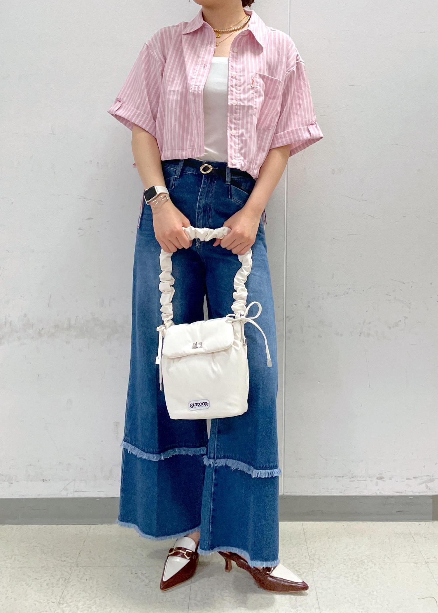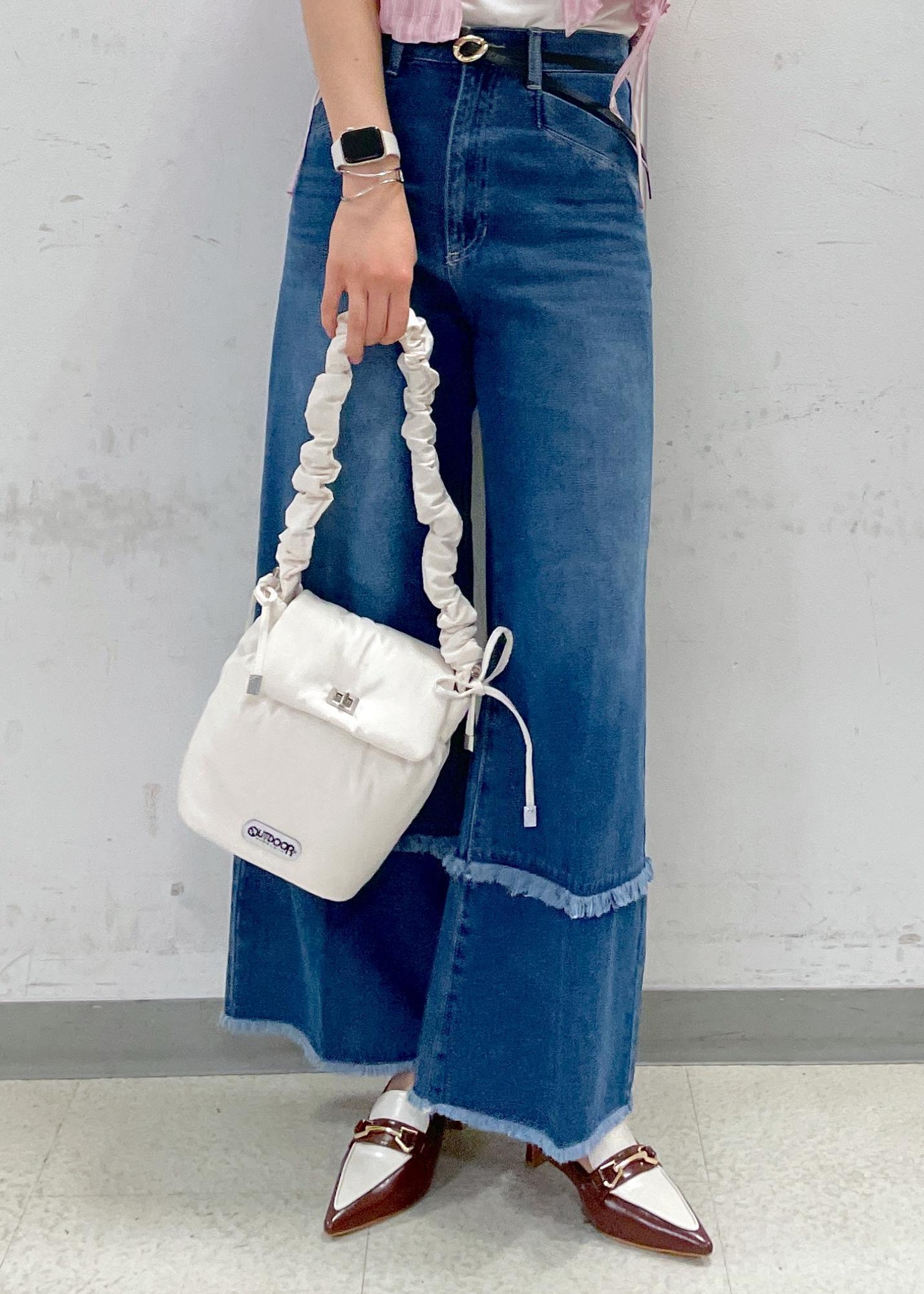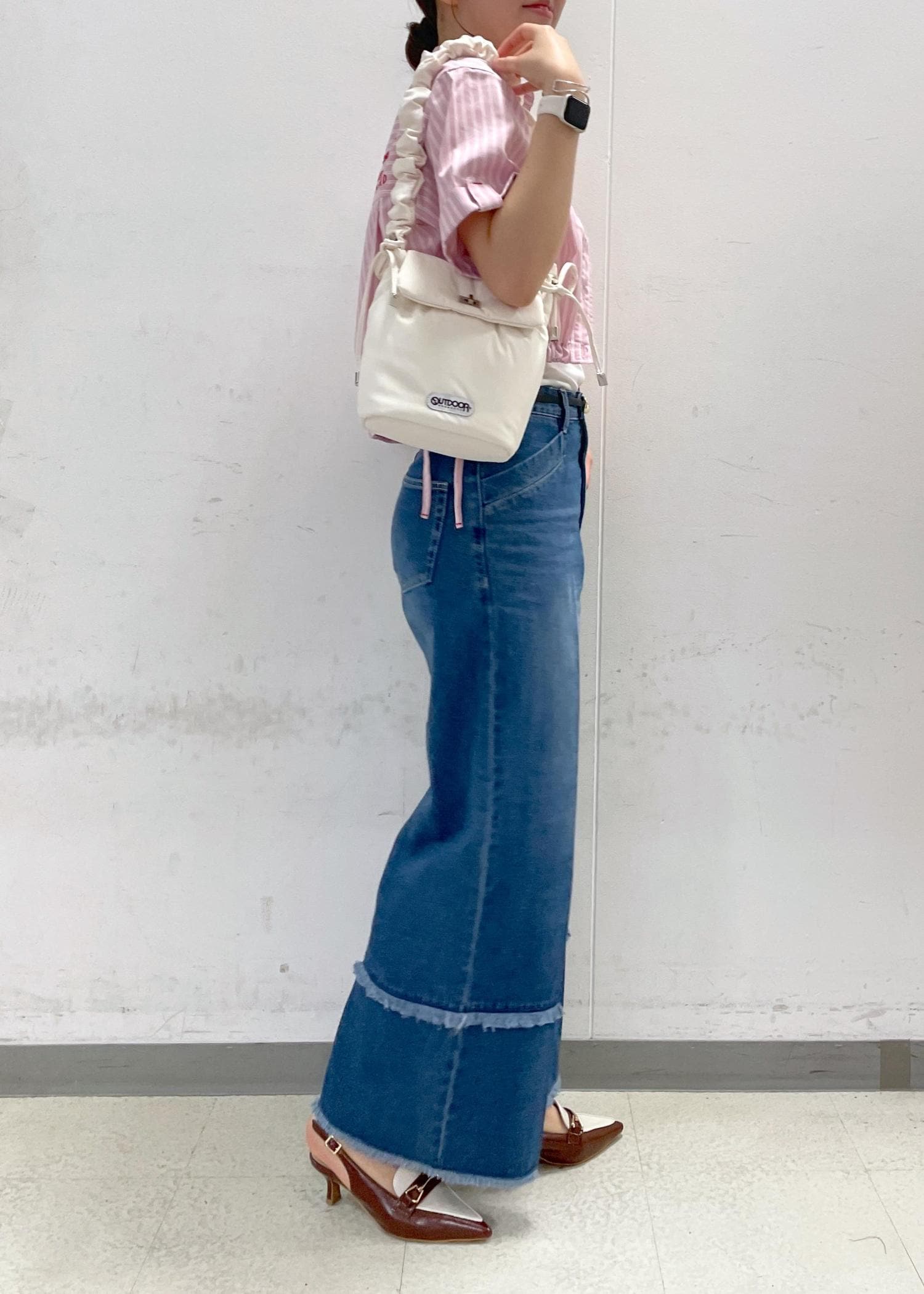 クシュクシュとかわいいショルダー部分は長さ調節可能で、その日のコーデに合わせることも可能です◎ -