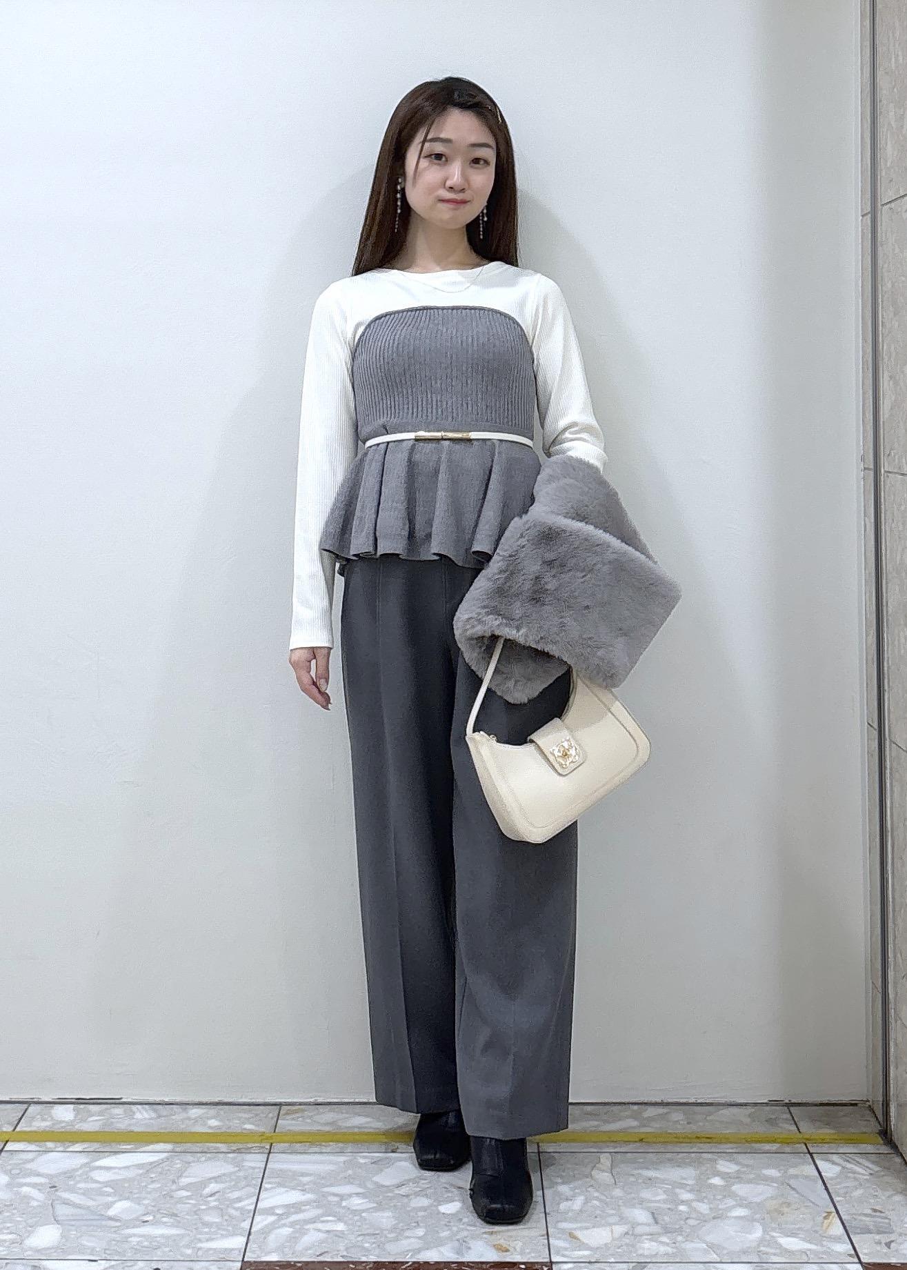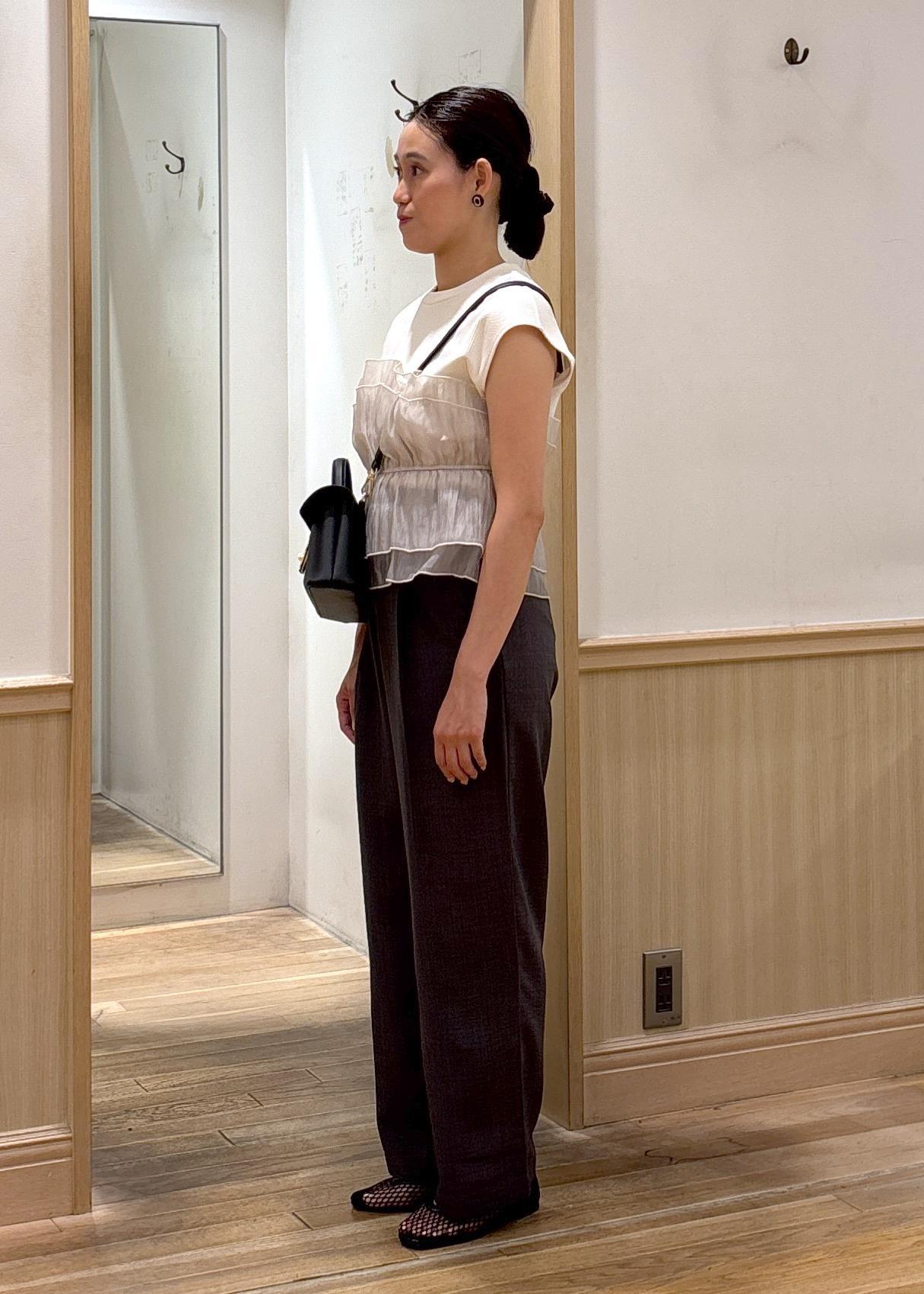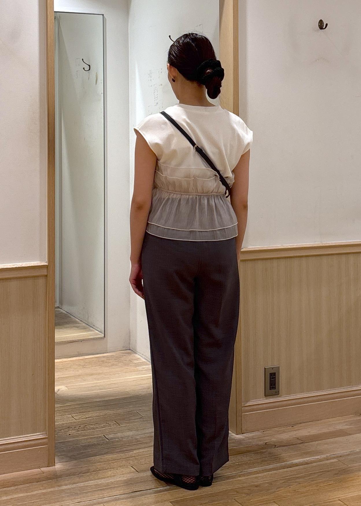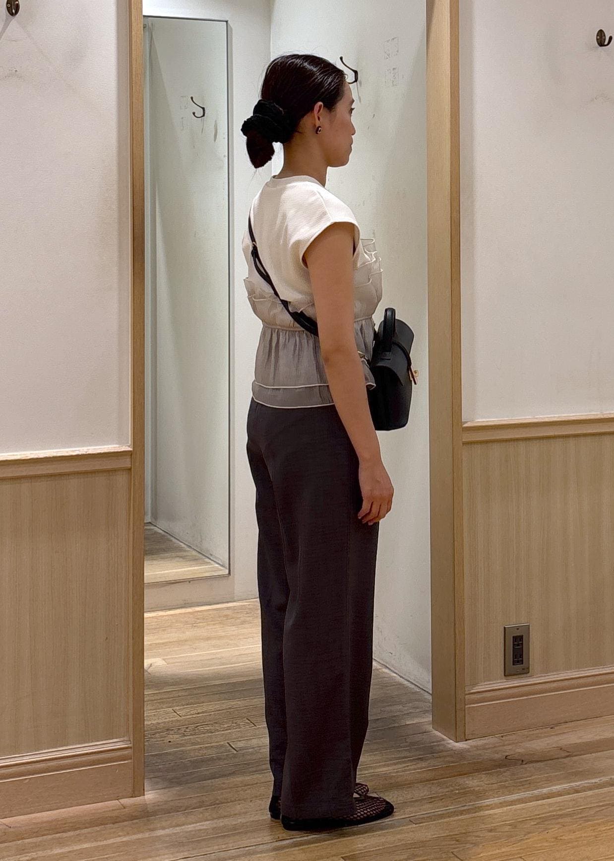 キレイめなトップスを、パンツ合わせでスッキリとしたスタイリングにしてみました♪