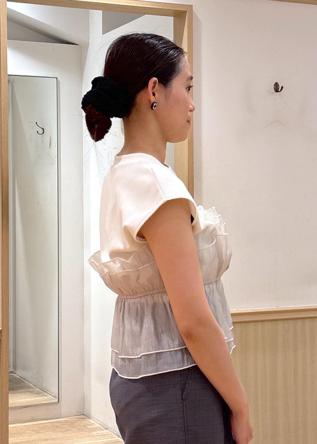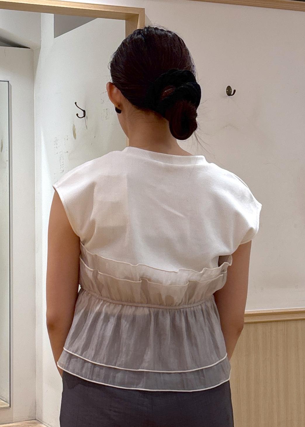 旬なレイヤードスタイルが叶う!ビスチェドッキングフレンチスリーブプルオーバー【洗える】