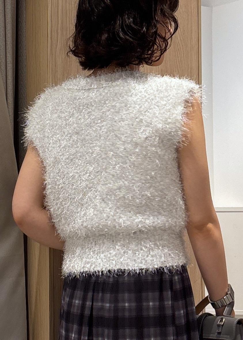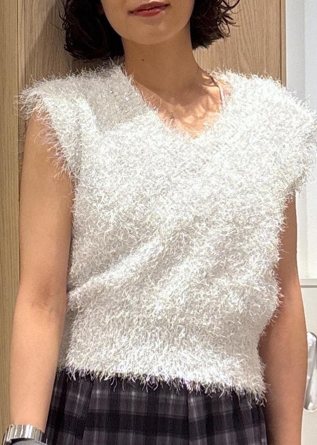 VIS【WEB限定サイズ:MT/着丈が選べる】【洗える】フェザーヤーンニットベストホワイト系 / M¥2,745レビュー毛足長めのフェザーニットです。