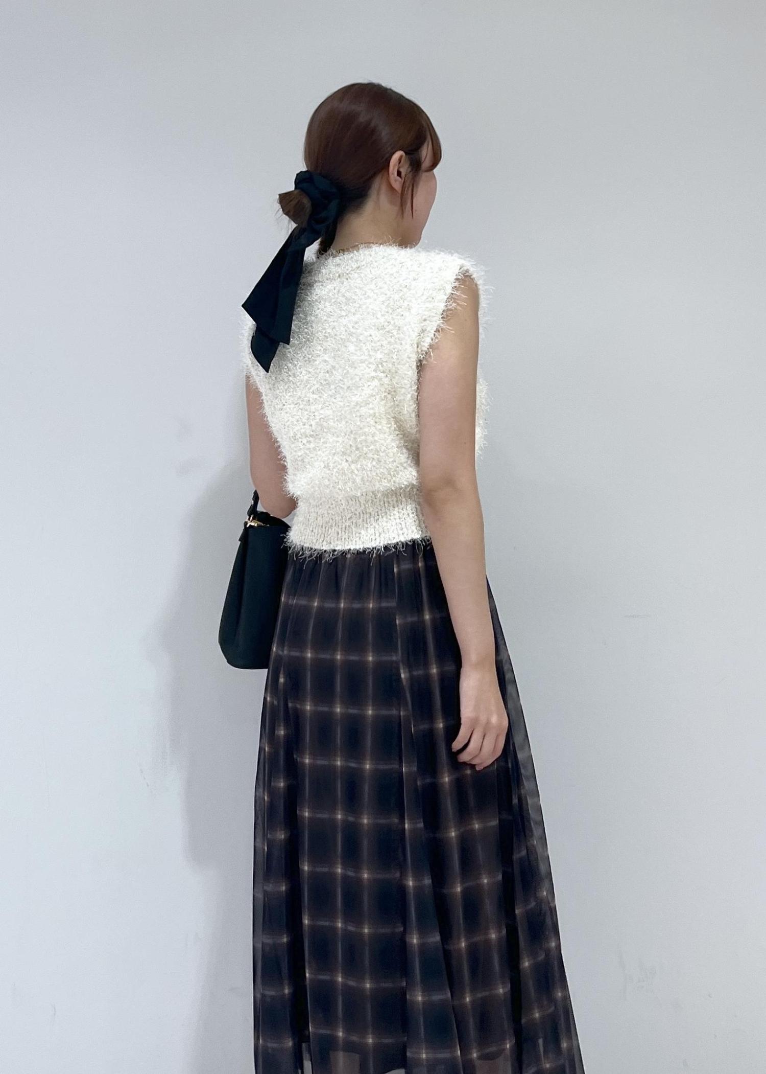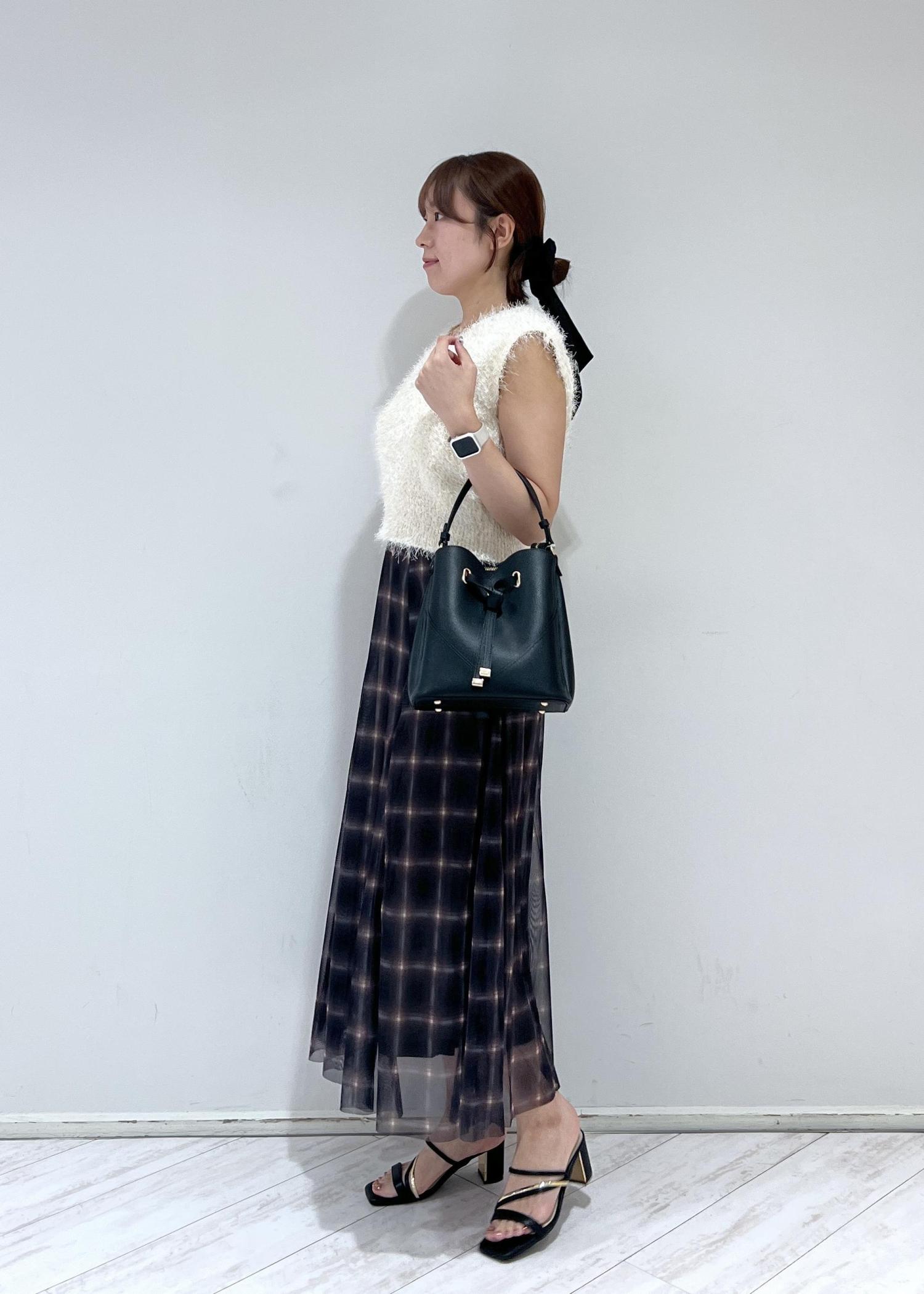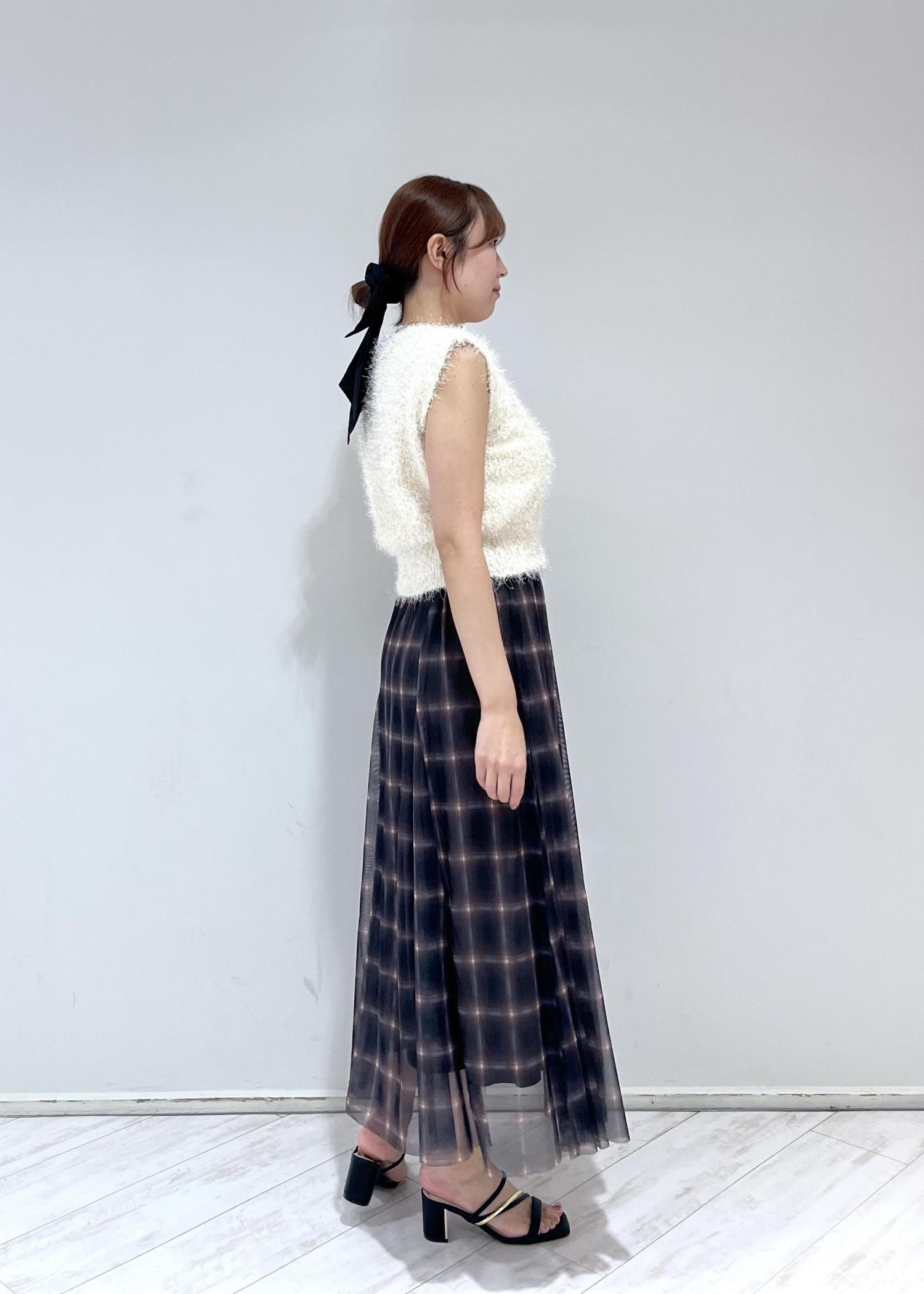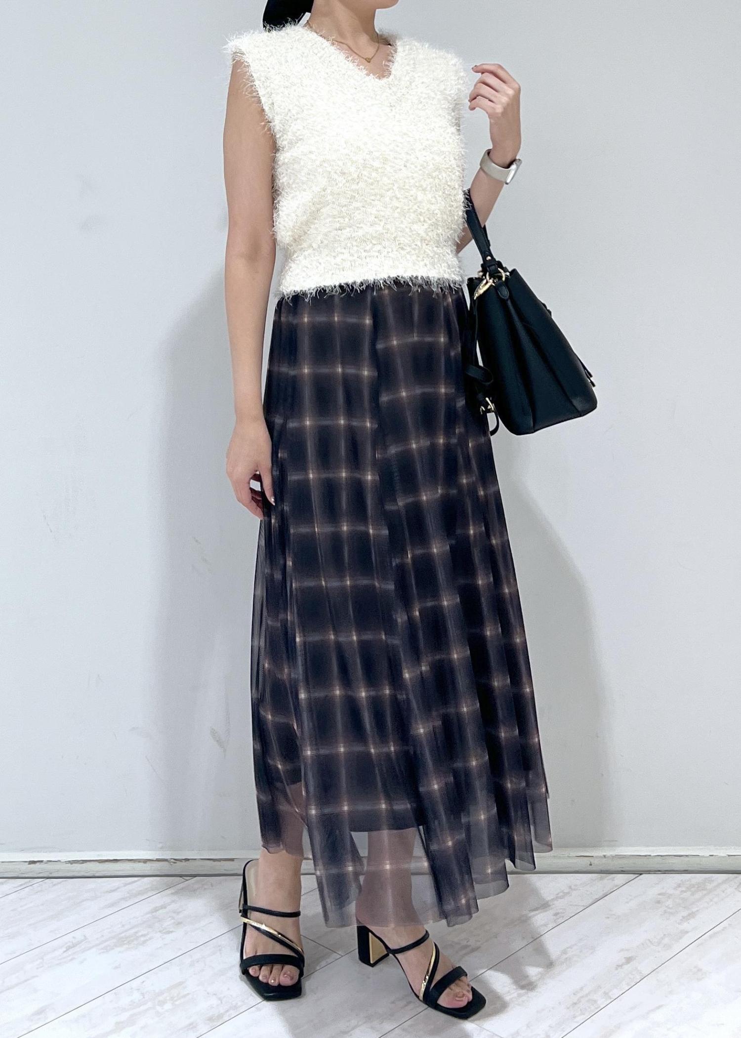 VIS【洗える】チュールプリントチェックスカートブラック系 / F¥4,612レビューウエストの後ろはゴムなので着心地が楽です◎生地感は薄手なので秋口も着回せます。身長164cmで、着丈はくるぶしの少し上でした!
