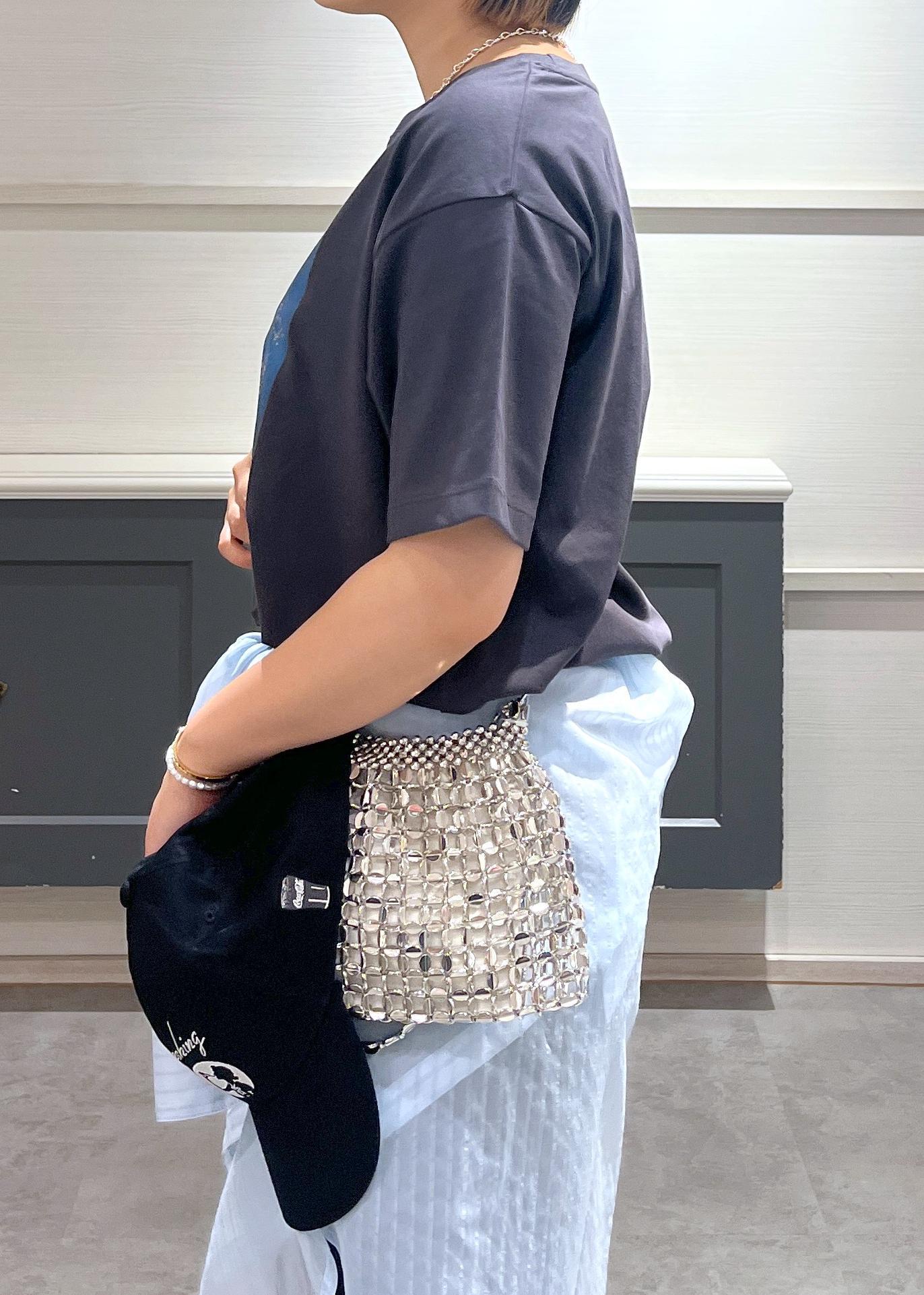 チェーンバッグとサンダルのシルバーが涼しい爽やかな印象を出してくれて統一感がでます。