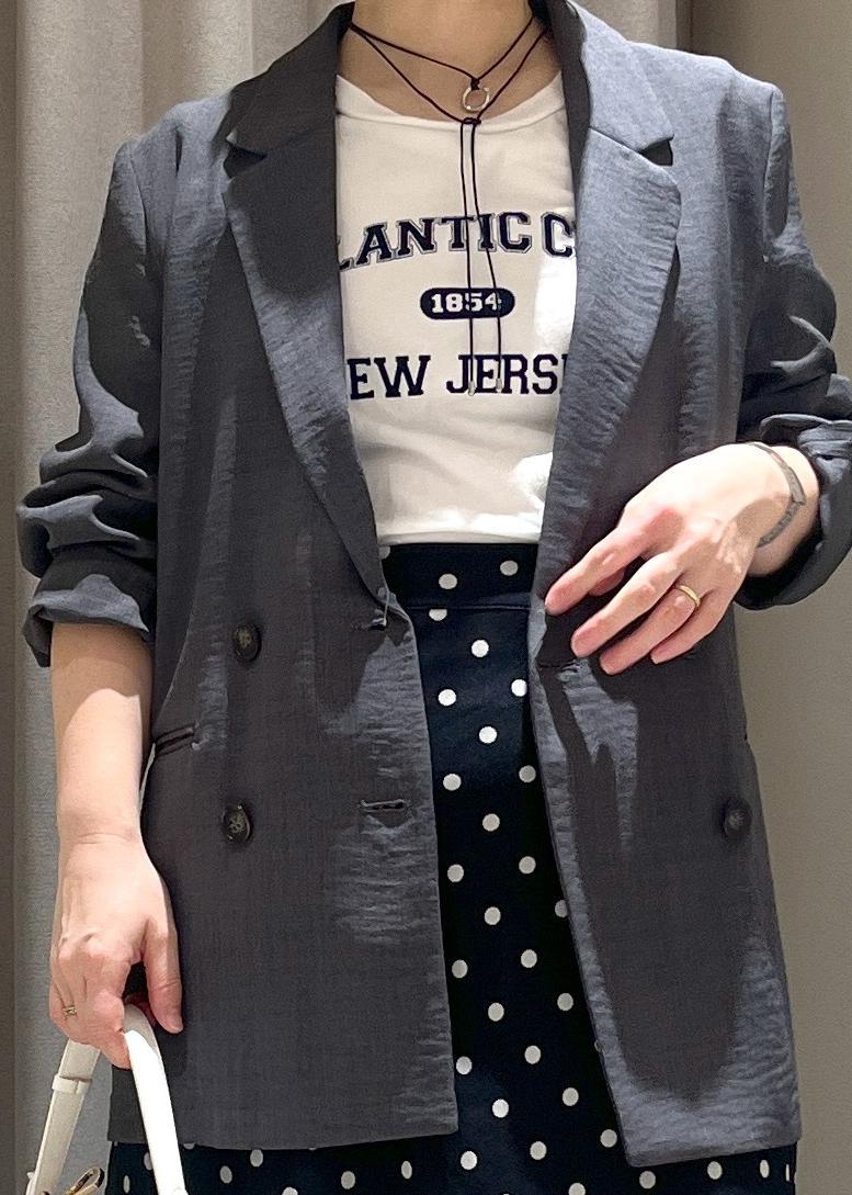 袖を折るか、捲って着ると抜け感が出てバランス良く見えます。 -