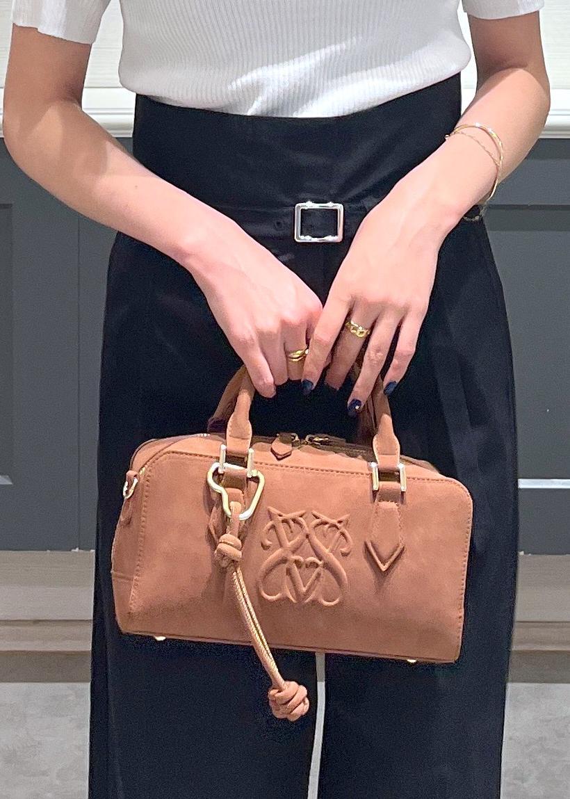 VISロゴスエードミニボストンバッグ/2WAYブラウン / F¥6,919レビューミニ財布、ハンカチ、メイクポーチ、携帯などお出かけ用の荷物をしっかり入れていただけます◎