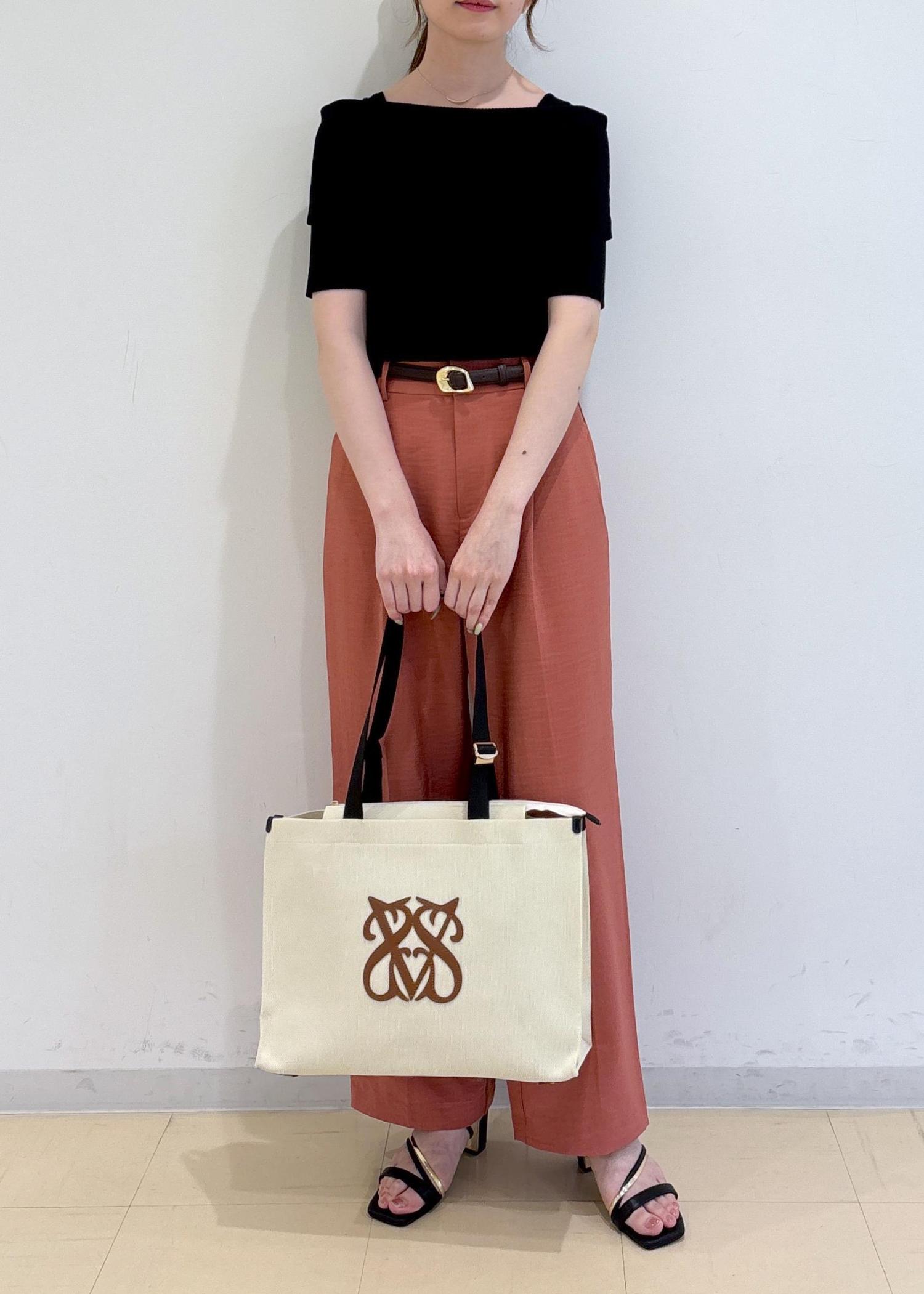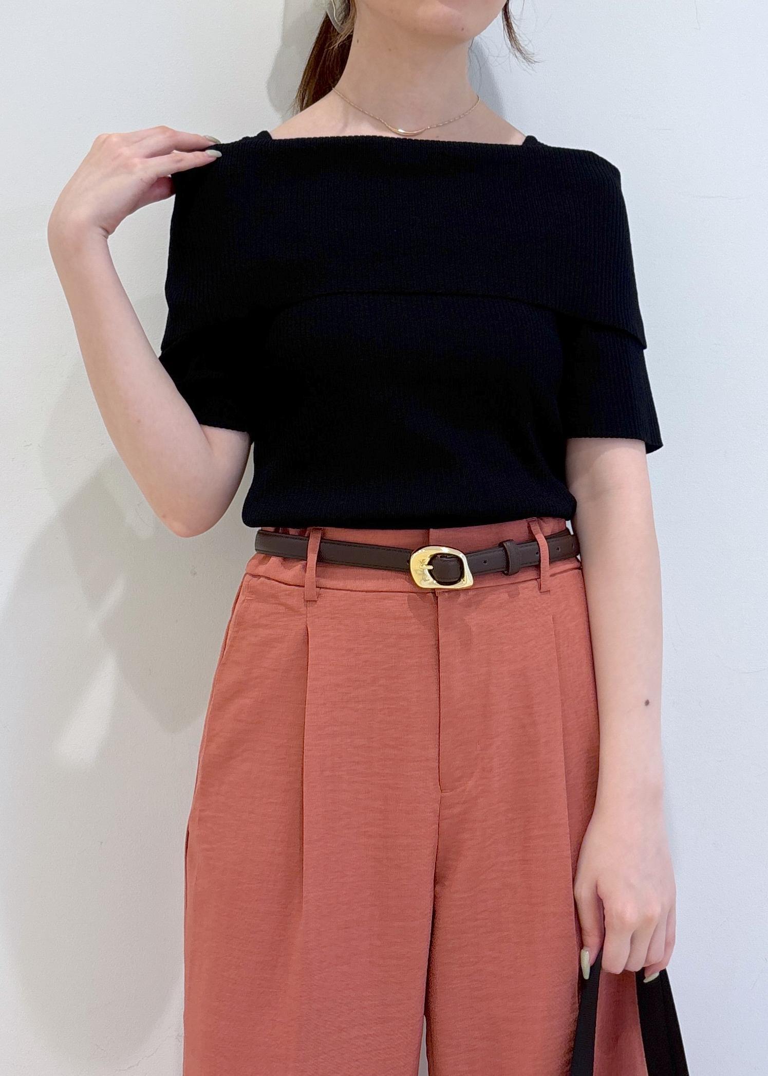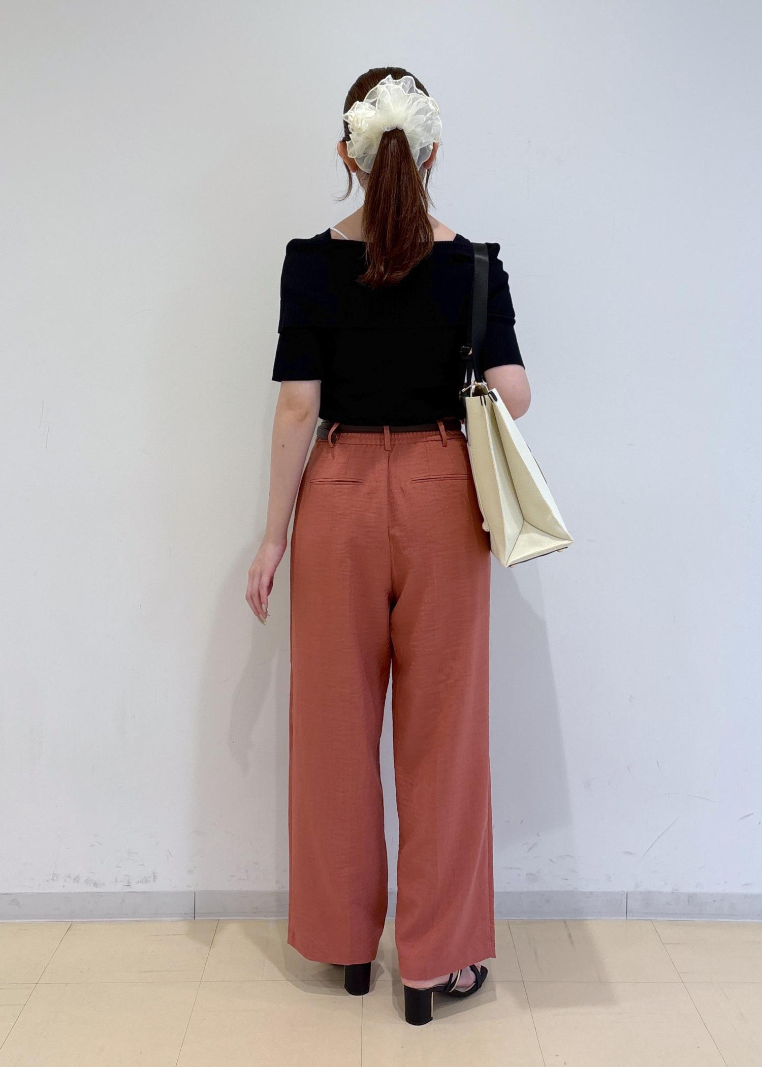 トップスはシンプルですが、オフショル風の形がデザイン性あって大人の女性らしい印象です。
