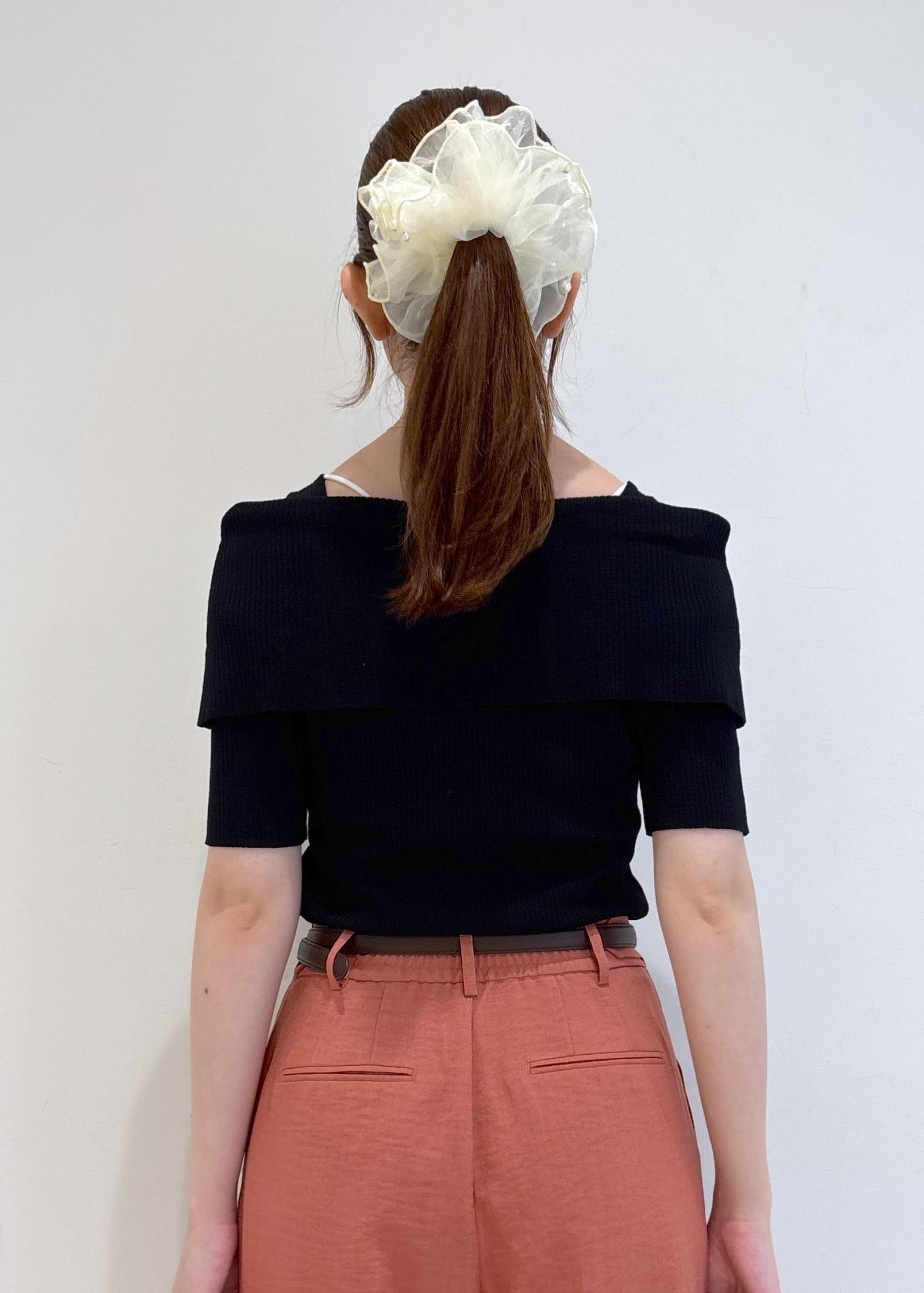【アンチピリング/UVケア/洗える】オフショルハーフスリーブニット