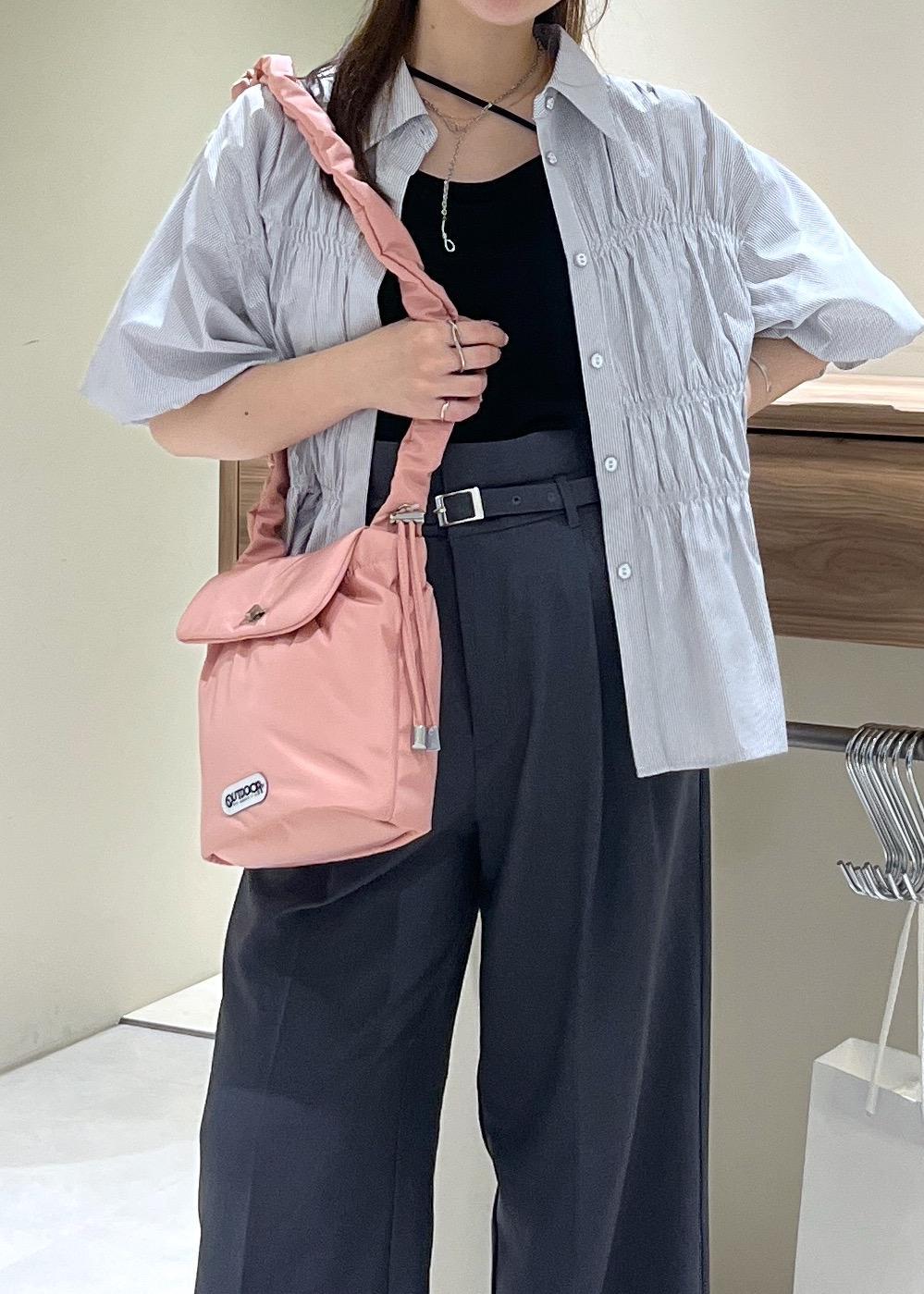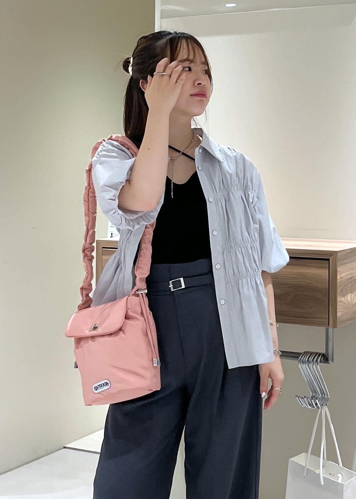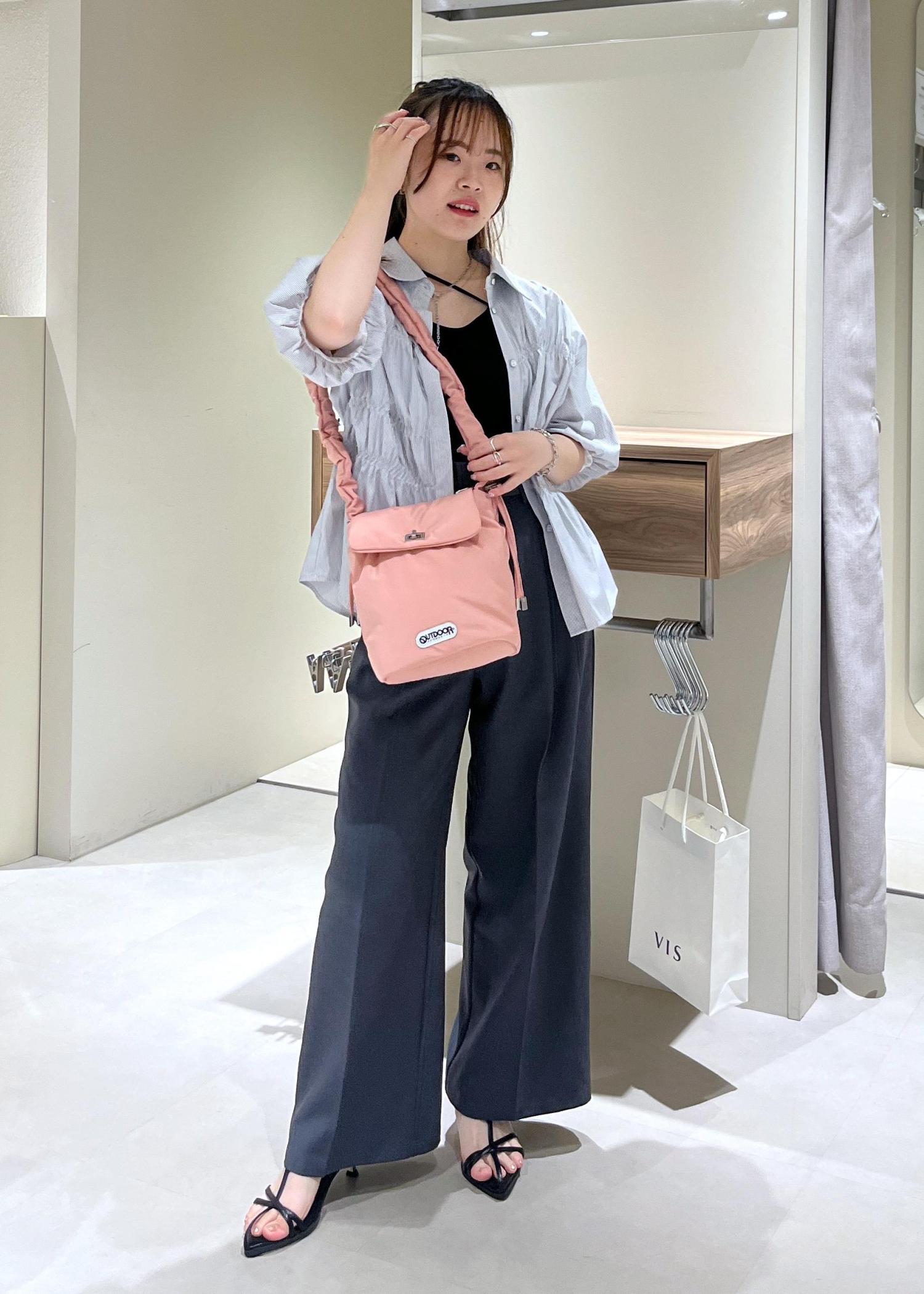 紐部分がアシンメトリーなデザインになるので、デコルテ周りがあいているトップスを着ても可愛いなと思いました☺︎ -