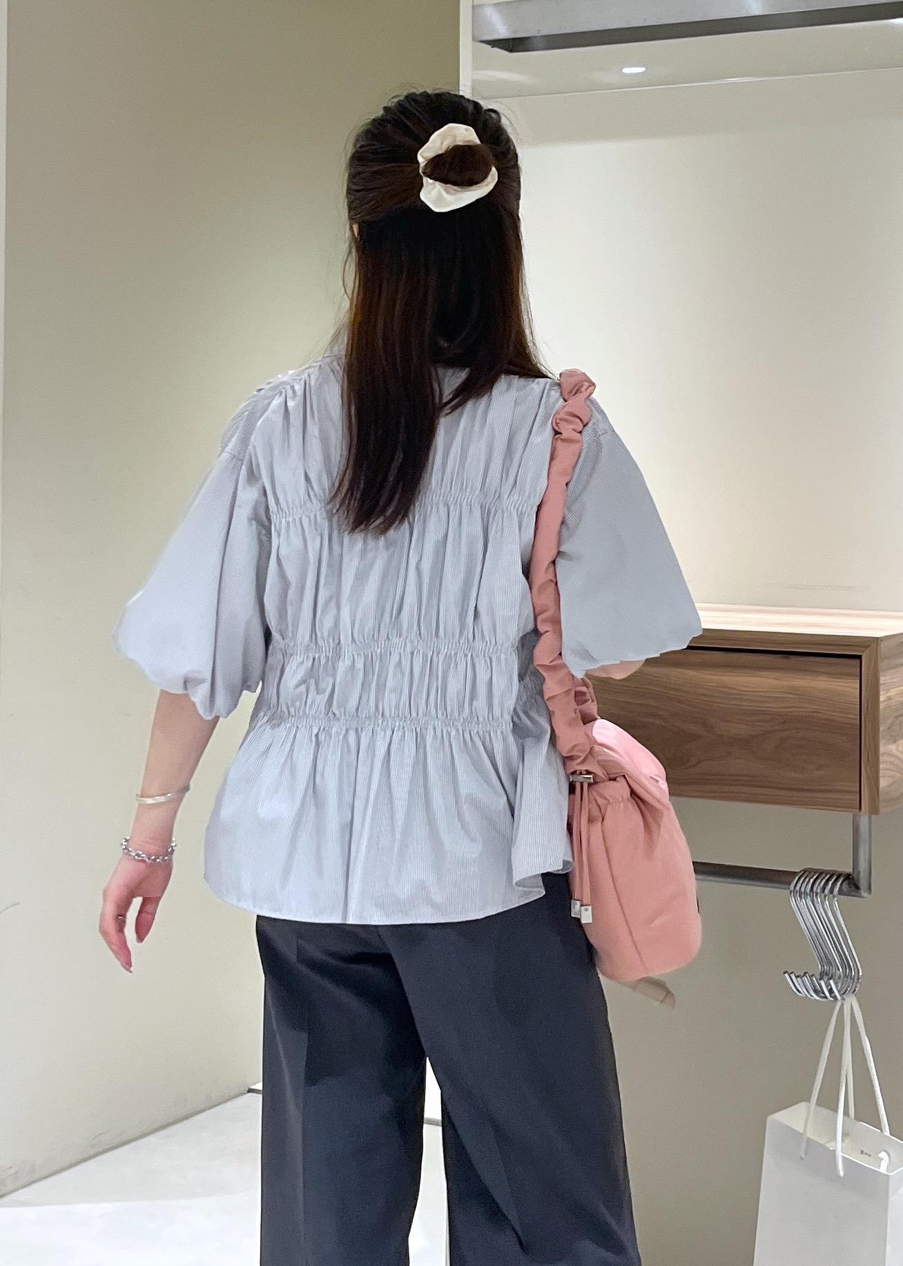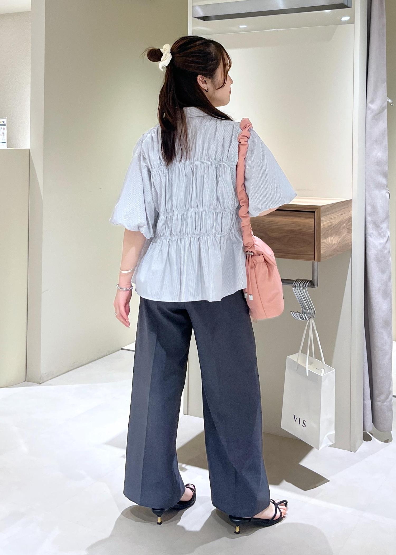 VIS【新色追加】【店頭人気】シャーリングバルーンシャツグレー / F¥5,489レビュー大人気ブラウスの半袖ver!!