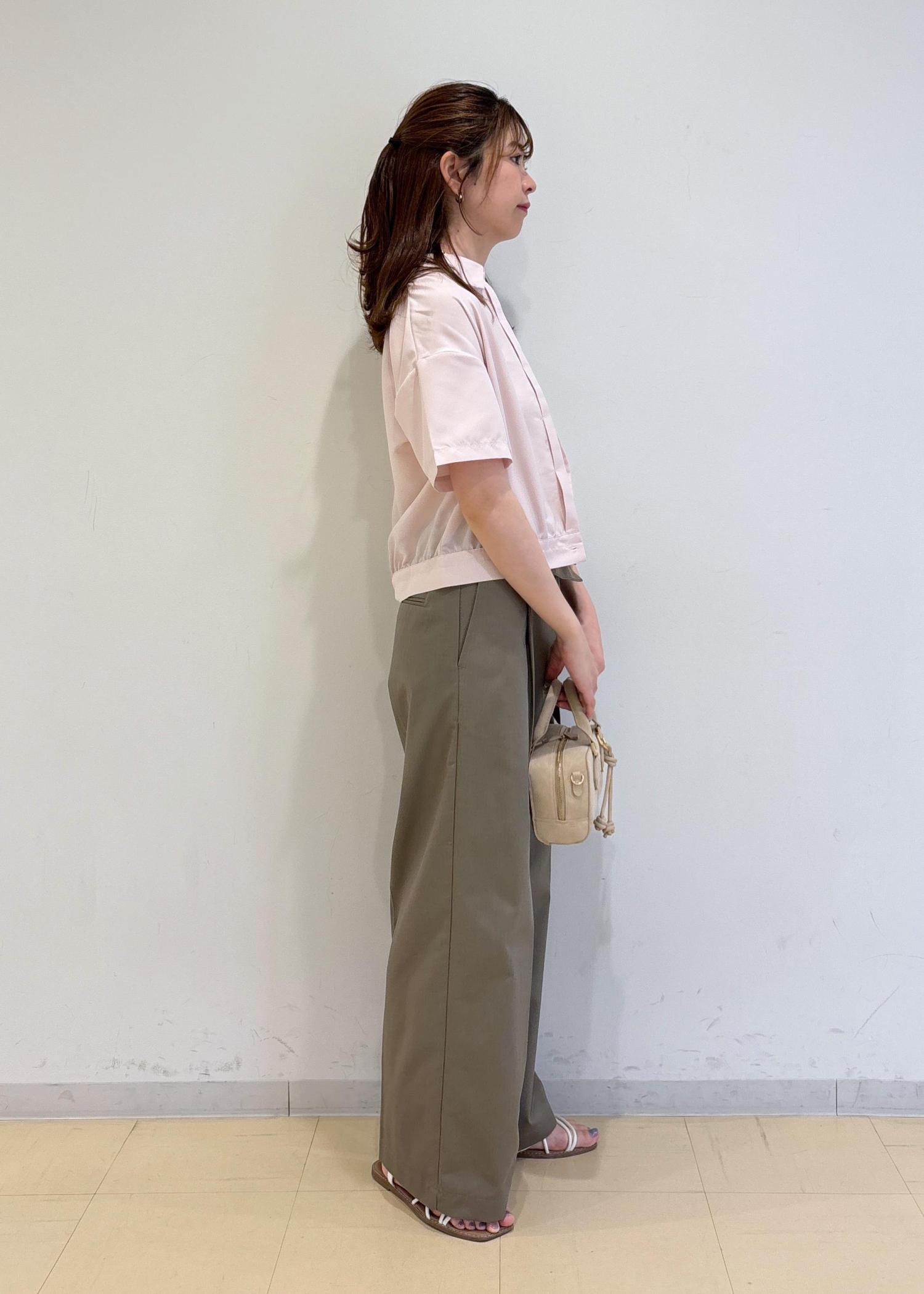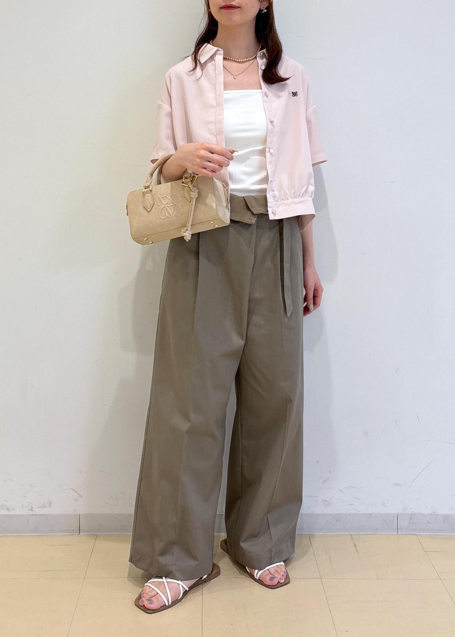 トップスはサラッと涼しく着用できるので暑さの続く夏にピッタリなアイテムです。前を開けて羽織で使うことで程よく肌見せができてヘルシーに!
