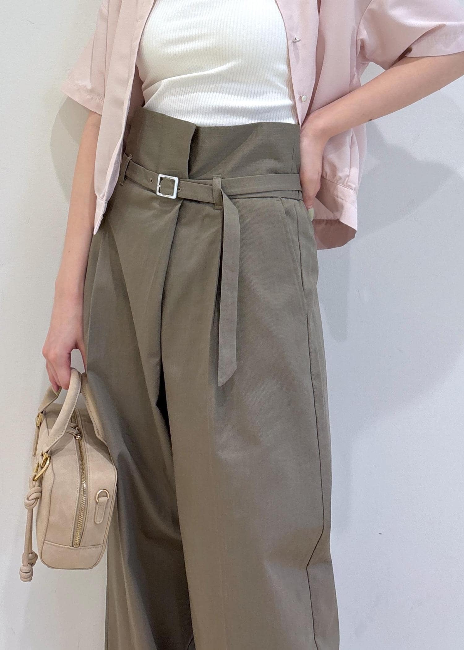 カーキカラーのパンツはウエストが折り返しできるのでワンポイントになります。