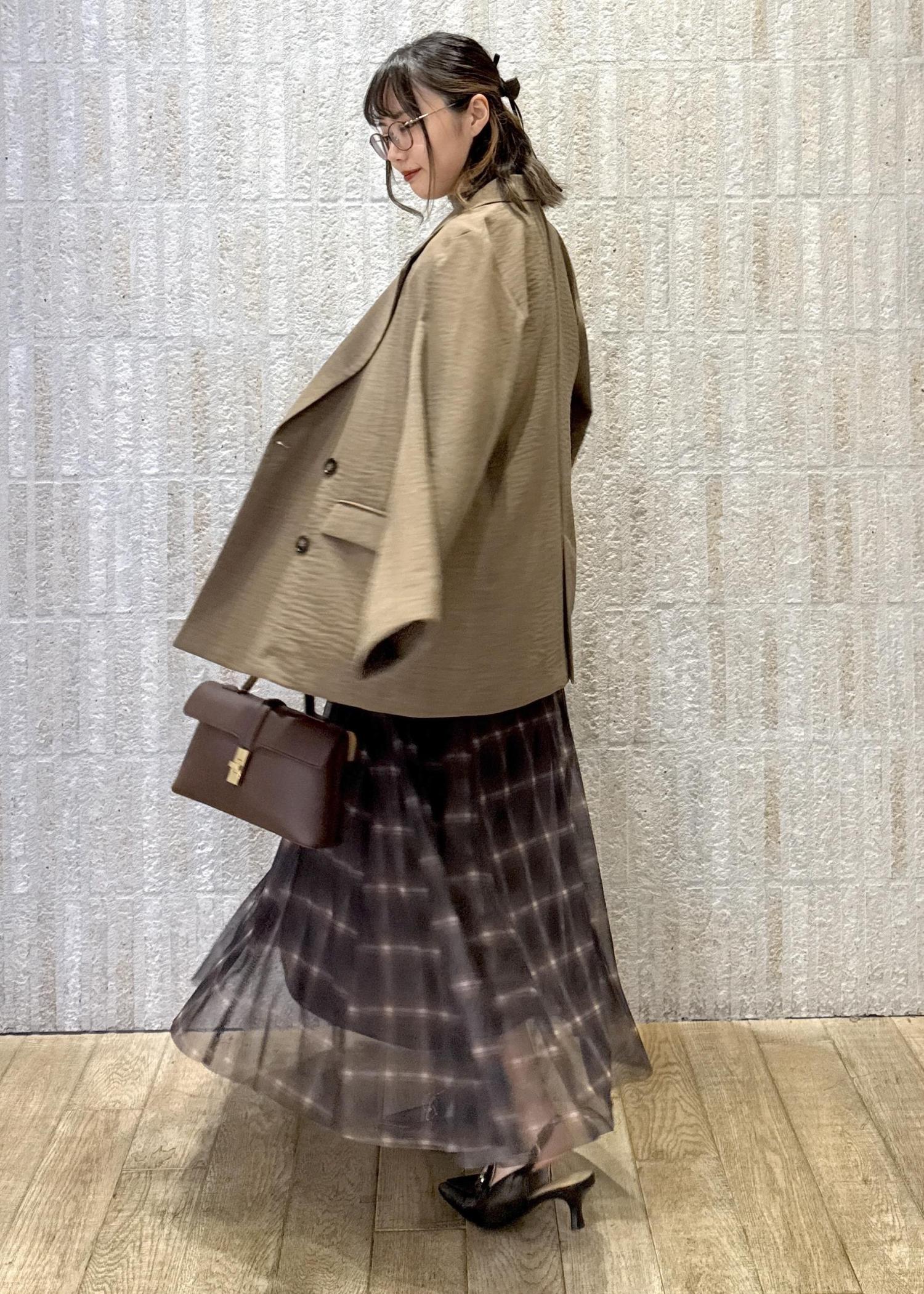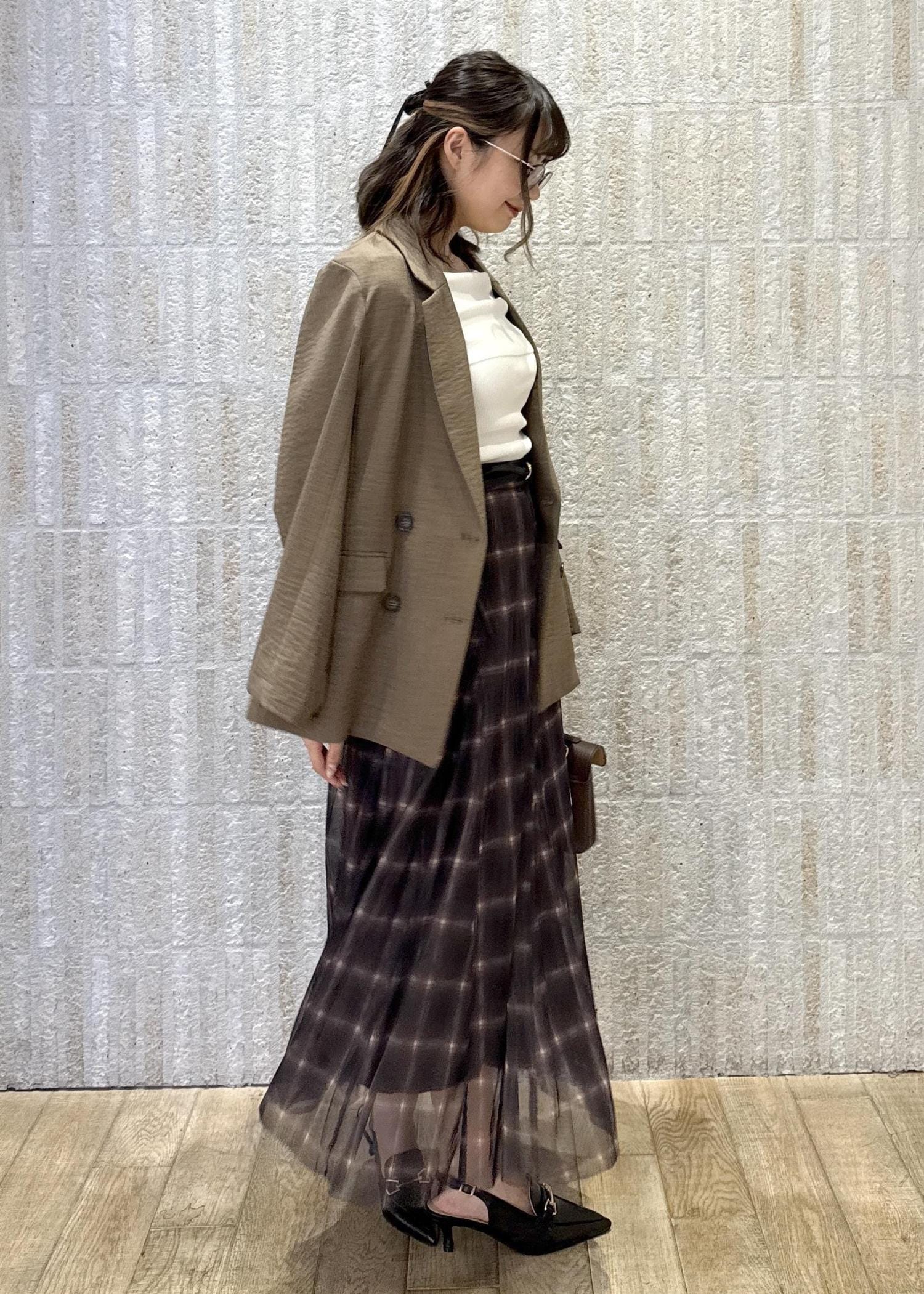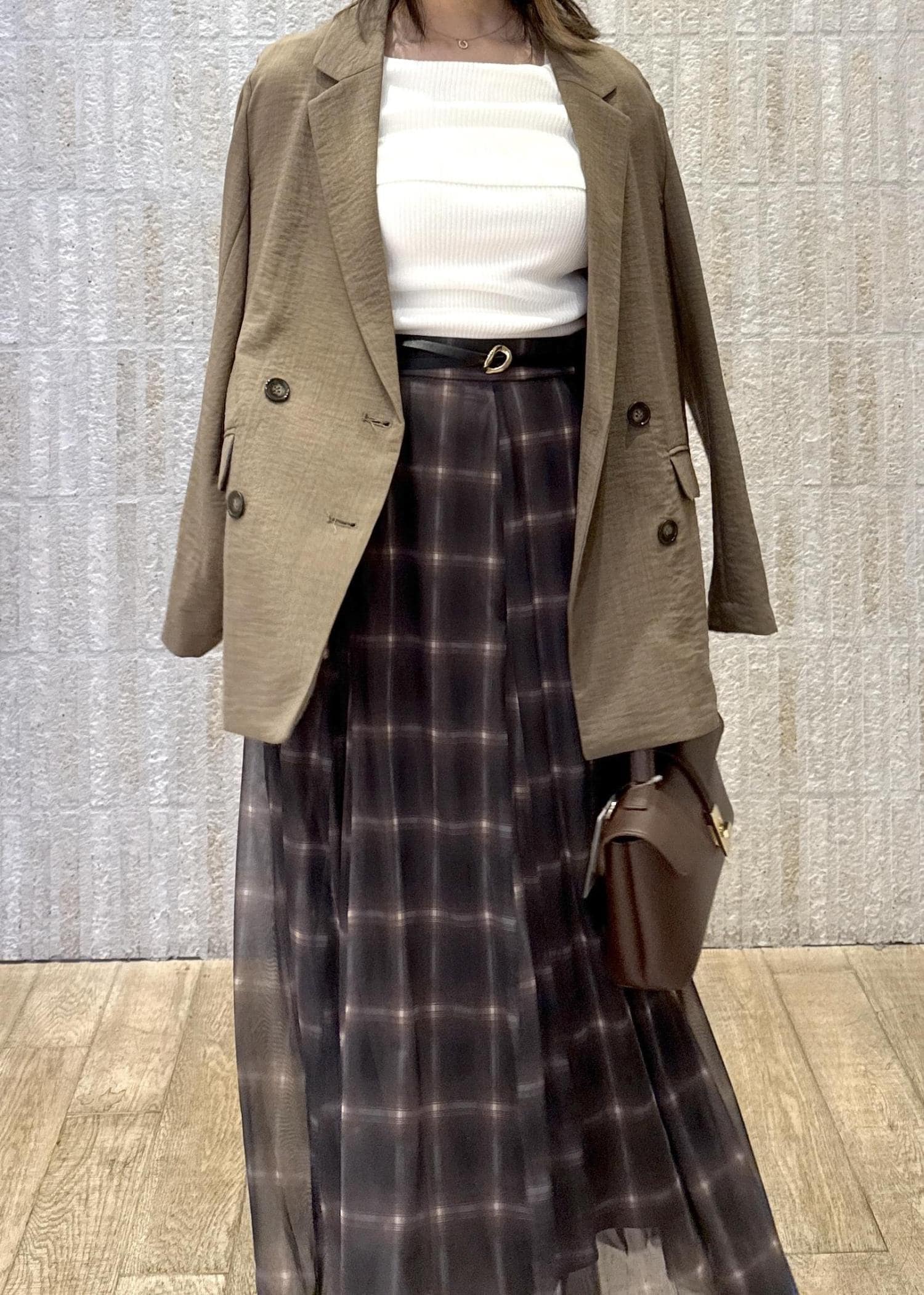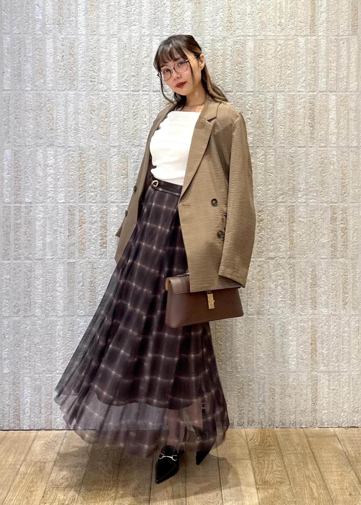 VIS【洗える】チュールプリントチェックスカートダークブラウン系 / F¥4,612レビューふわっとしたチュール素材のスカートです。