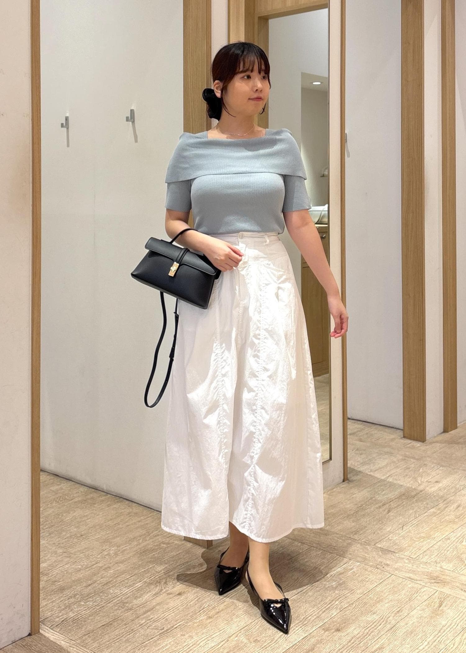 骨格ストレートの私はデコルテ部分がスッキリと空いたトップスが得意な為とっても相性が良かったです! -