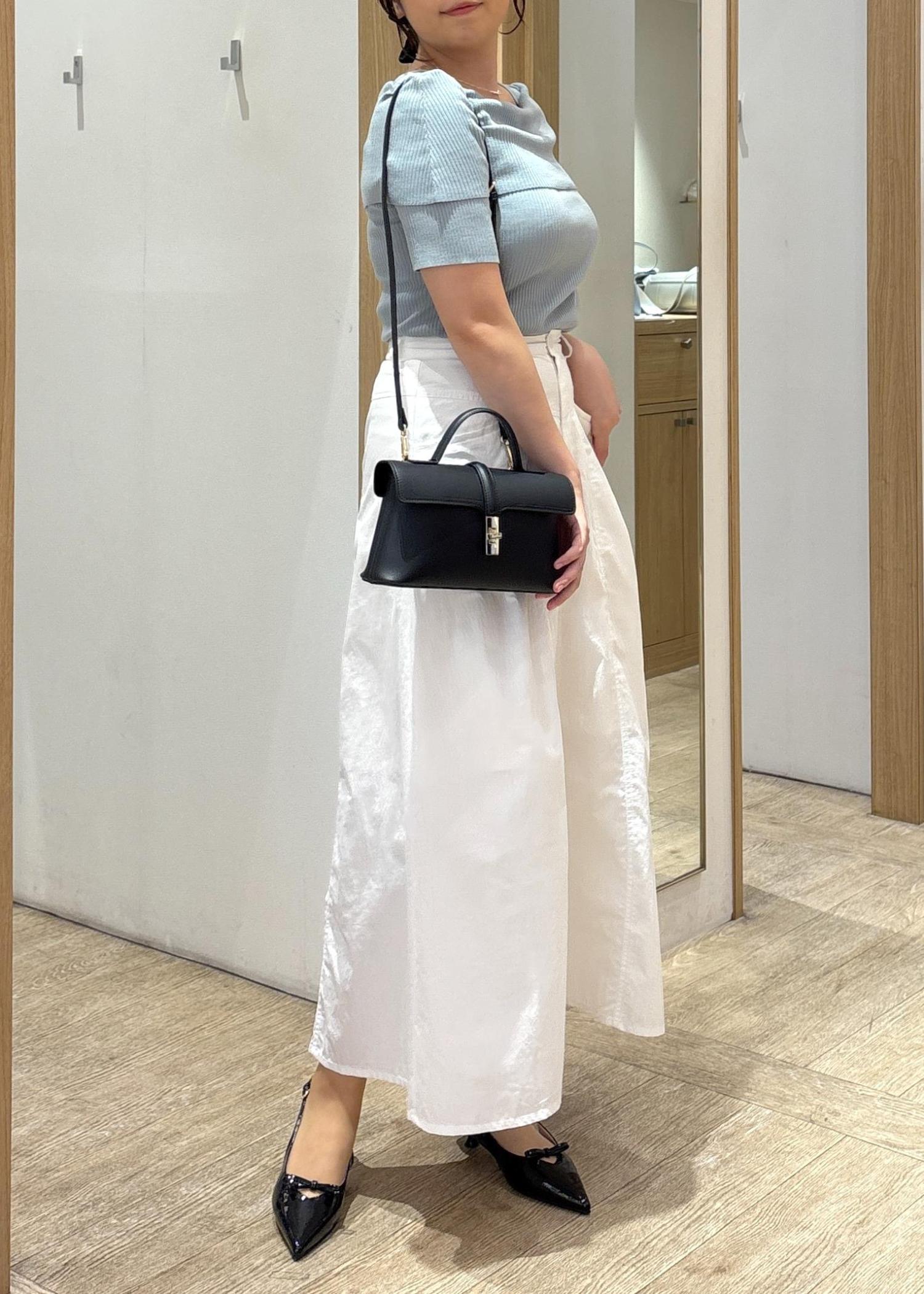 光沢のある素材でシンプルコーデに立体感と華やかさをプラス♪ -