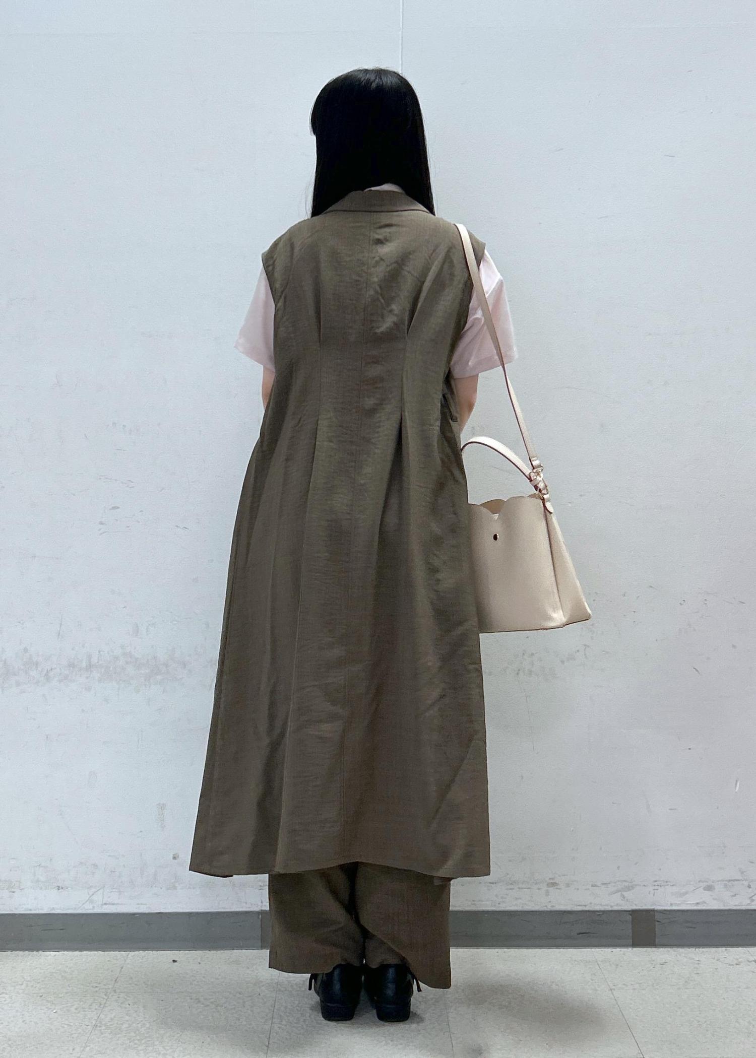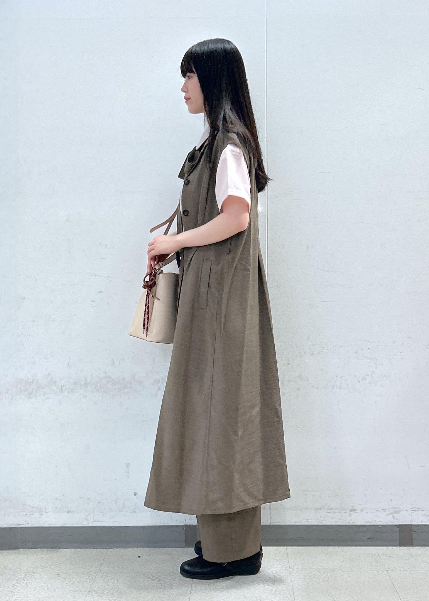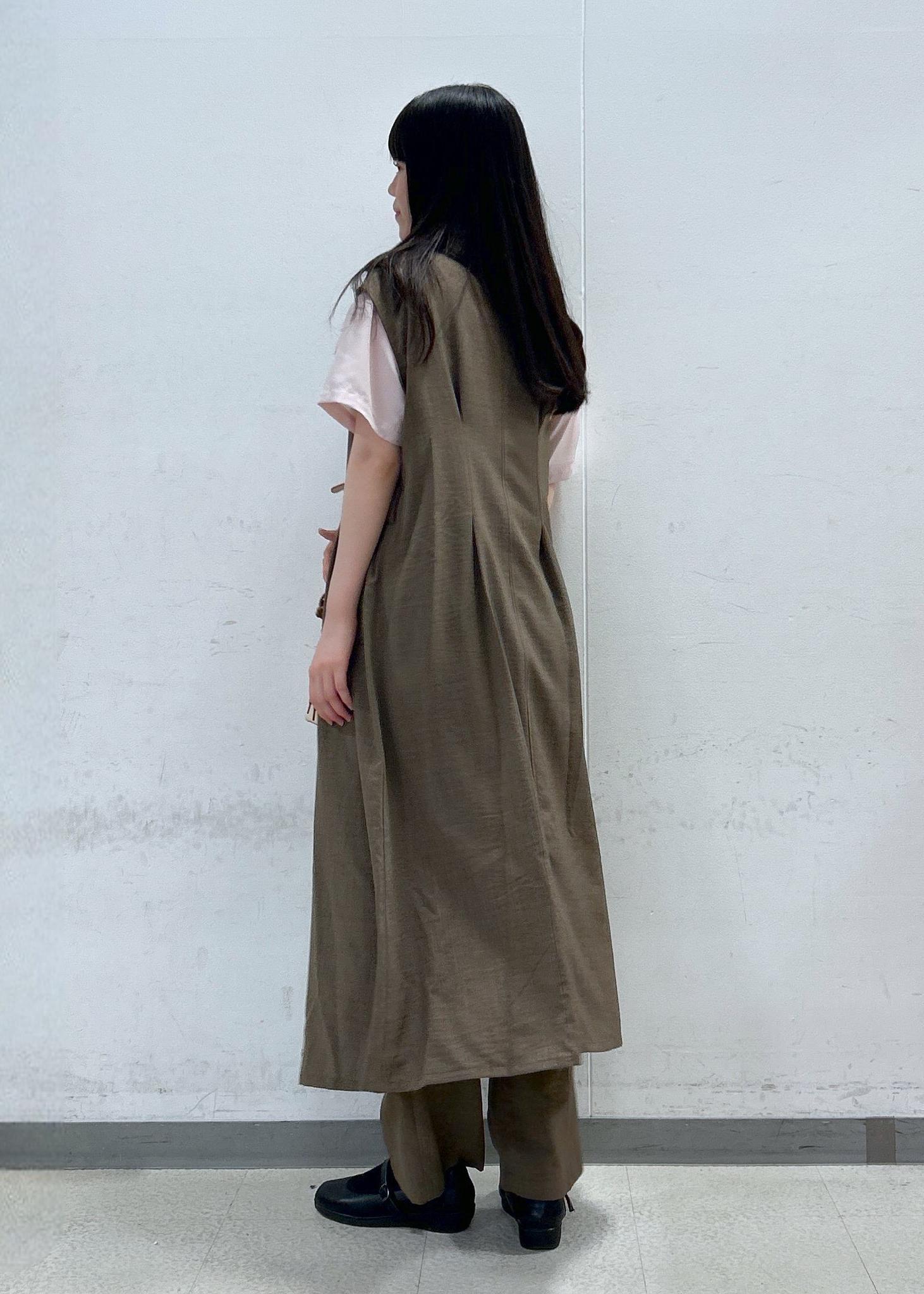 VIS【美easy】リネンライクジレワンピース【接触冷感/洗える】カーキ系 / F¥8,899レビュー接触冷感で前の釦を全部開けて着ることも可能なので暑がりさんにピッタリです!1枚でワンピースとして着用する場合は首周りと腕周りの露出範囲が広めなのでインナーを仕込んでおくのがおすすめです!