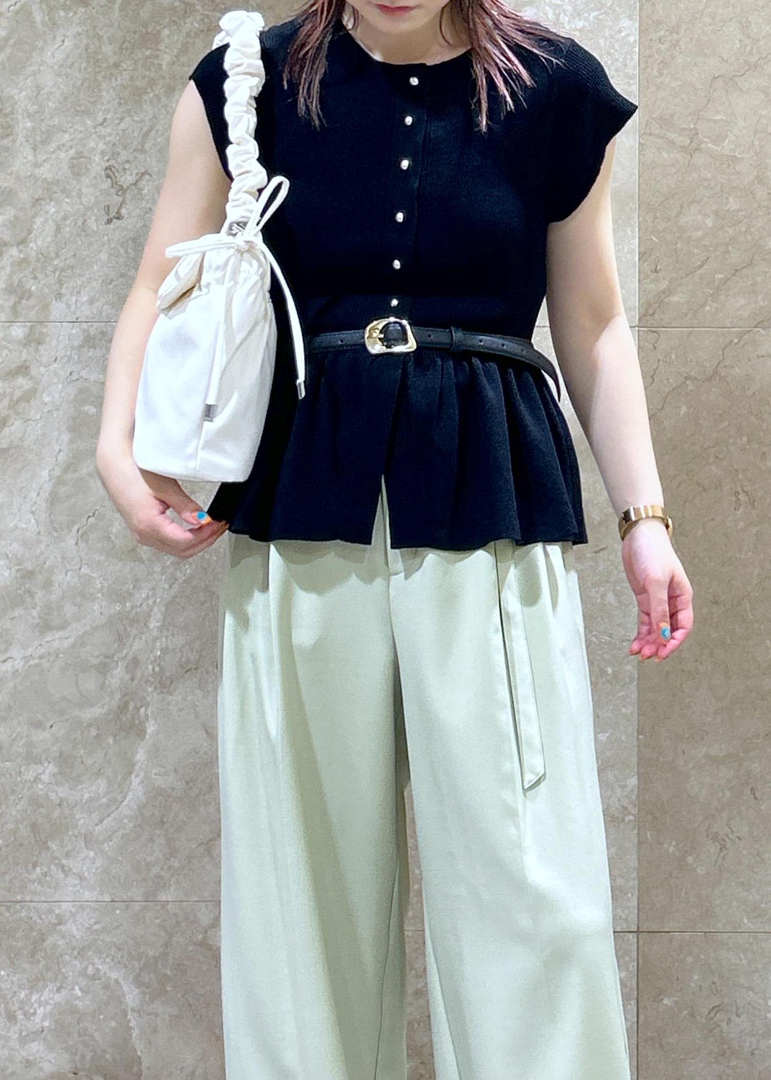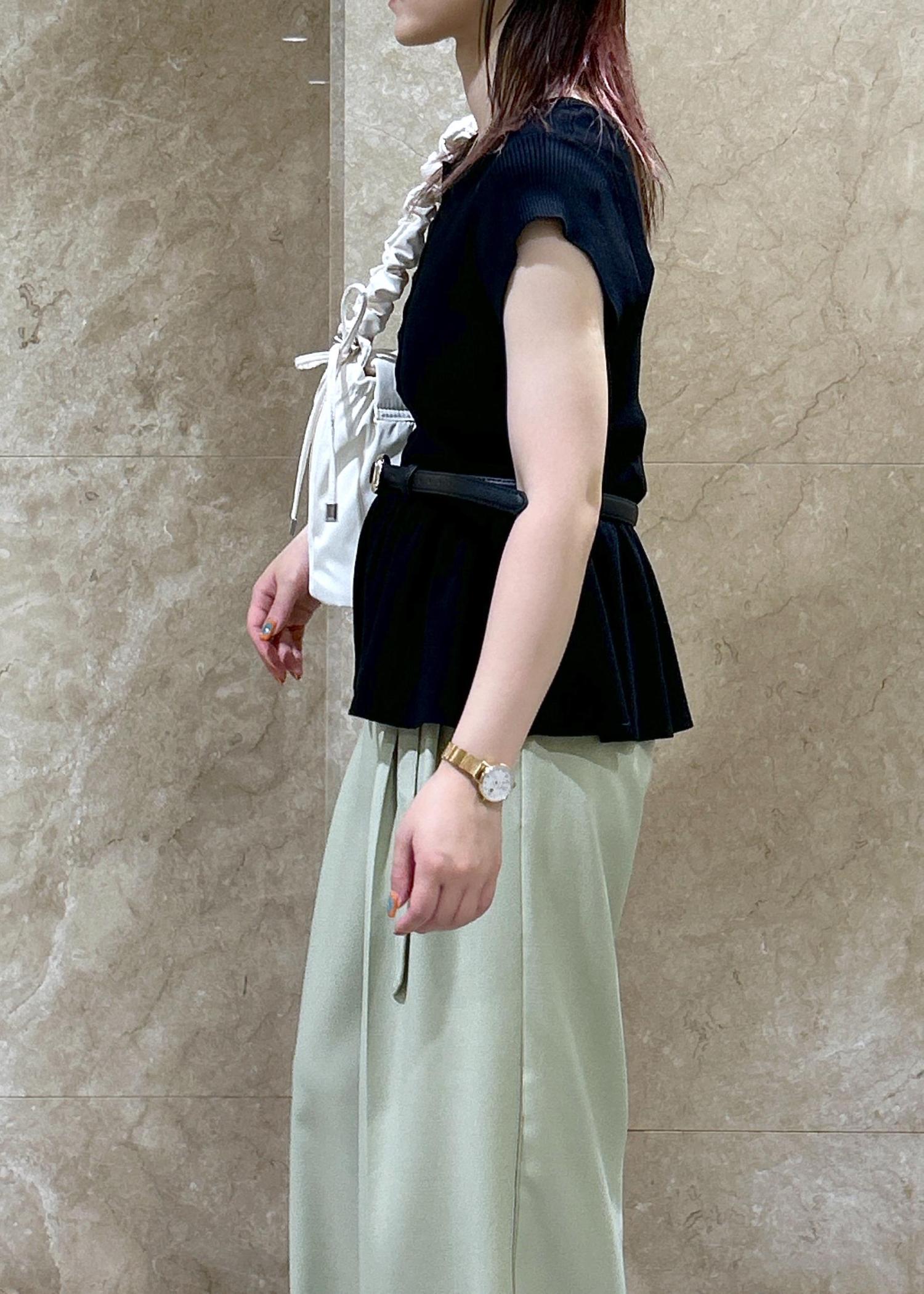 ベルトのウエストマークで脚長効果◎ -