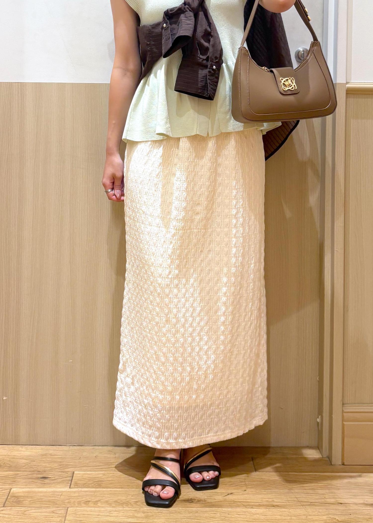 アウトレットVIS【新色追加】【接触冷感】膨れジャガードナロースカートオフホワイト / F¥3,293レビュー涼しくサラッとした素材ですが、裏地もついていてインナーなどの透けは気になりませんでした。
