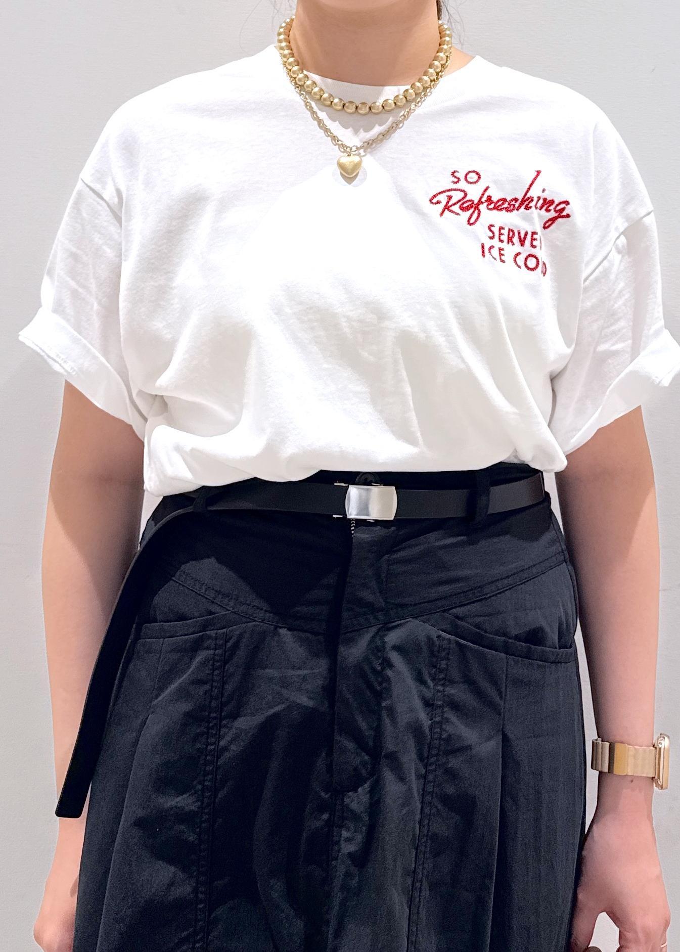 VIS【Coca-Cola】VIS別注フォト&ロゴプリントアソートTシャツホワイト / F¥3,850レビューVISとコカコーラのコラボTシャツが登場。カラーは3種類で身長157cm/Fサイズ着用ですが、オーバーサイズでゆったりとしたデザインです。お袖が長めなので、隠したい二の腕もカバーでき、綿100%でつくられているので、汗の吸収や通気性も良く夏にピッタリなTシャツ。私は骨格ストレートなので、オーバーサイズを着るとより上半身が大きく見えてしまうのでお袖をロールアップして折って着ています!