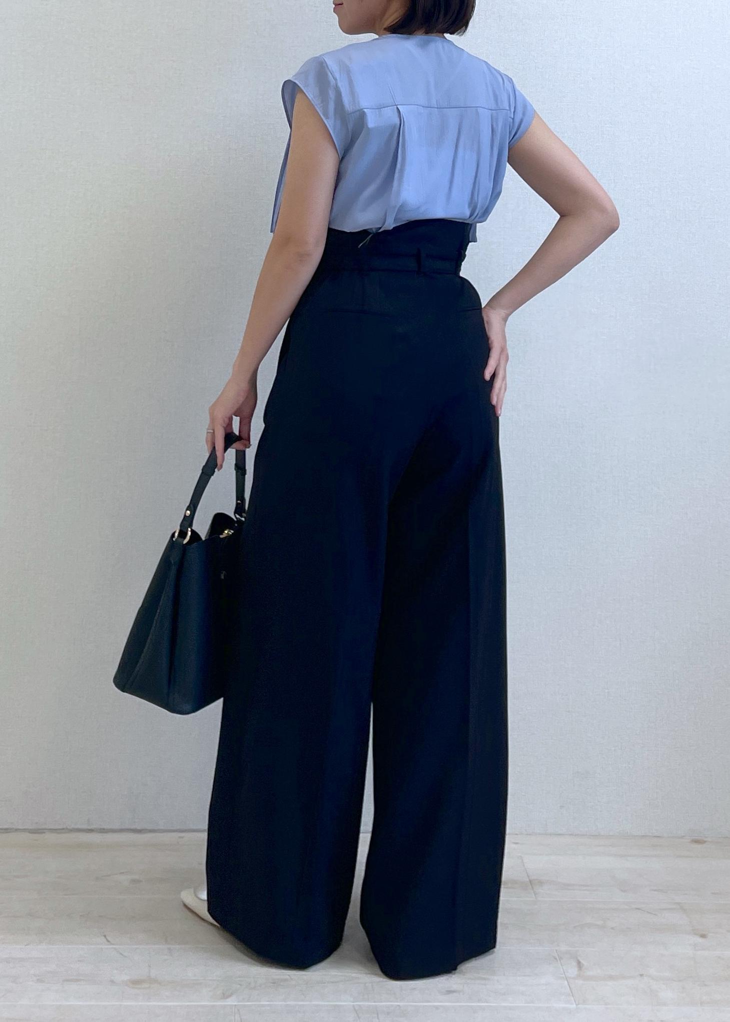 VIS【新色追加】【防シワ/接触冷感】ベルトディテールタックワイドスラックスパンツブラック / S¥6,589レビュー150cmでSサイズ着用で、丈感はヒールを履いて下に着かないくらいです。