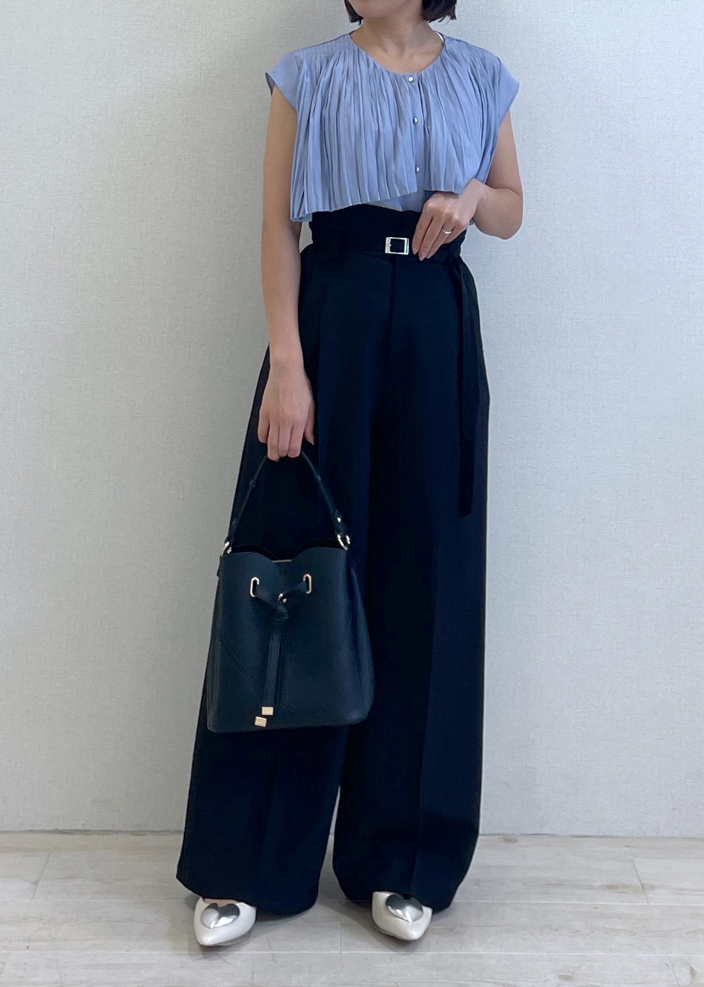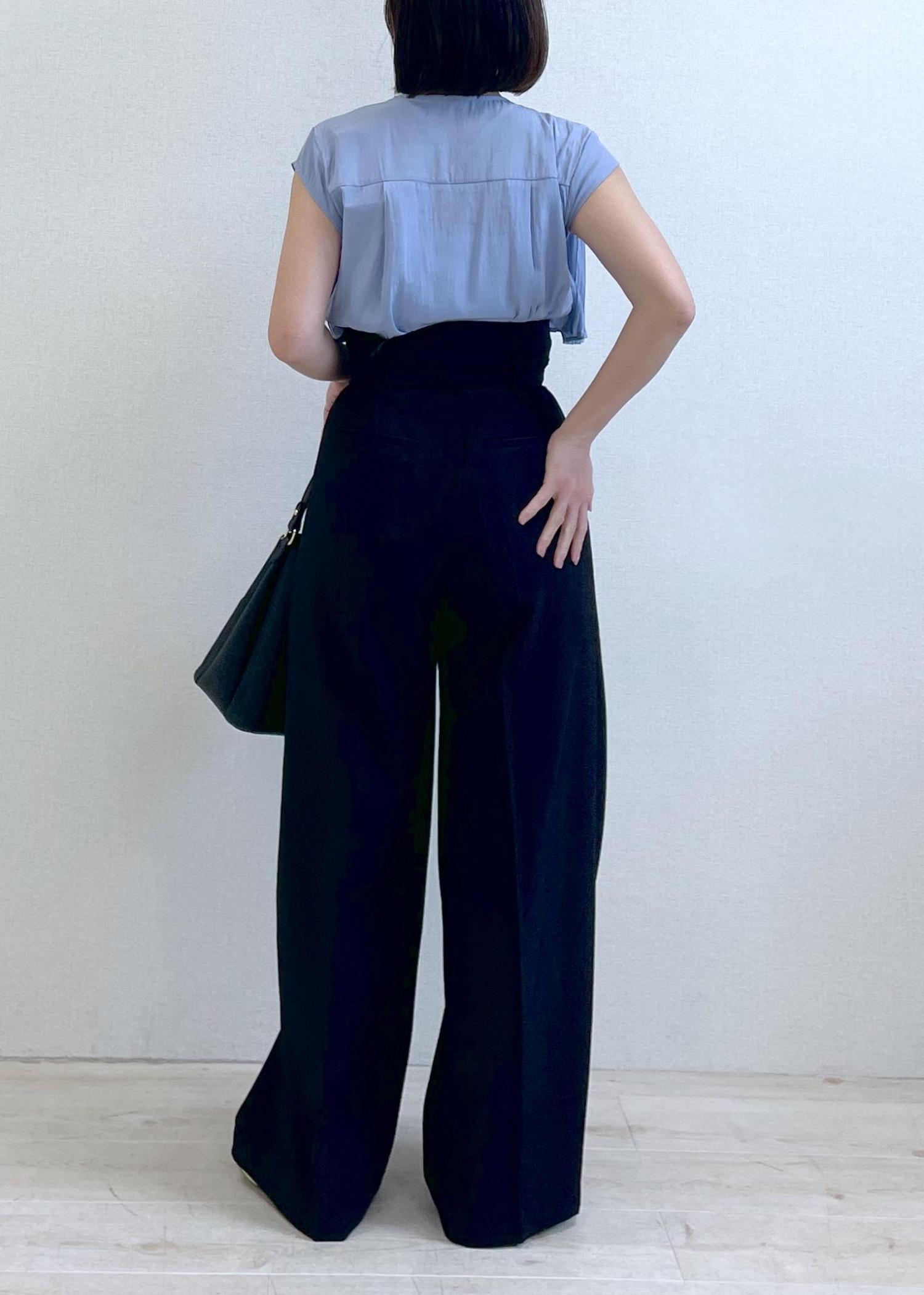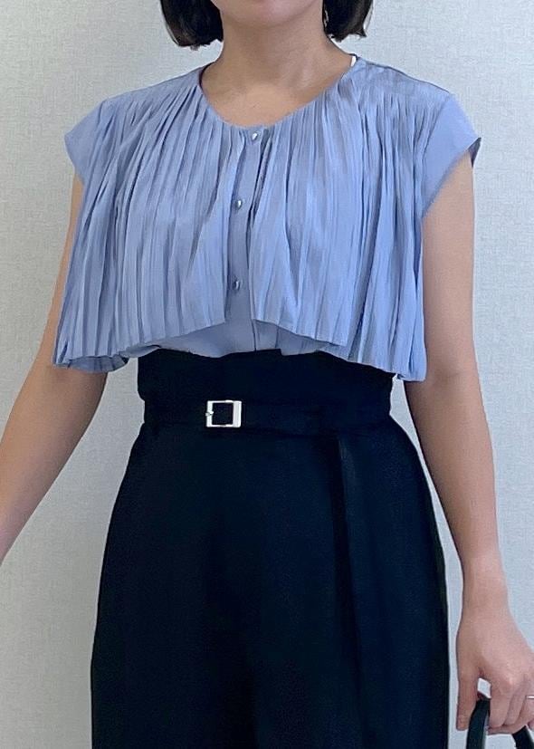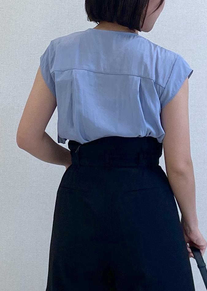 アウトレットVISプリーツデザインブラウス/通勤対応サックス / F¥2,745レビュー150cmでFサイズ着用です。