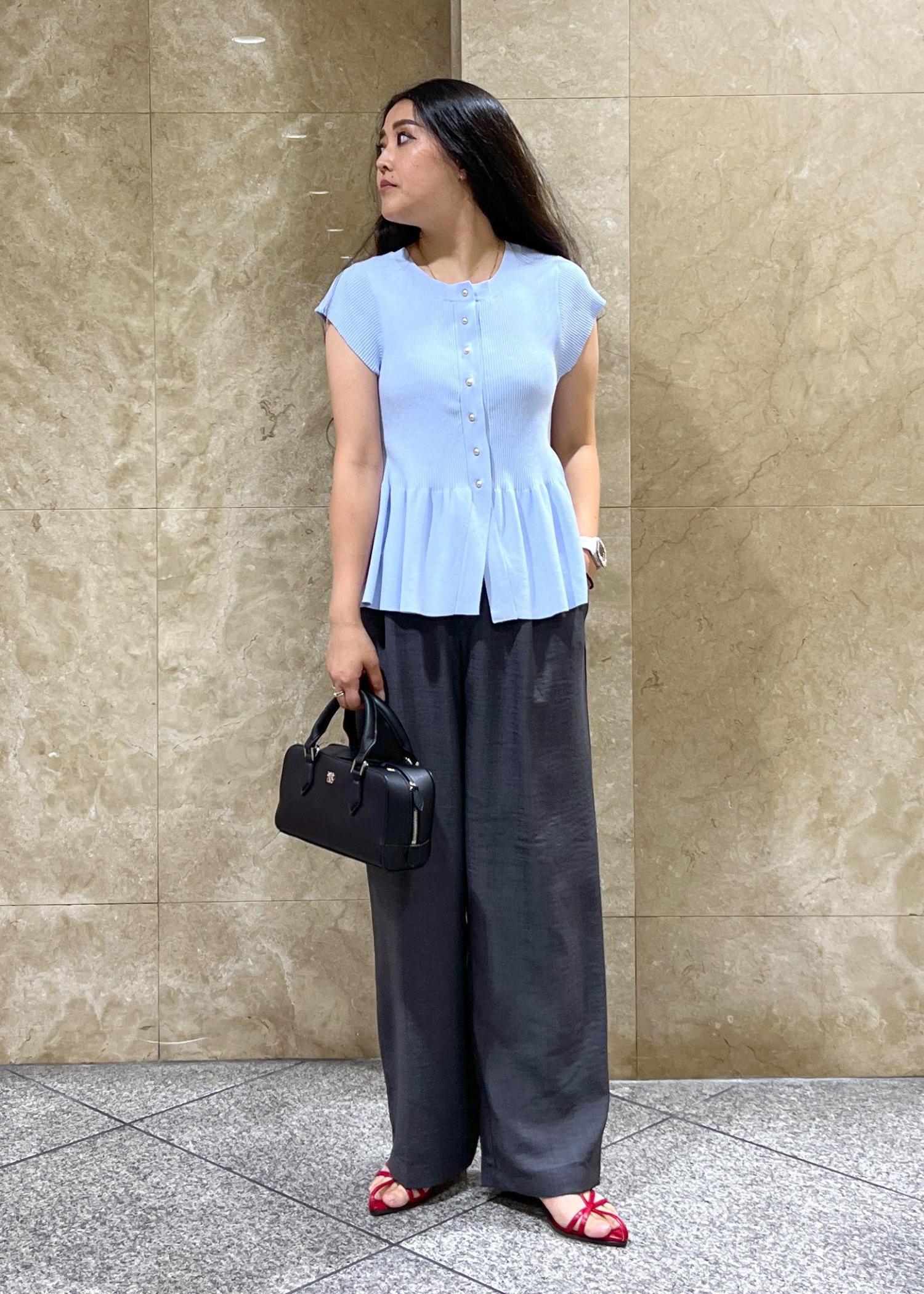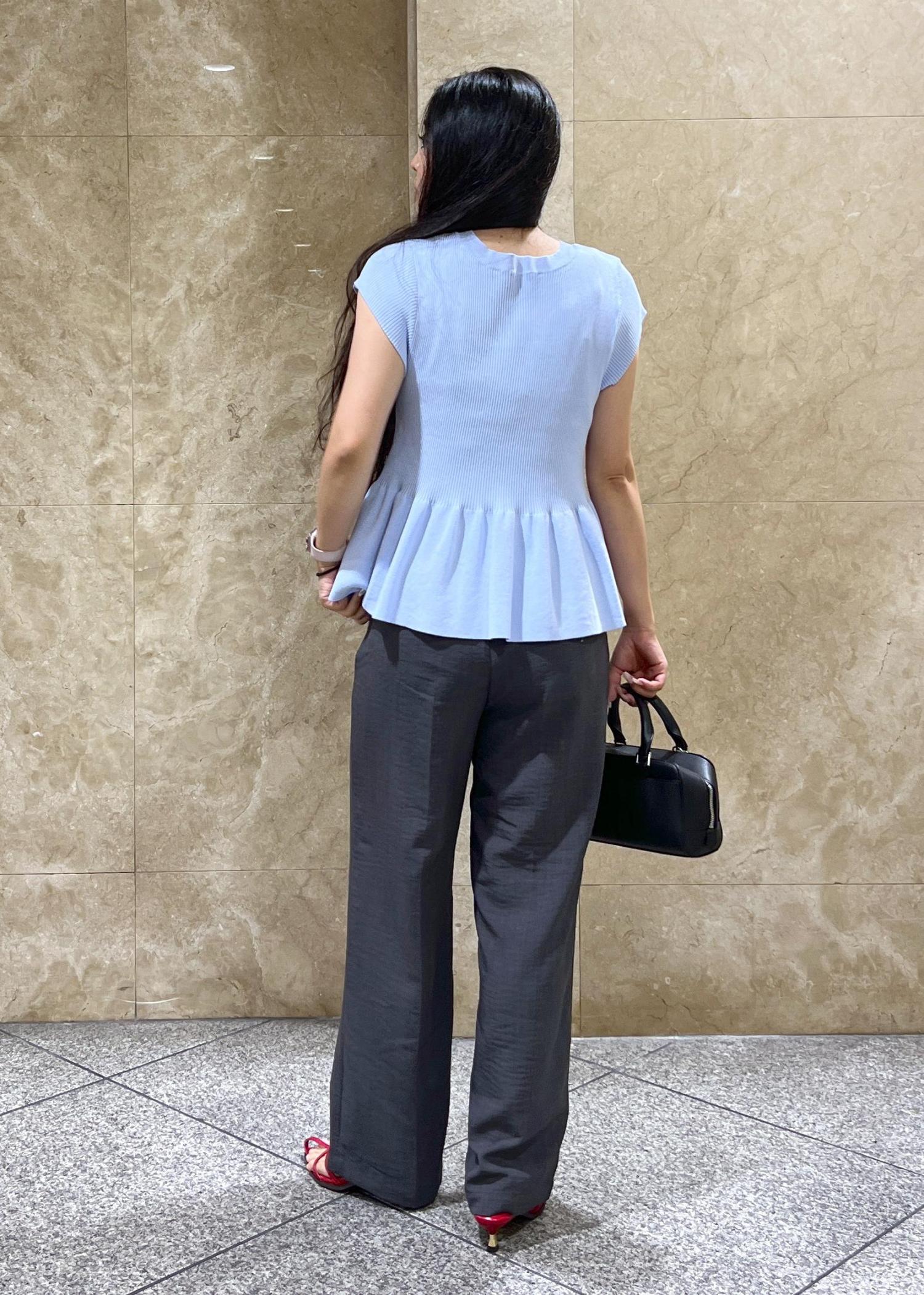VIS【アンチピリング/洗える】美SMARTショートスリーブペプラムニットサックス / F¥5,489レビュー色味丈感とっても可愛いです!!!◎以前は5分丈ぐらいでしたが少し短くなりました°・*:.。.☆