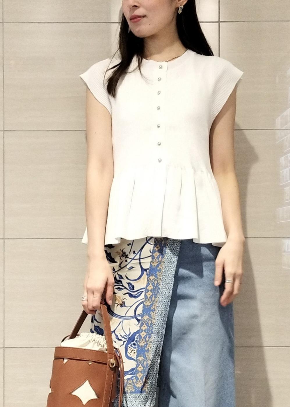 VIS【アンチピリング/洗える】美SMARTショートスリーブペプラムニットオフホワイト / F¥5,489レビューペプラムシルエットが可愛いニットトップス♪シルバーのボタンも涼しげでスッキリとした印象に♪夏らしい袖丈で、カーディガンタイプなので開けて着てもまた雰囲気が変わる1着です!