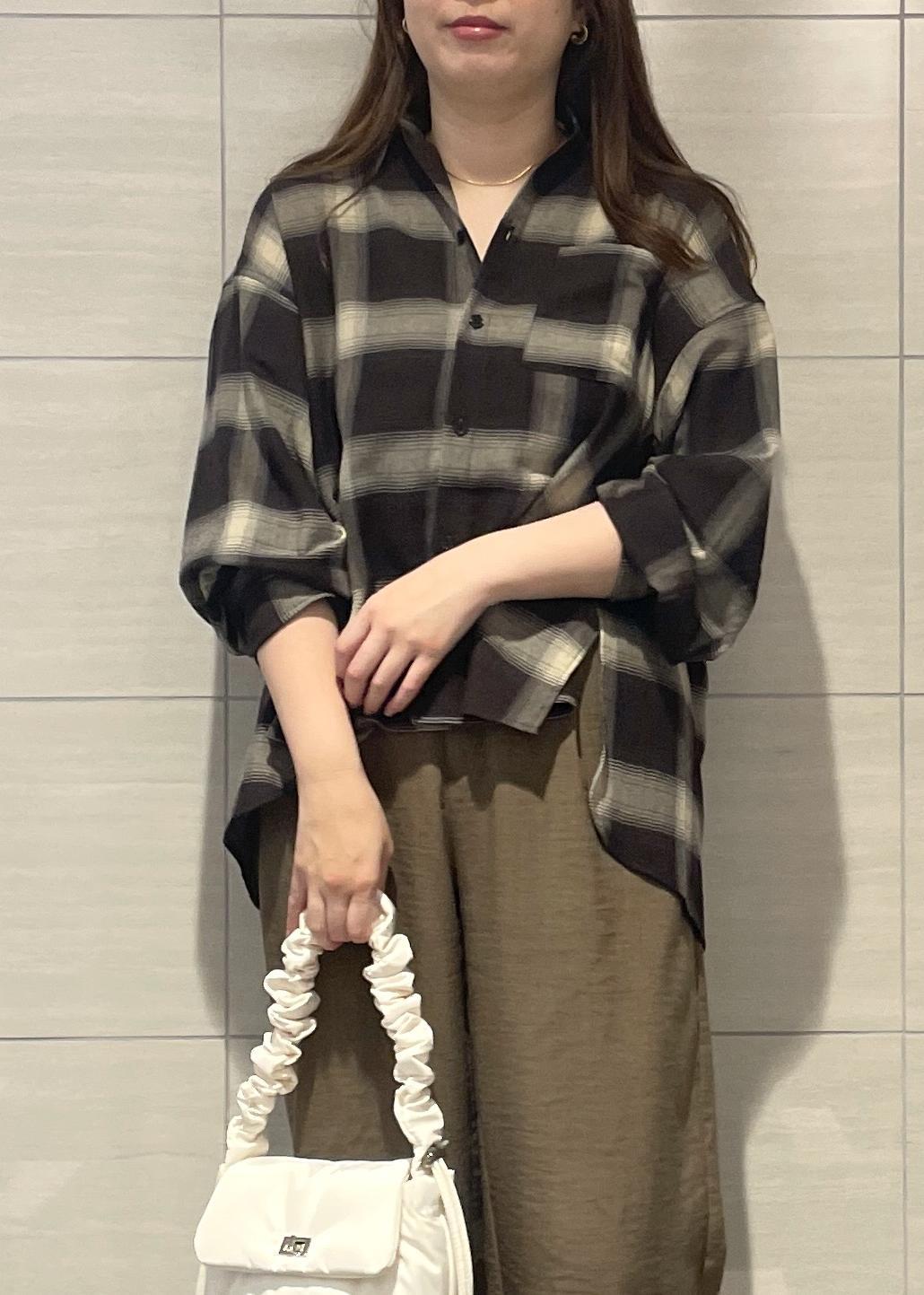 VISオンブレチェックオーバーシャツブラック系 / F¥6,589レビュー163cmで襟を抜かして着るとヒップがすっぽり隠れる丈感です。