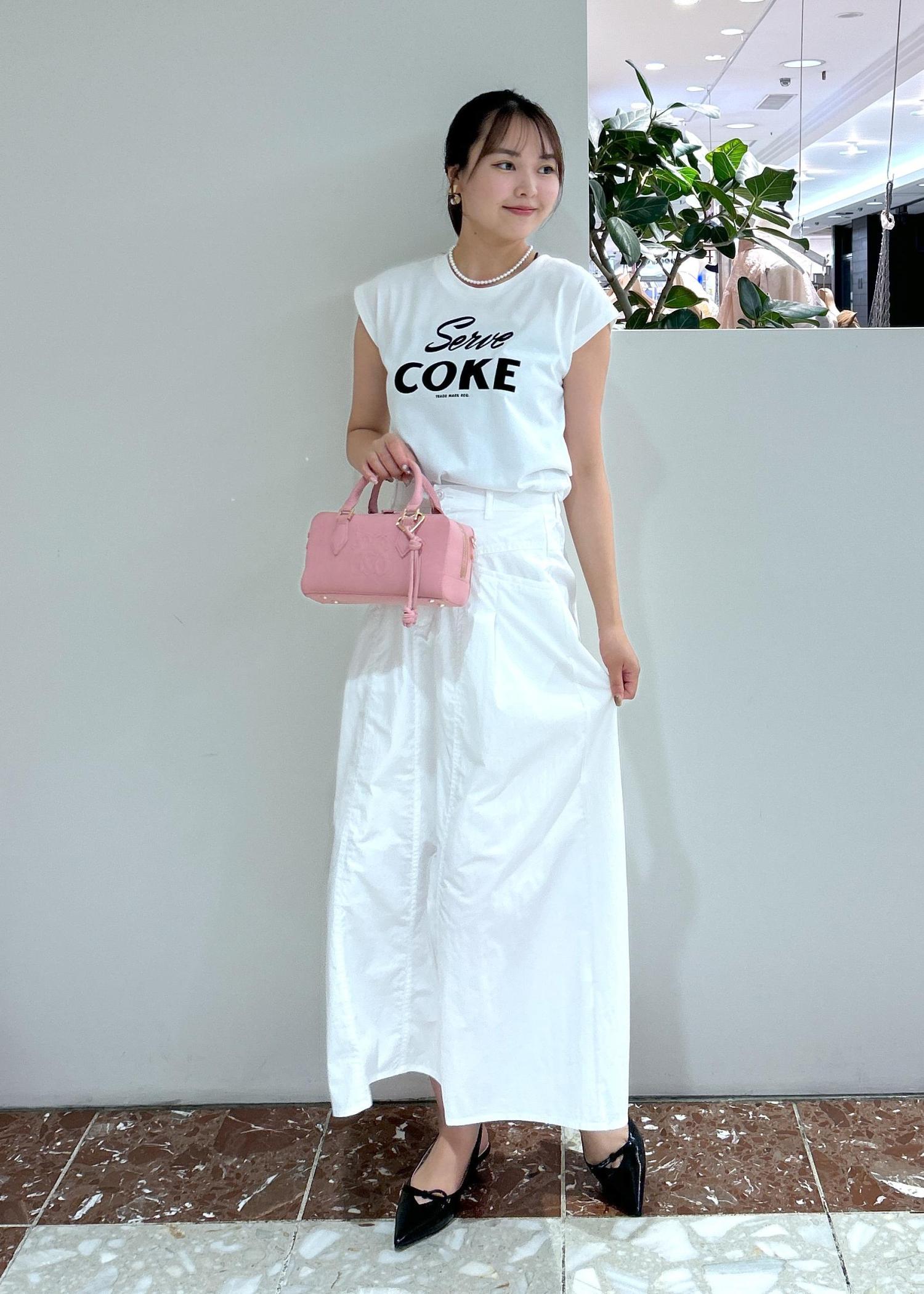 VIS【Coca-Cola】VIS別注ロゴプリントフレンチTシャツホワイト / F¥3,850レビュー肩が少し隠れるフレンチスリーブの袖丈!