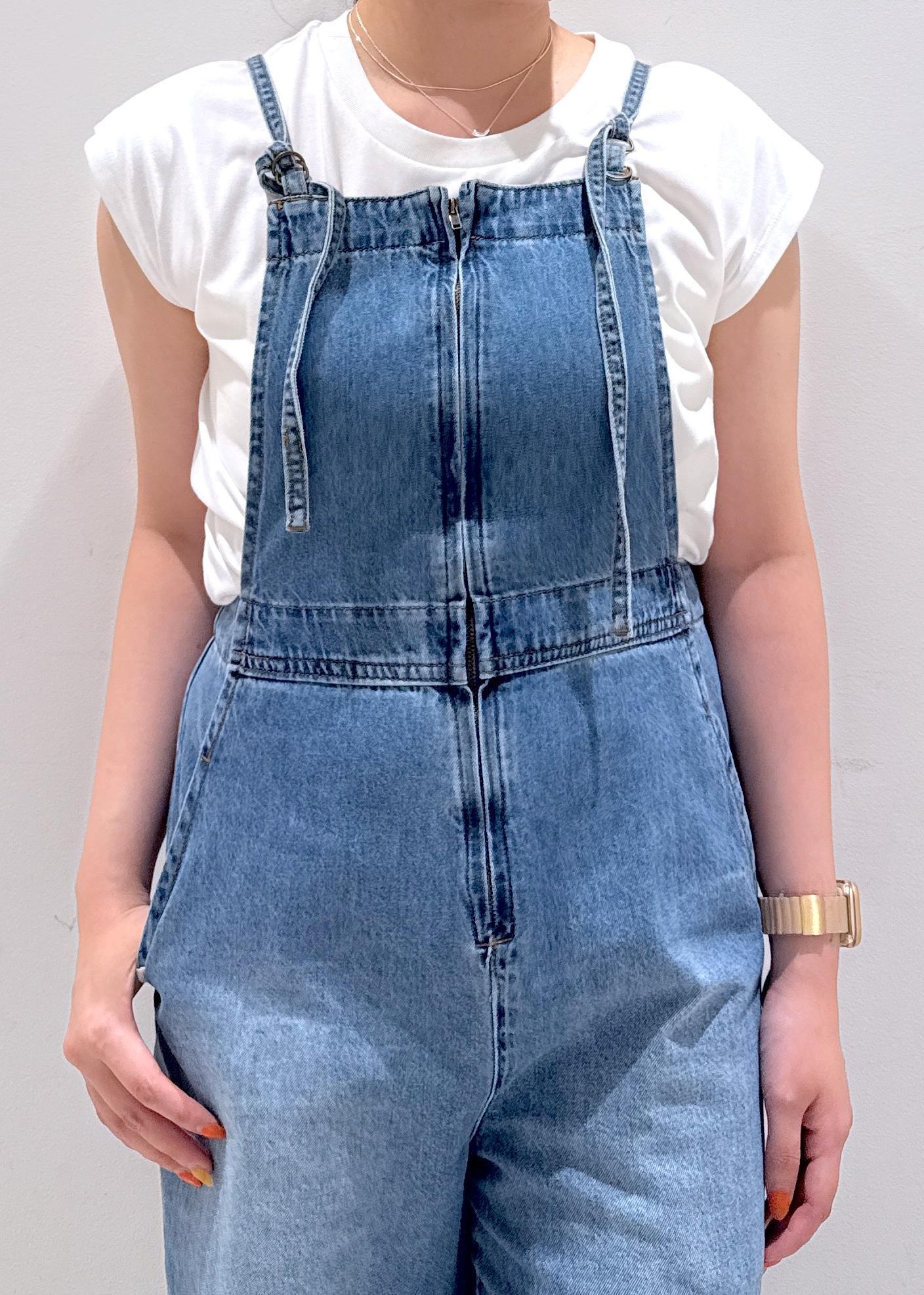 VISでしか買えないオリジナルサロペにTシャツと合わせて、カジュアルなコーディネートに。後ろのポケットにはコカコーラのオリジナルの刺繍デザインがされていて可愛いです。