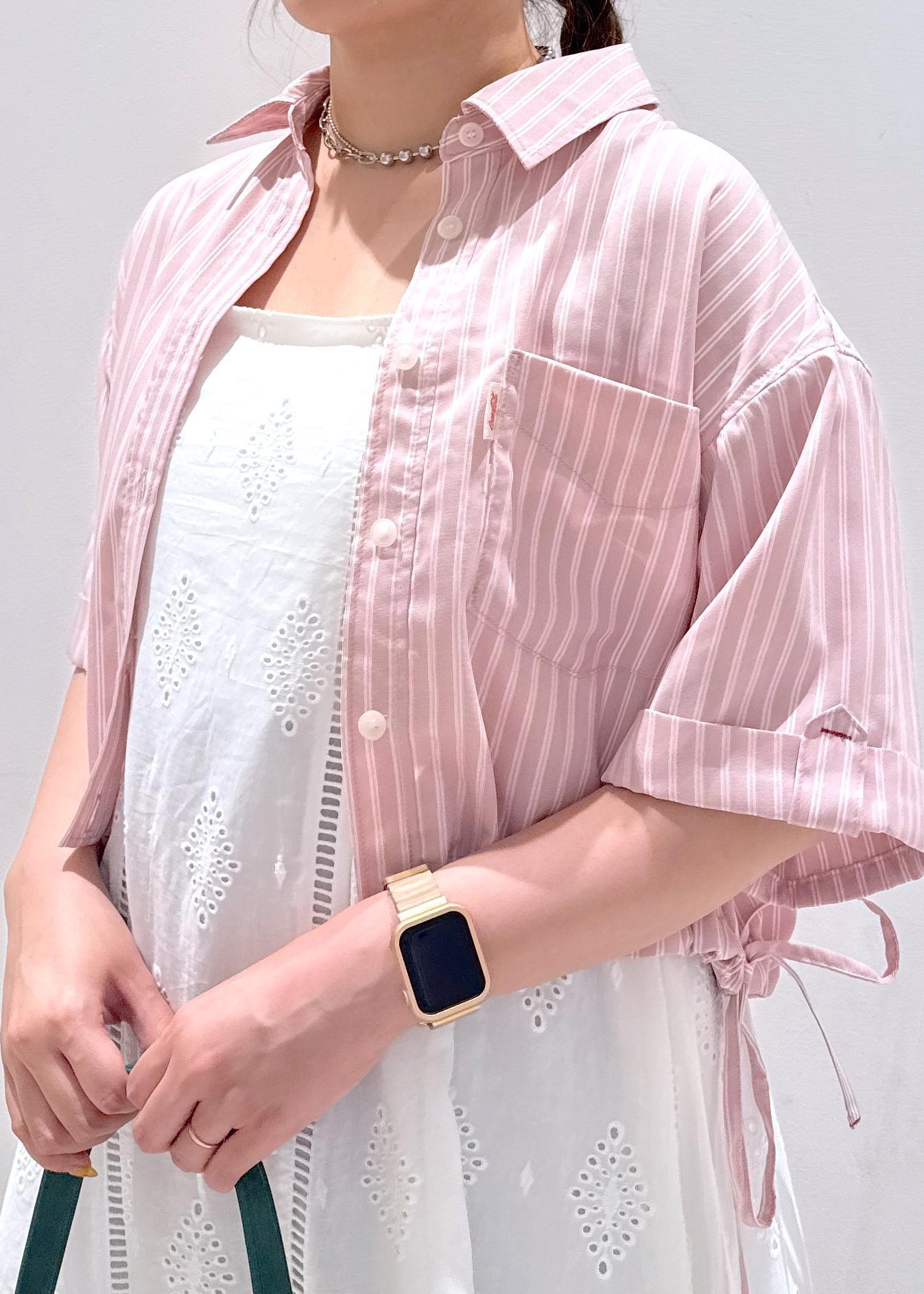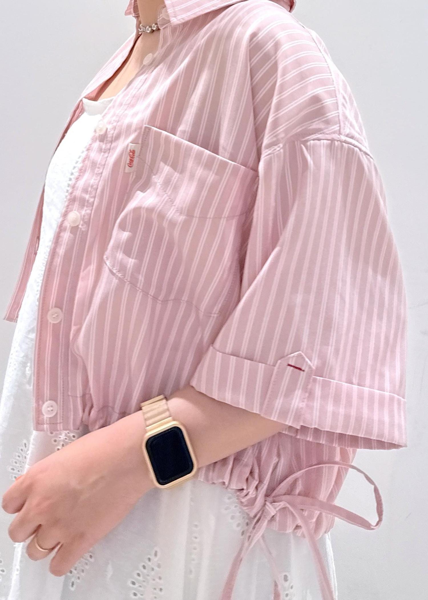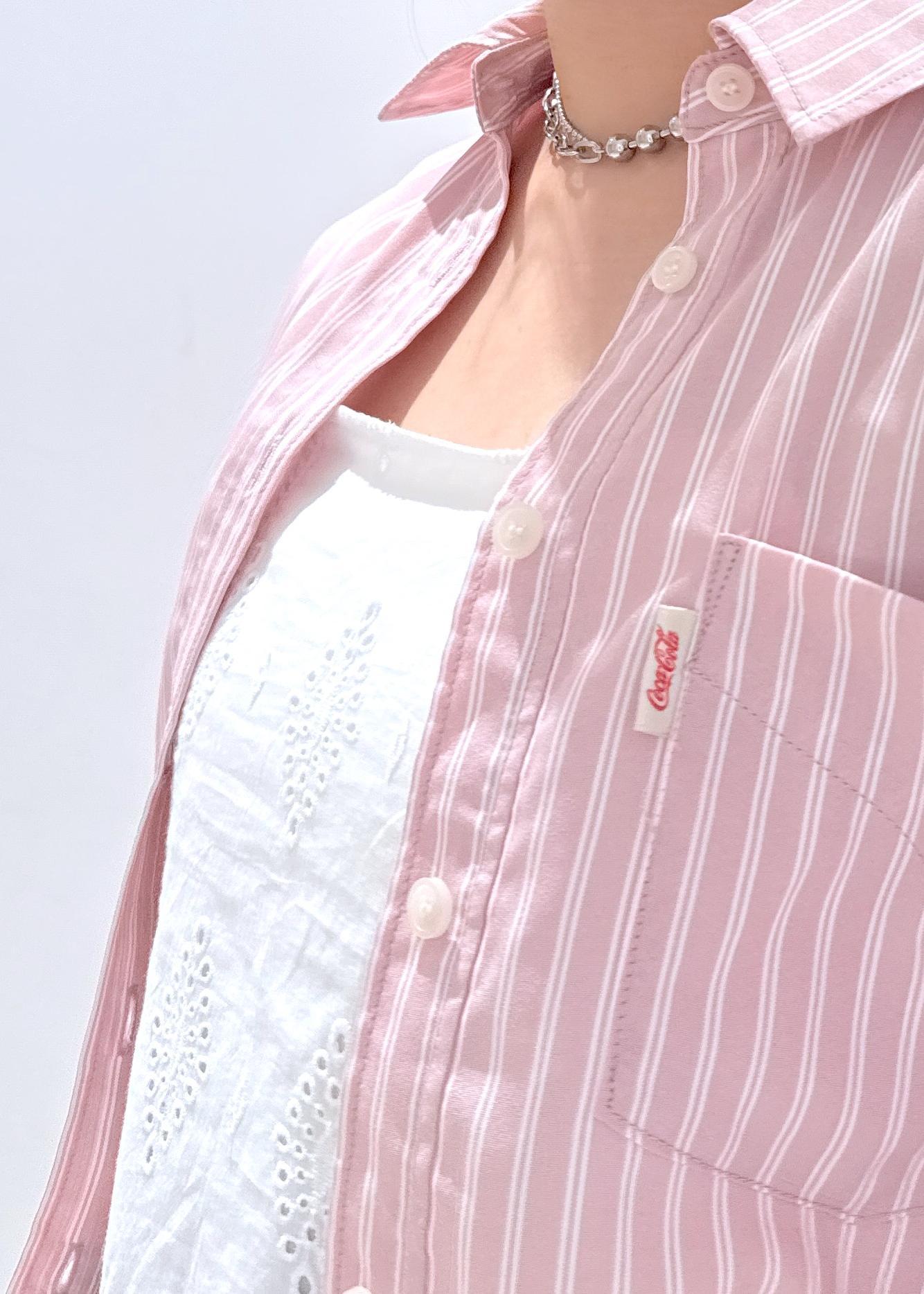 VIS【Coca-Cola】VIS別注バックエンブロイダリークロップドシャツピンク系 / F¥5,390レビューVIS×コカコーラとのコラボシャツ⭐︎ブルー系のカラーの素材は薄いデニム素材なので、軽くて羽織りやすかったです。ピンク系のカラーはサラッとしているので、シワにもなりにくく、ストライプ柄なので前のボタンを閉じて着ても縦に強調してスッキリとした印象でした。