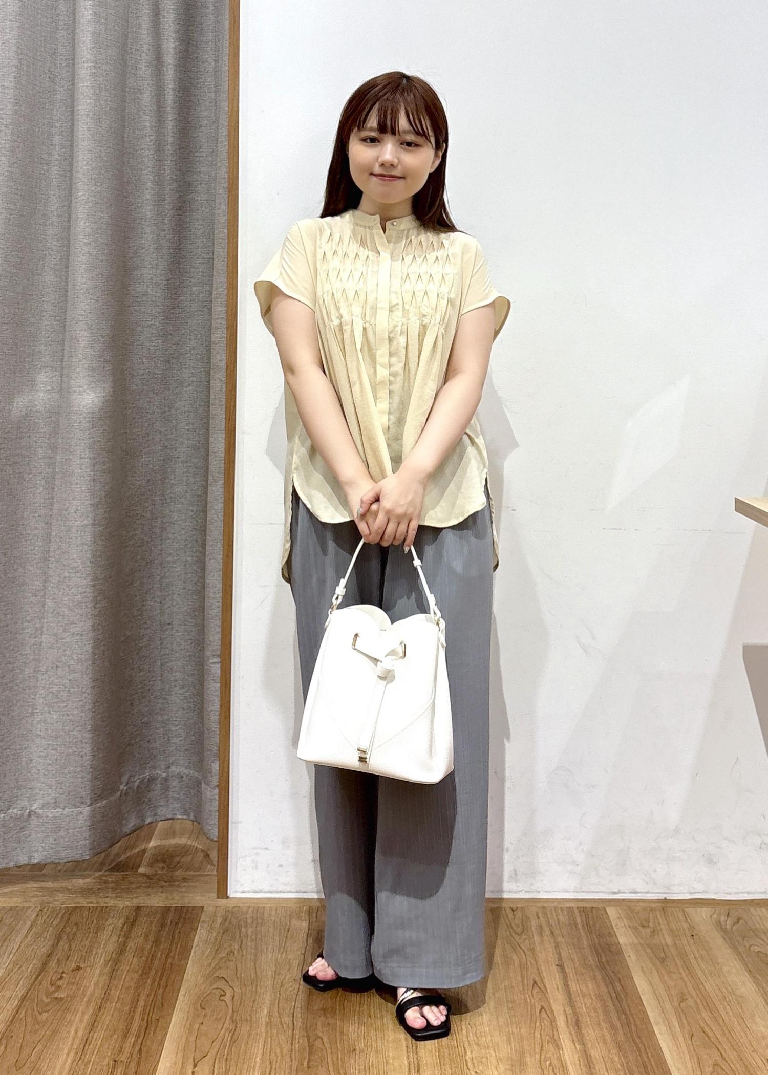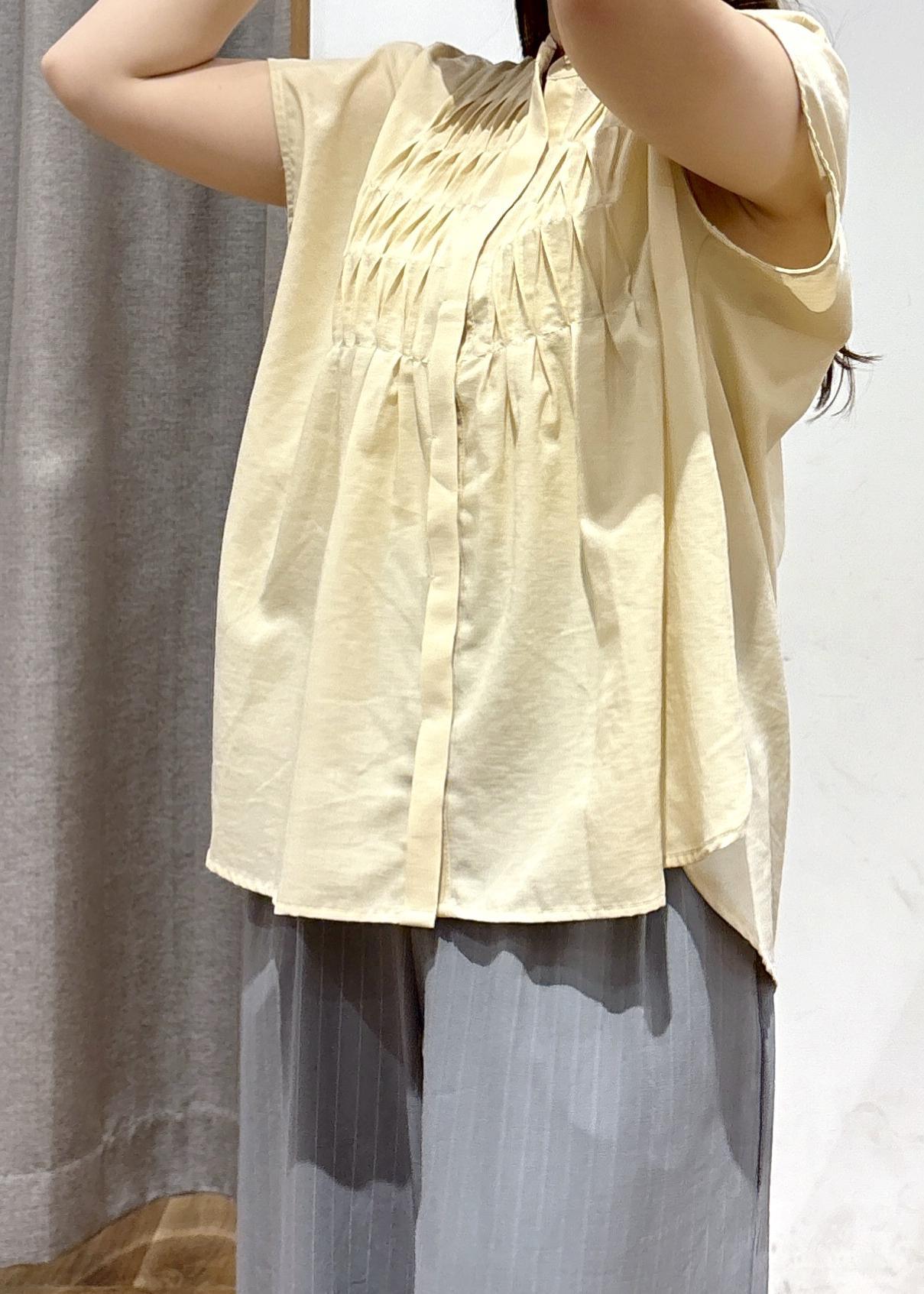 アウトレットVIS【接触冷感/洗える】気流染めスモッキングブラウスイエロー / F¥3,457レビュー【着用感】