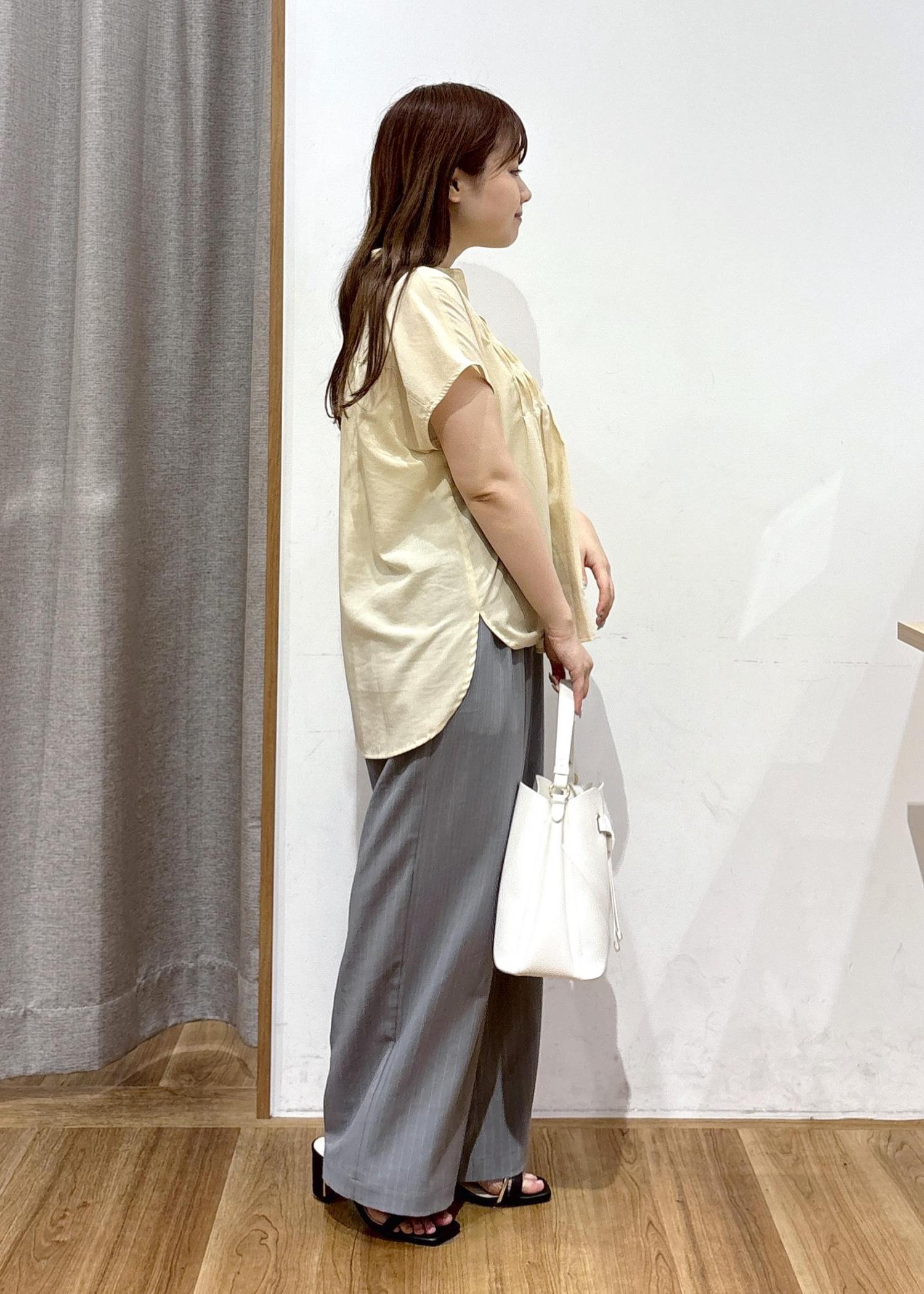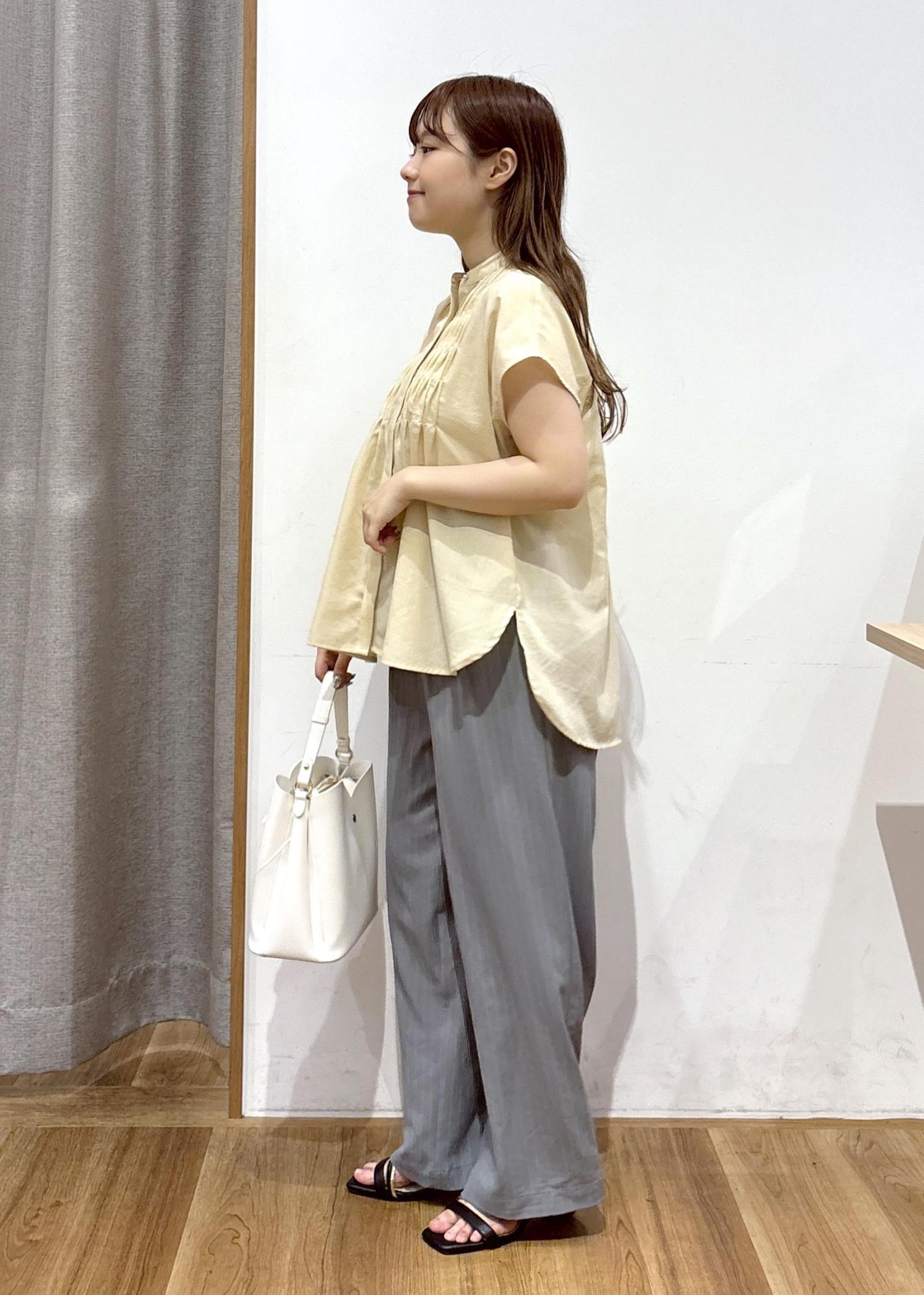 ゆったりと着れるのと、お腹周りをカバーしてくれるデザインが使いやすいコーディネートです。