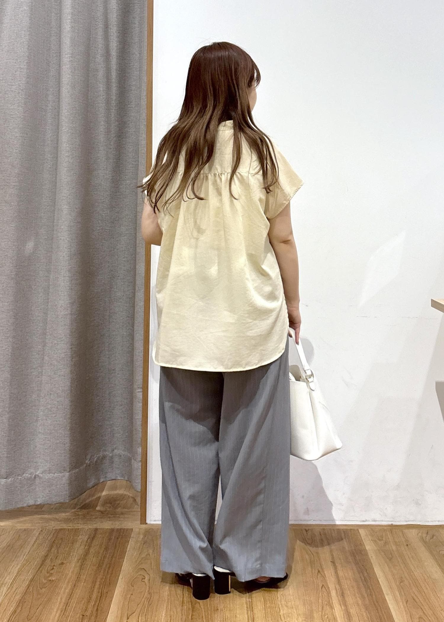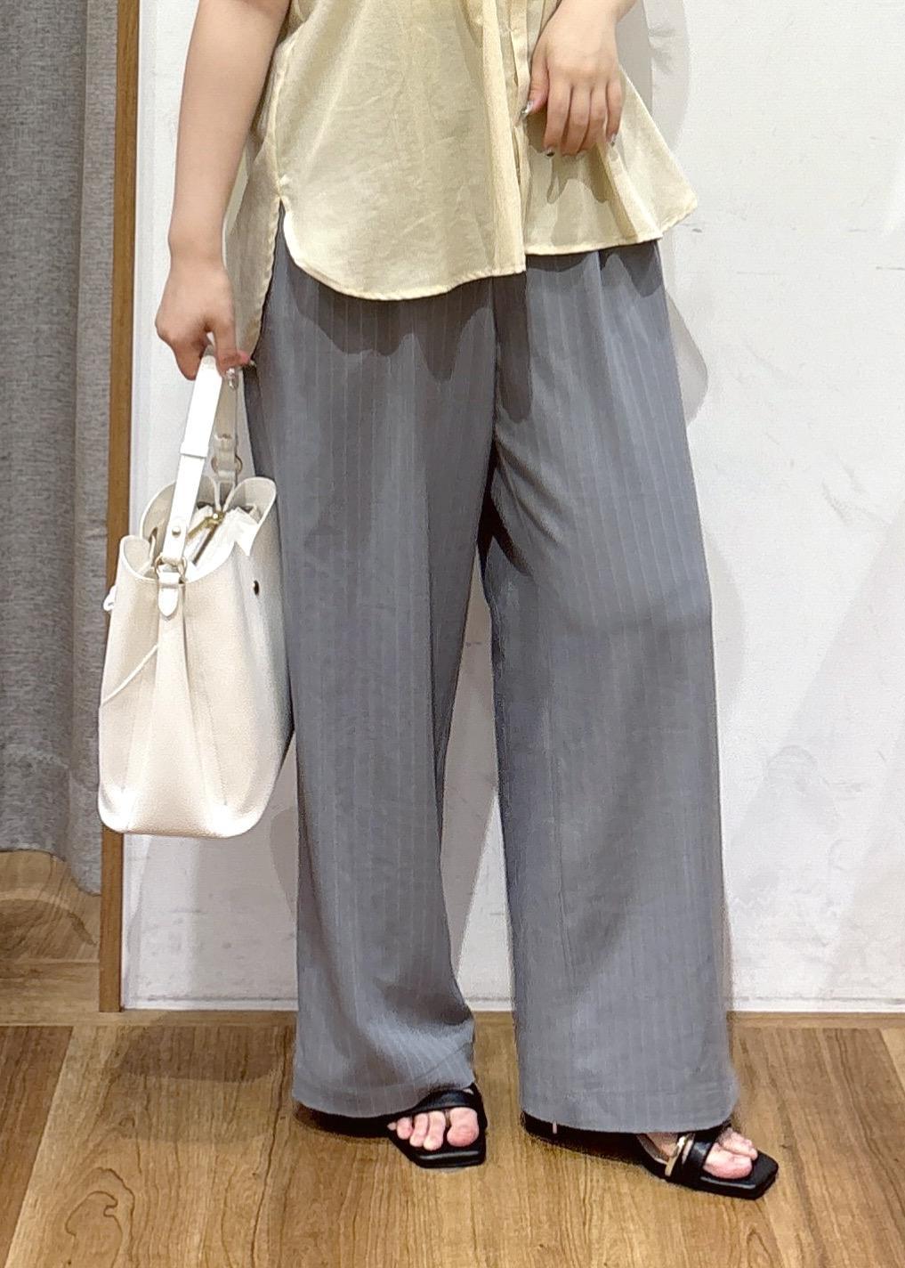 アウトレットVIS【接触冷感/UVケア】ピンストライプリラックスワイドパンツグレー / S¥2,636レビュー【着用感】