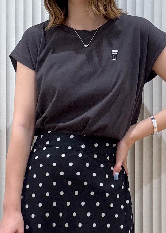 VIS【Coca-Cola】VIS別注ロゴプリントフレンチTシャツチャコール / F¥3,850レビュー153センチ着用で肩が隠れる袖丈、着丈はヒップにかかるくらいの長さでした。