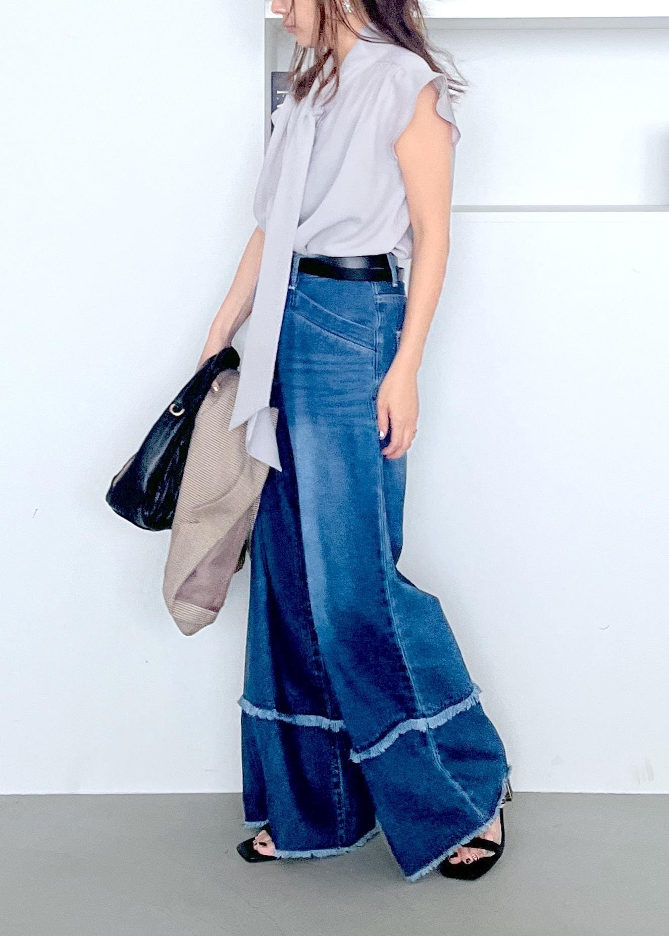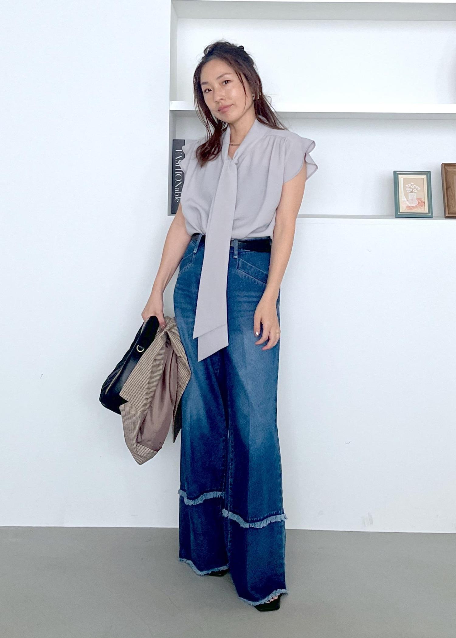 “キレイめブラウスも、デニム合わせで一気にこなれる”