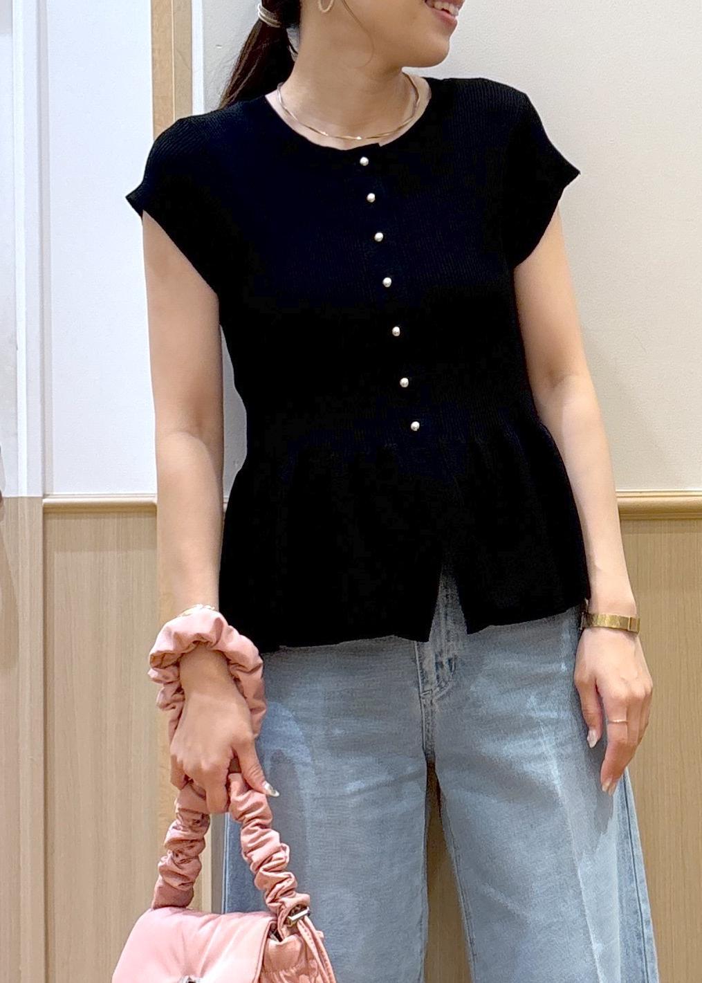VIS【アンチピリング/洗える】美SMARTショートスリーブペプラムニットブラック / F¥5,489レビュー人気のペプラムカーディガンの